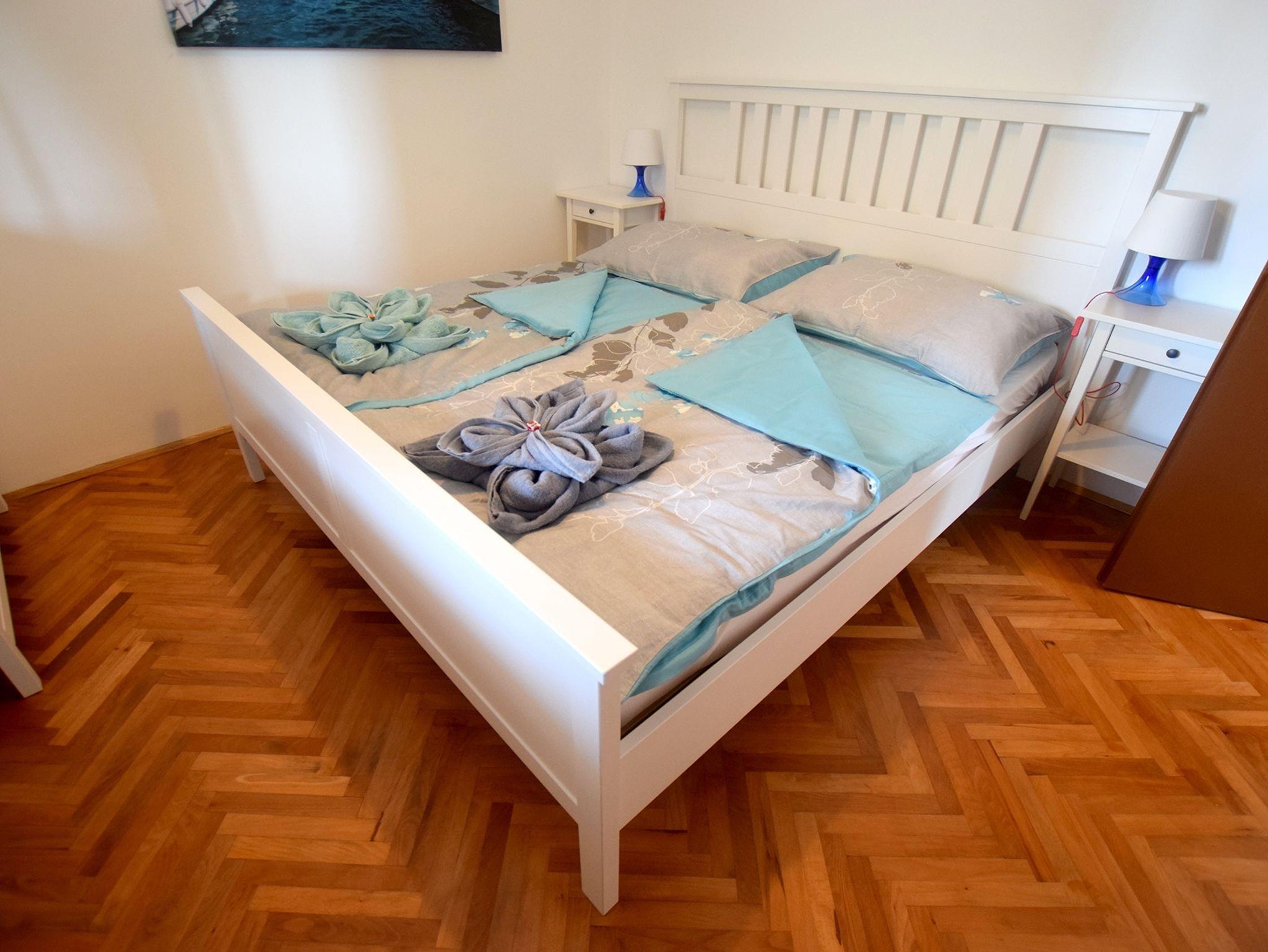 Haus bietet Platz für 7 Gäste. Die Betten sind in Schlafzimmern, die es 3 gibt, innerhalb einer Gesamtfläche von 82m2, angeordnet. Die Gäste haben eine eigene Terrasse zur Verfügung, auf der sie in warmen Sommernächten genießen können. Für vollen Genuss und Entspannung gibt es einen privaten Grill für Gäste dieser Unterkunft. IM PREIS INBEGRIFFEN: Kurtaxe, Endreinigung, Klimatisierung, Parkplatz, Internet, Kinderbett, Bügeleisen, Föhn. VERBINDLICHE ZUSÄTZLICHE KOSTEN: Aufzahlung für Kurzaufenthalte (prozentualer Zuschlag pro Nächtigungsanzahl: 30% - 1, 20% - 2, 10% - 3). UNVERBINDLICHE ZUSÄTZLICHE KOSTEN: Wäschewaschen (5,00 € Waschen). Die Verfügbarkeit zusätzlicher Dienstleistungen in Ihrem reservierten Termin und die Preise derselben (falls nicht aufgeführt) müssen im Voraus überprüft werden. Zusätzliche Dienstleistungen die in der Zahlungsaufforderung nicht aufgeführt sind werden direkt beim Vermieter bezahlt, angenommen der Gast nutzt auch diese. Ermäßigung auf den Grundpreis: Gratistag 14=13 (bei einem Aufenthalt von 14 Tagen oder mehr erhalten Sie einen Gratistag für den Aufenthalt bis 31.12.26).