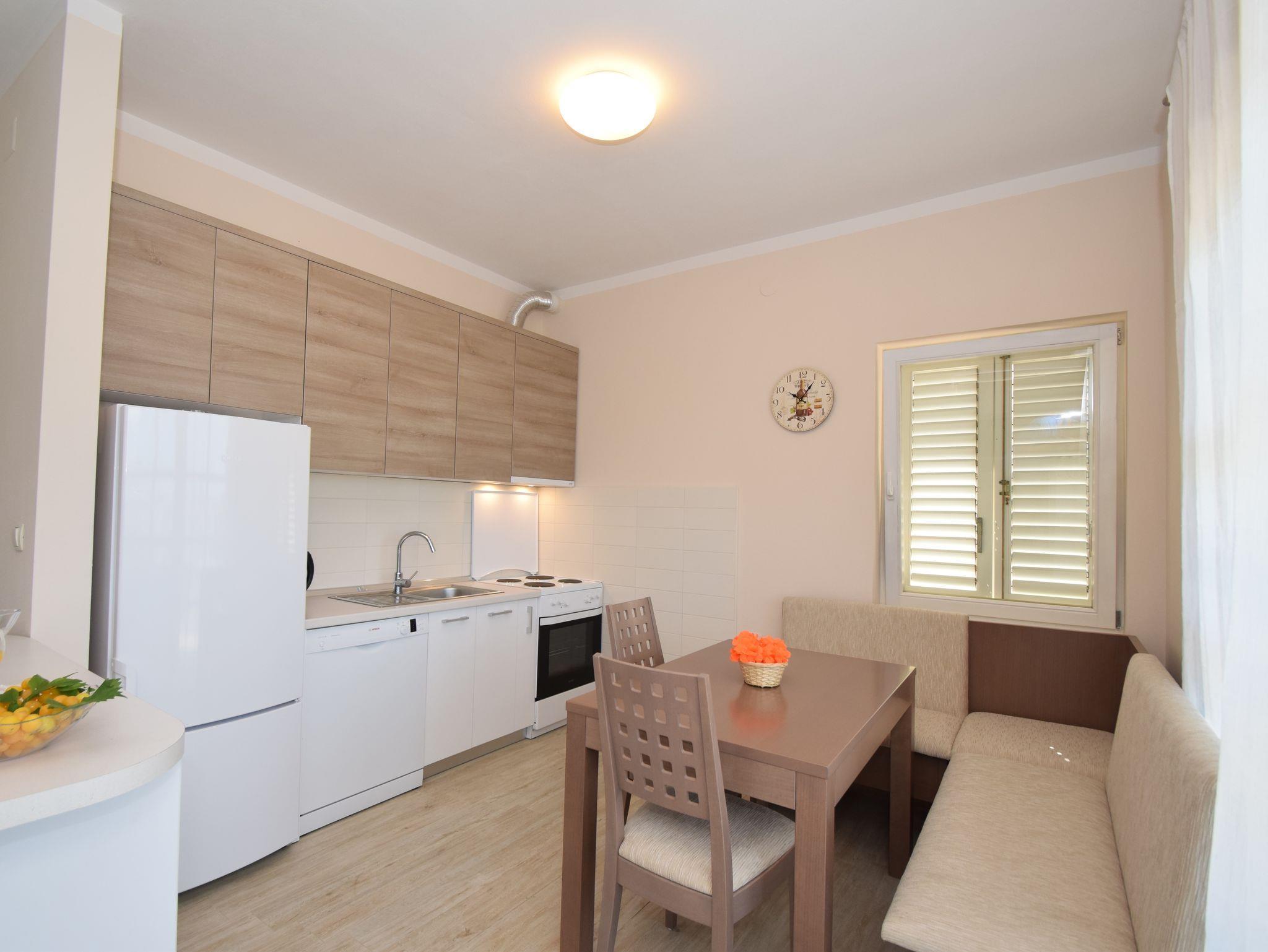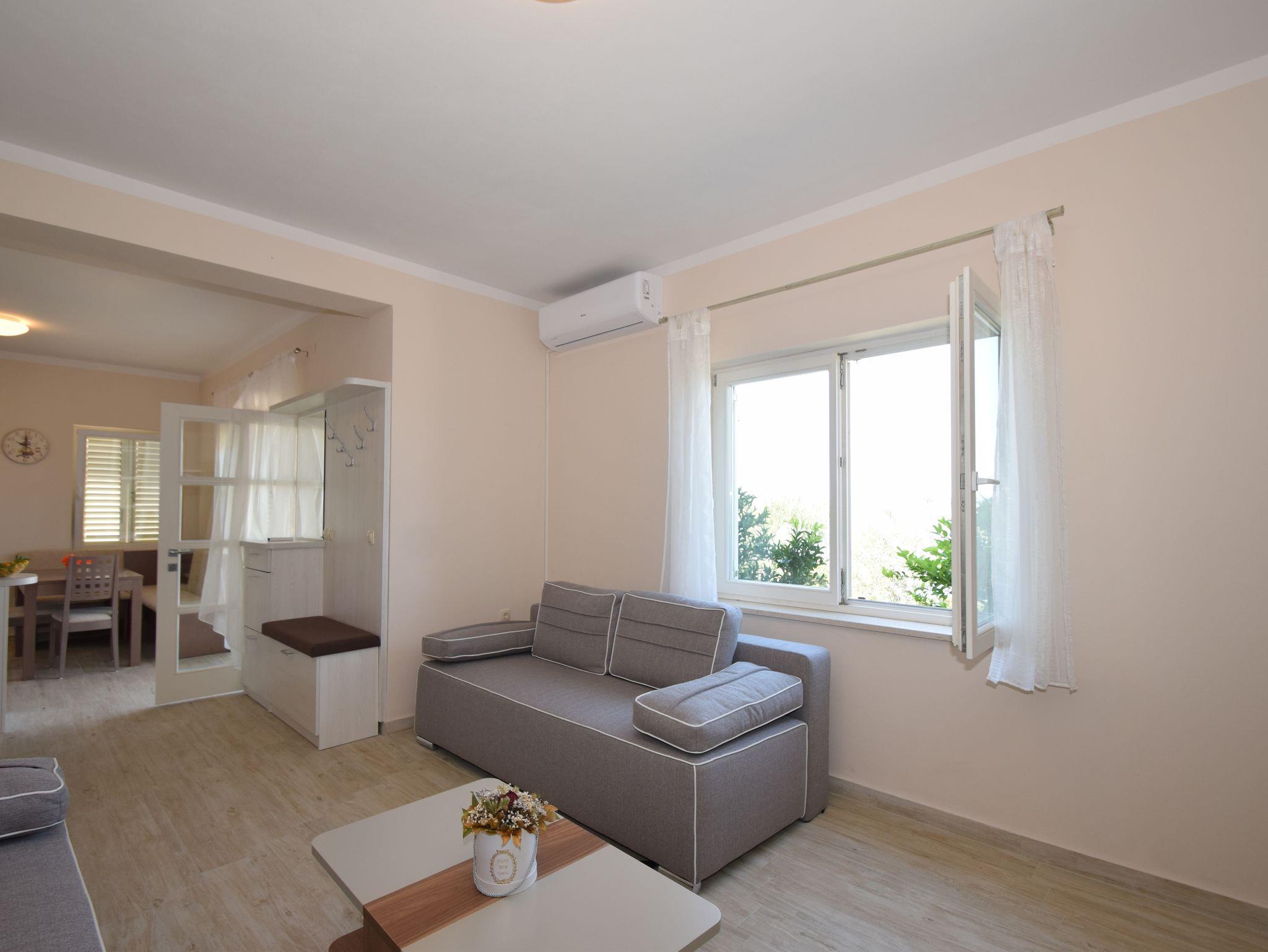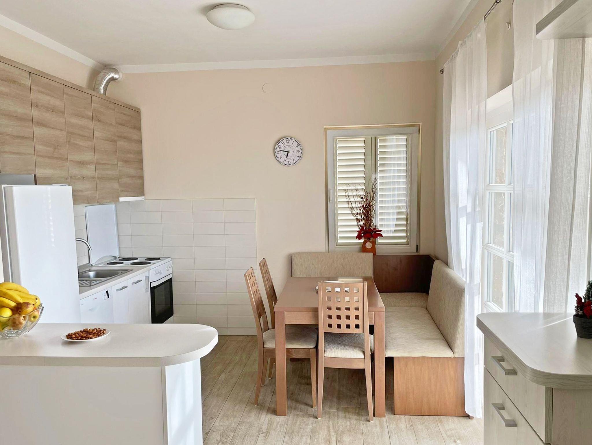Ferienwohnung bietet Platz für 6 Gäste. Die Betten sind in Schlafzimmern, die es 2 gibt, und in Wohnzimmer, innerhalb einer Gesamtfläche von 51m2, angeordnet. Die Gäste haben eine eigene Terrasse zur Verfügung, auf der sie in warmen Sommernächten genießen können. Das Apartment bietet Meerblick. Für vollen Genuss und Entspannung gibt es einen privaten Grill für Gäste dieser Unterkunft. In der Unterkunftseinheit besteht die Möglichkeit des Mitbringens von Haustieren gegen Aufpreis. IM PREIS INBEGRIFFEN: Kurtaxe, Endreinigung, Klimatisierung, Parkplatz, Internet, Zusatzbett, Bügeleisen, Föhn, Sonnenschirm. UNVERBINDLICHE ZUSÄTZLICHE KOSTEN: Haustiere (15,00 € pro Nacht). Die Verfügbarkeit zusätzlicher Dienstleistungen in Ihrem reservierten Termin und die Preise derselben (falls nicht aufgeführt) müssen im Voraus überprüft werden. Zusätzliche Dienstleistungen die in der Zahlungsaufforderung nicht aufgeführt sind werden direkt beim Vermieter bezahlt, angenommen der Gast nutzt auch diese. Ermäßigung auf den Grundpreis: Gratistag 14=13 (bei einem Aufenthalt von 14 Tagen oder mehr erhalten Sie einen Gratistag für den Aufenthalt bis 31.12.26).