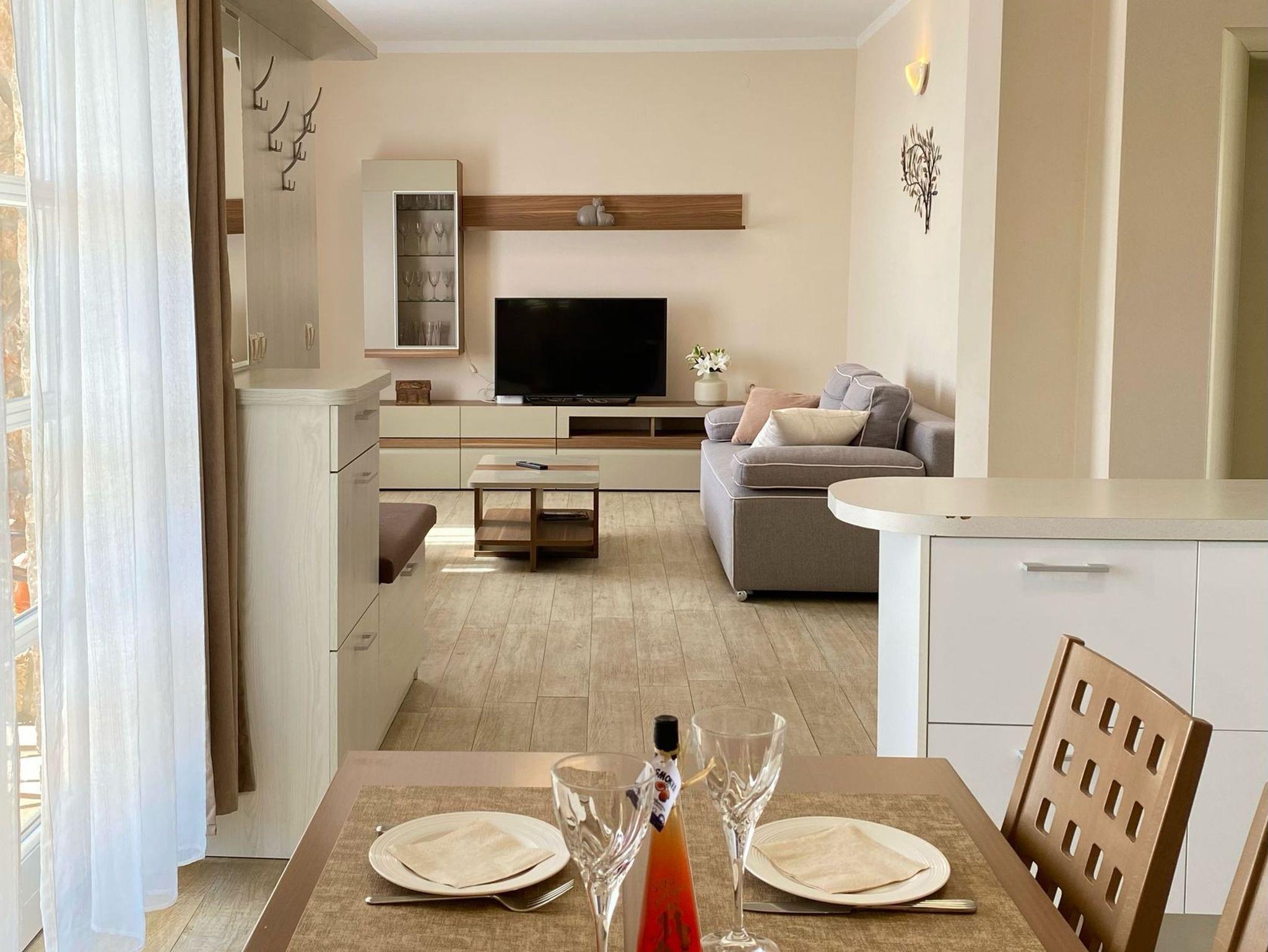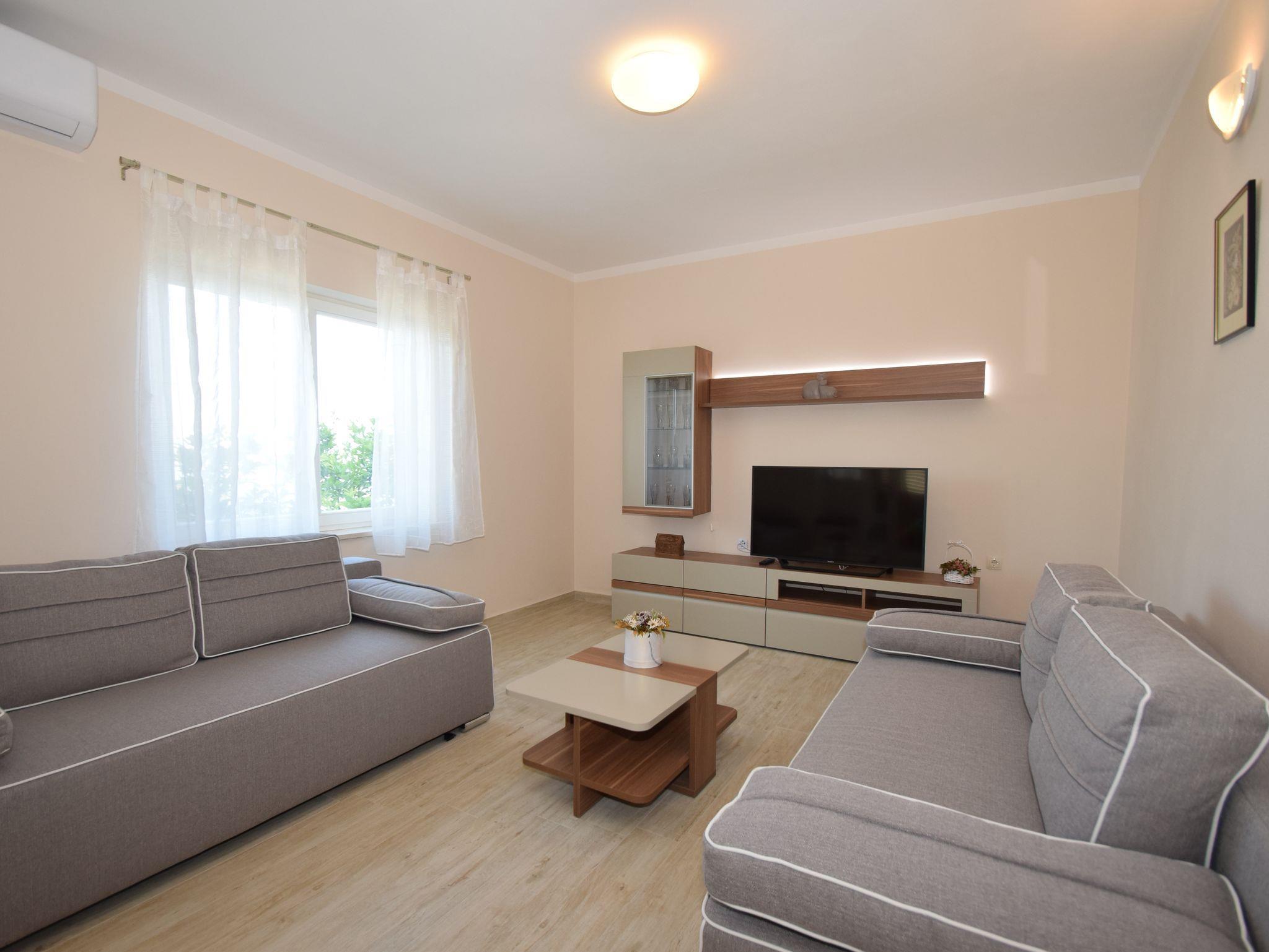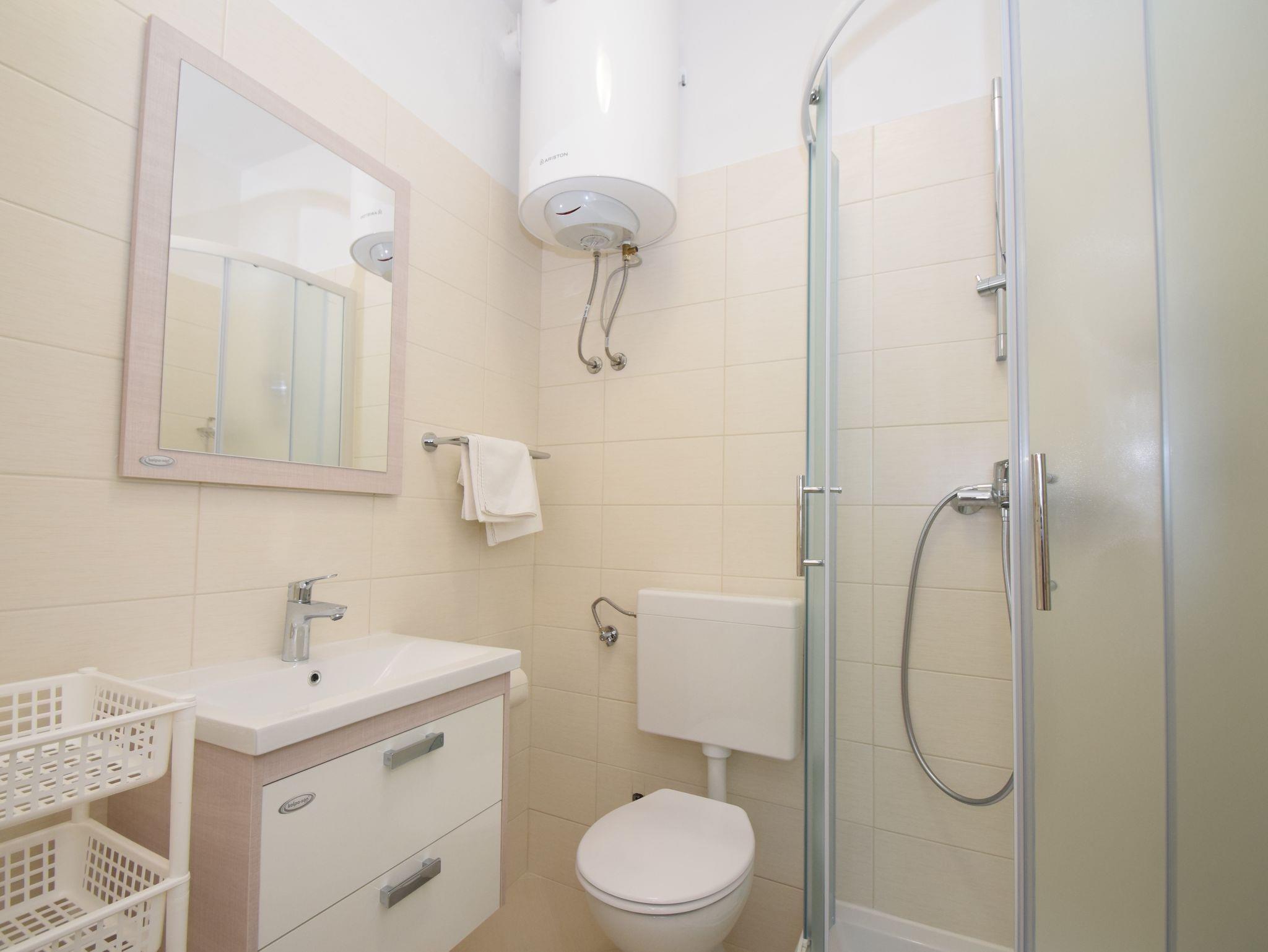 Ferienwohnung bietet Platz für 6 Gäste. Die Betten sind in Schlafzimmern, die es 2 gibt, und in Wohnzimmer, innerhalb einer Gesamtfläche von 51m2, angeordnet. Die Gäste haben eine eigene Terrasse zur Verfügung, auf der sie in warmen Sommernächten genießen können. Das Apartment bietet Meerblick. Für vollen Genuss und Entspannung gibt es einen privaten Grill für Gäste dieser Unterkunft. In der Unterkunftseinheit besteht die Möglichkeit des Mitbringens von Haustieren gegen Aufpreis. IM PREIS INBEGRIFFEN: Kurtaxe, Endreinigung, Klimatisierung, Parkplatz, Internet, Zusatzbett, Bügeleisen, Föhn, Sonnenschirm. UNVERBINDLICHE ZUSÄTZLICHE KOSTEN: Haustiere (15,00 € pro Nacht). Die Verfügbarkeit zusätzlicher Dienstleistungen in Ihrem reservierten Termin und die Preise derselben (falls nicht aufgeführt) müssen im Voraus überprüft werden. Zusätzliche Dienstleistungen die in der Zahlungsaufforderung nicht aufgeführt sind werden direkt beim Vermieter bezahlt, angenommen der Gast nutzt auch diese. Ermäßigung auf den Grundpreis: Gratistag 14=13 (bei einem Aufenthalt von 14 Tagen oder mehr erhalten Sie einen Gratistag für den Aufenthalt bis 31.12.26).