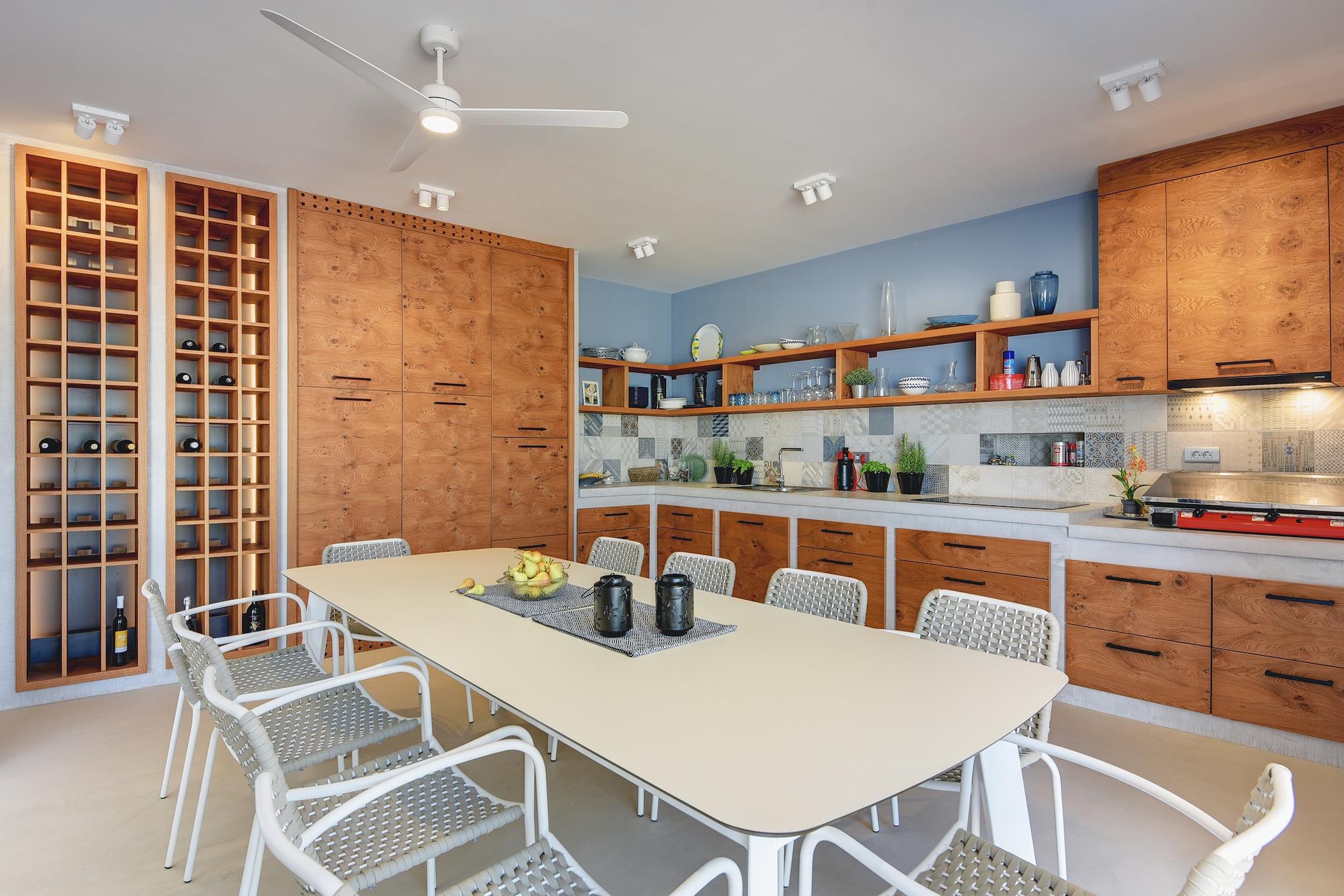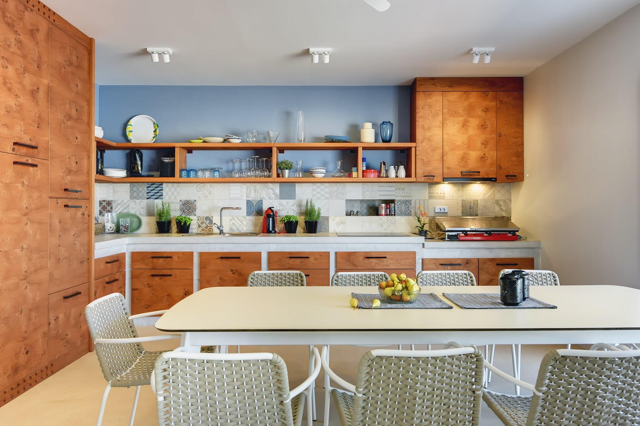 Stueetage: (Stue(Fjernsyn, sofahjørne), spisestue(spisebord), Køkken(elkedel, brødrister, komfur(Komfur med fire kogeplader, elektrisk), kaffemaskine, ovn, mikrobølgeovn, opvaskemaskine , køle-fryseskab), soveværelse(enkeltseng, dobbeltseng(180 x 200 cm), klimaanlæg), badeværelse(bruser, håndvask, toilet), badeværelse(bruser, håndvask, toilet)) Mellemetage: (soveværelse(dobbeltseng(160 x 200 cm)), badeværelse(bruser, toilet)) På 1. etage: (soveværelse(dobbeltseng(160 x 200 cm), klimaanlæg), soveværelse(dobbeltseng(160 x 200 cm), Fjernsyn(parabol), balkon, klimaanlæg), soveværelse(enkeltseng(90 x 200 cm), klimaanlæg)) Køkken, badeværelse(bruser, toilet), vaskemaskine, terrasse(privat, overdækket, 20 m2), have(privat), havemøbler, grill, parkering, swimmingpool(privat, 7 x 4 m.), bordtennisbord