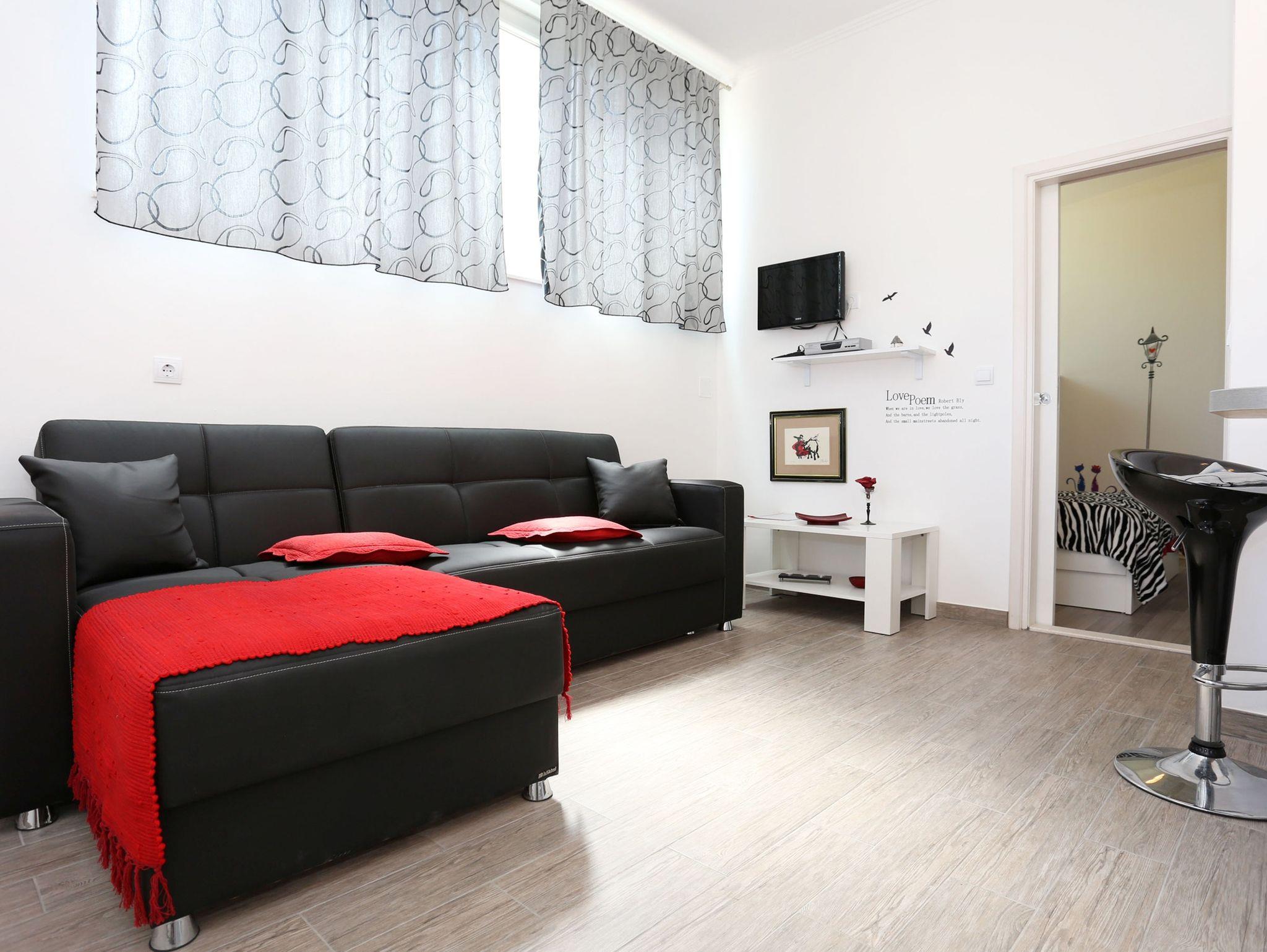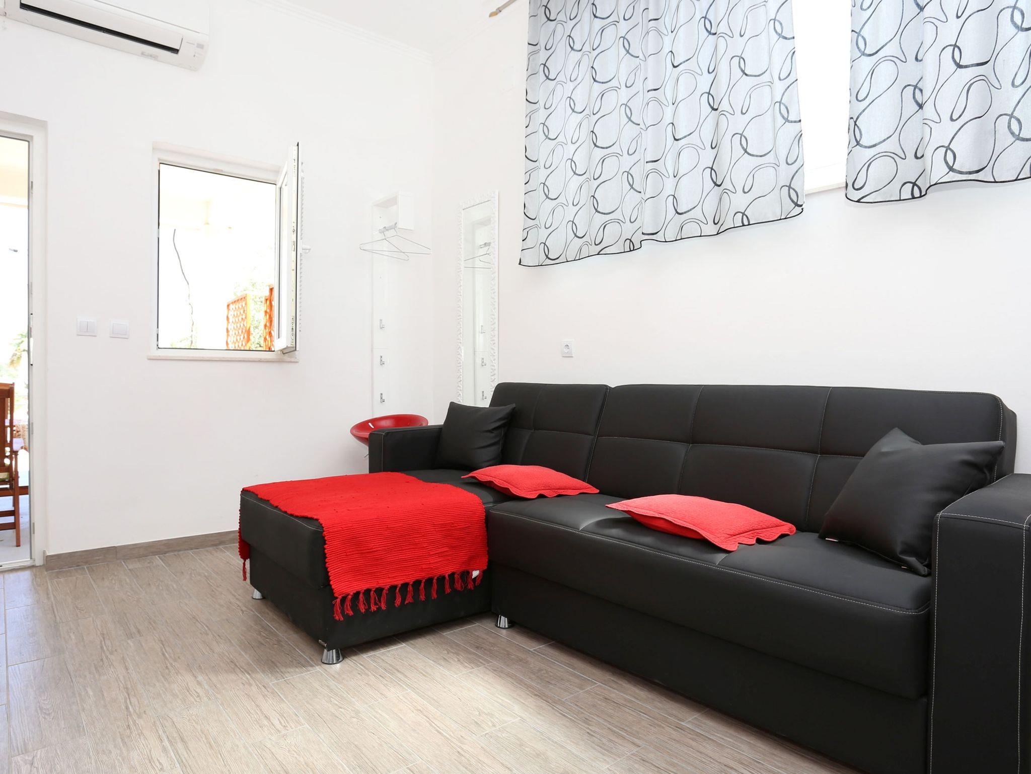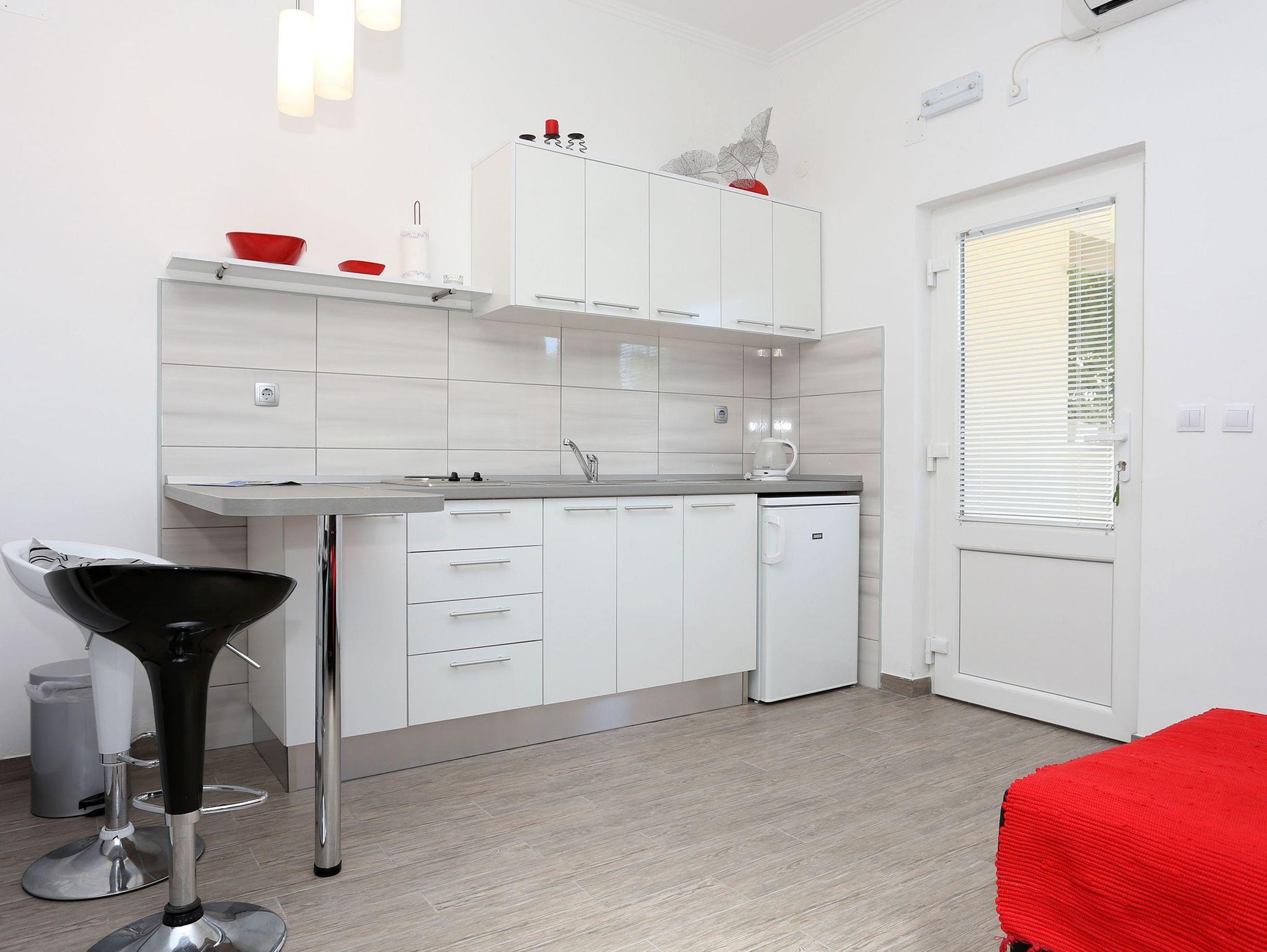 Ferienwohnung bietet Platz für 2 Gäste. Die Betten sind in Schlafzimmern, die es 1 gibt, innerhalb einer Gesamtfläche von 27m2, angeordnet. Die Gäste haben eine eigene Terrasse zur Verfügung, auf der sie in warmen Sommernächten genießen können. Das Apartment bietet Meerblick. Es ist erlaubt, Speisen auf dem Gemeinschafts-Grill vorzubereiten. In der Unterkunftseinheit besteht die Möglichkeit des Mitbringens von Haustieren gegen Aufpreis. IM PREIS INBEGRIFFEN: Kurtaxe, Endreinigung, Klimatisierung, Parkplatz, Internet, Bügeleisen, Bügelbrett, Föhn. VERBINDLICHE ZUSÄTZLICHE KOSTEN: Aufzahlung für Kurzaufenthalte (prozentualer Zuschlag pro Nächtigungsanzahl: 30% - 1, 20% - 2, 10% - 3). UNVERBINDLICHE ZUSÄTZLICHE KOSTEN: Haustiere (15,00 € pro Nacht). Die Verfügbarkeit zusätzlicher Dienstleistungen in Ihrem reservierten Termin und die Preise derselben (falls nicht aufgeführt) müssen im Voraus überprüft werden. Zusätzliche Dienstleistungen die in der Zahlungsaufforderung nicht aufgeführt sind werden direkt beim Vermieter bezahlt, angenommen der Gast nutzt auch diese. Ermäßigung auf den Grundpreis: Gratistag 28=25 (bei einem Aufenthalt von 28 oder mehr Tagen erhalten Sie 3 kostenlose Tage für den Aufenthalt bis 31.12.26).