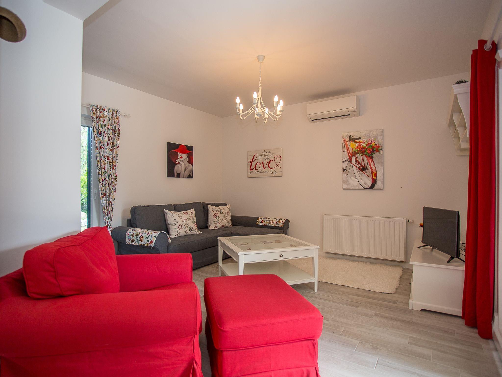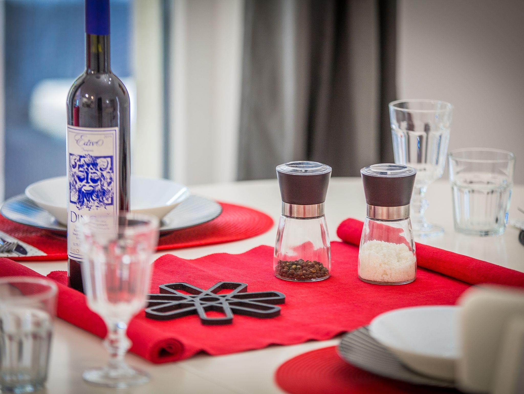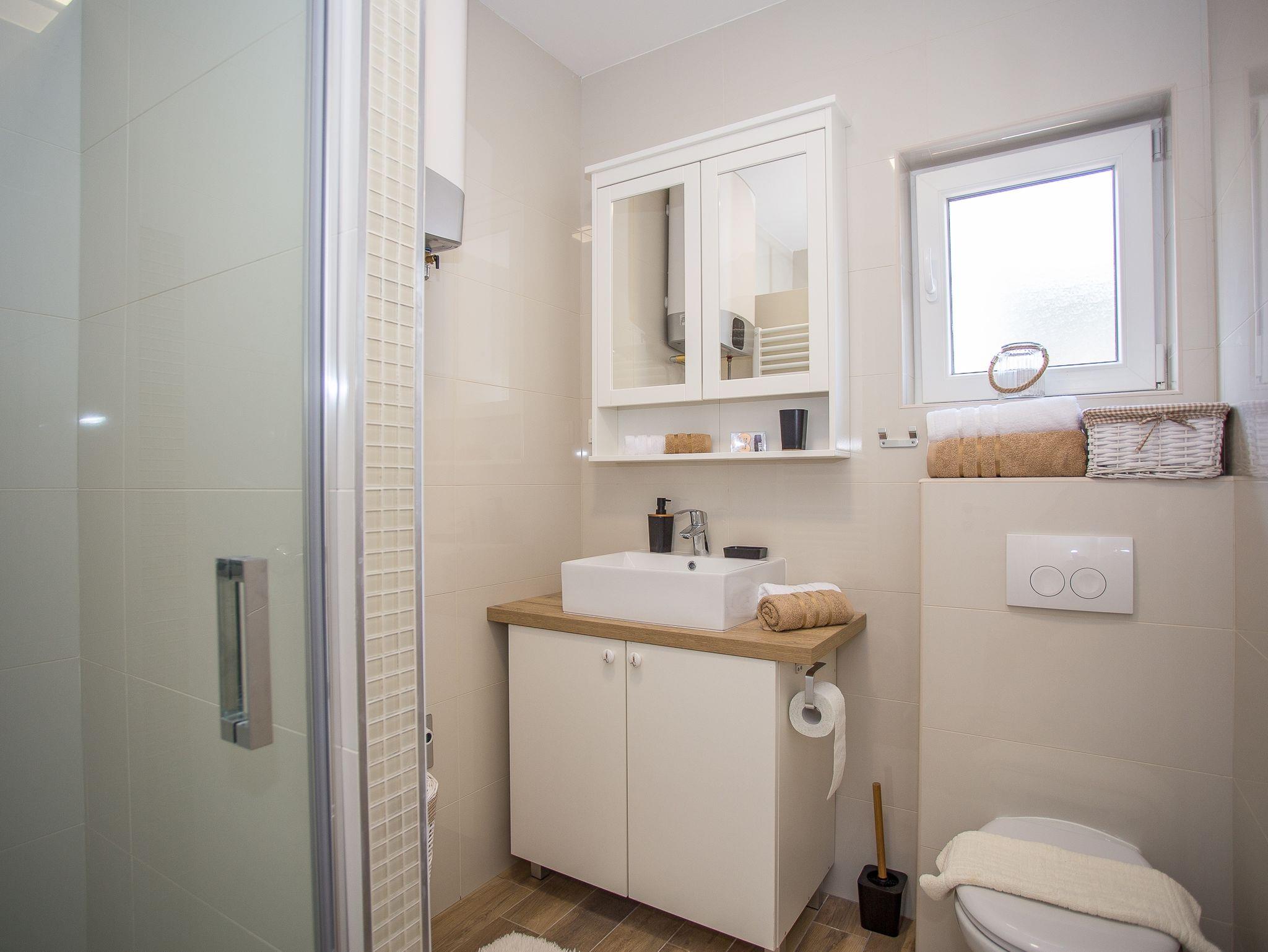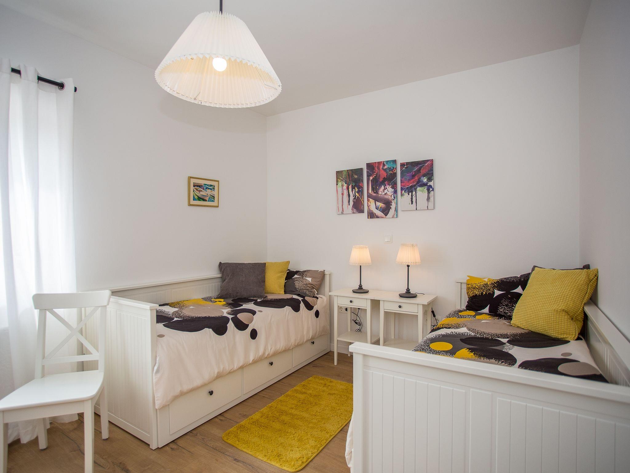 Haus bietet Platz für 4 Gäste. Die Betten sind in Schlafzimmern, die es 2 gibt, innerhalb einer Gesamtfläche von 73m2, angeordnet. Die Gäste haben eine eigene Terrasse zur Verfügung, auf der sie in warmen Sommernächten genießen können. Für vollen Genuss und Entspannung gibt es einen privaten Grill für Gäste dieser Unterkunft. IM PREIS INBEGRIFFEN: Kurtaxe, Endreinigung, Klimatisierung, Zentralheizung, Parkplatz, Internet, Kinderbett, Bügeleisen, Bügelbrett, Föhn. VERBINDLICHE ZUSÄTZLICHE KOSTEN: Aufzahlung für Kurzaufenthalte (prozentualer Zuschlag pro Nächtigungsanzahl: 30% - 1, 20% - 2, 10% - 3). Die Verfügbarkeit zusätzlicher Dienstleistungen in Ihrem reservierten Termin und die Preise derselben (falls nicht aufgeführt) müssen im Voraus überprüft werden. Zusätzliche Dienstleistungen die in der Zahlungsaufforderung nicht aufgeführt sind werden direkt beim Vermieter bezahlt, angenommen der Gast nutzt auch diese. Ermäßigung auf den Grundpreis: Gratistag 21=19 (bei einem Aufenthalt von 21 Tagen oder mehr erhalten Sie 2 Gratistage für den Aufenthalt bis 31.12.26).