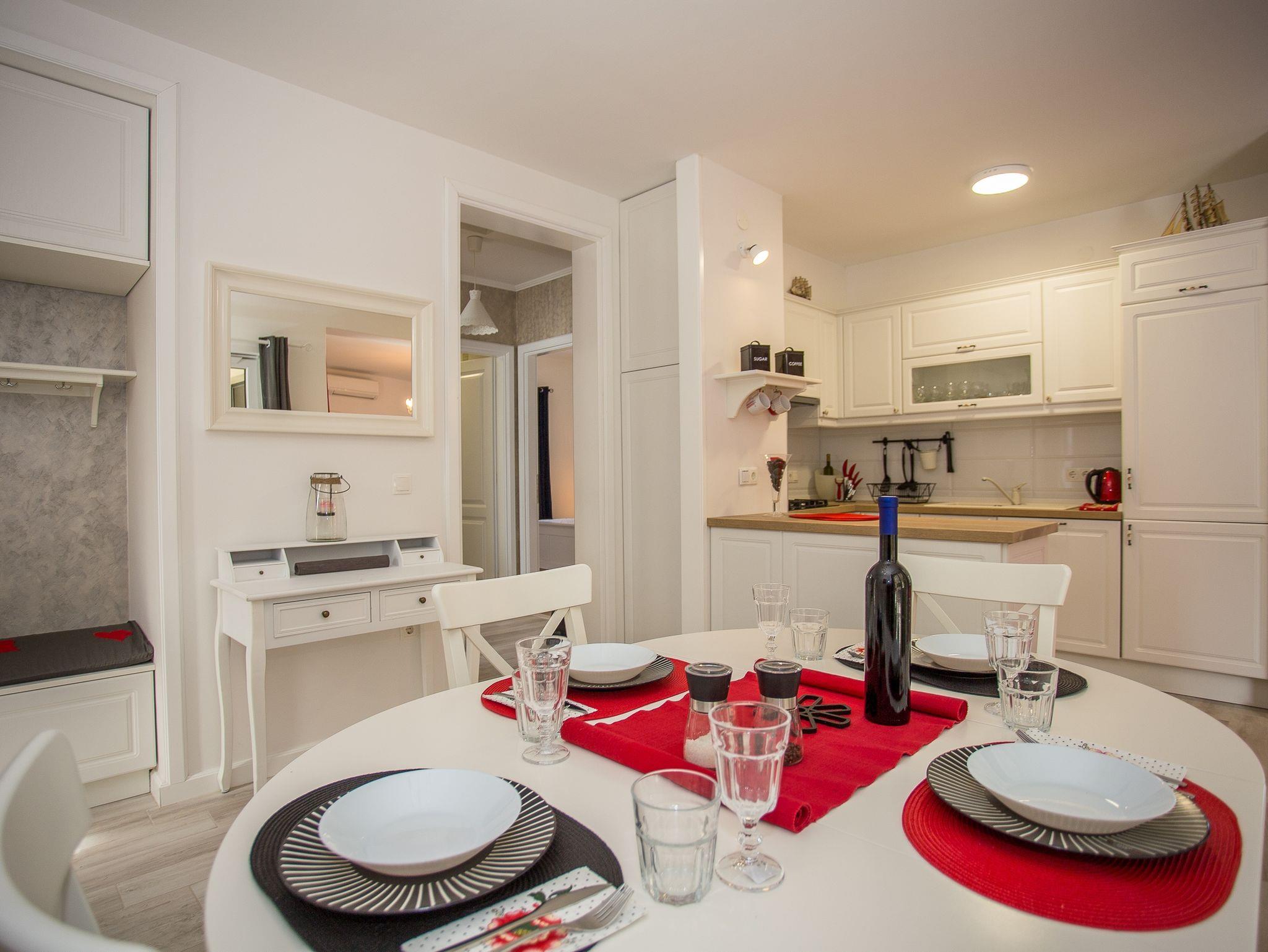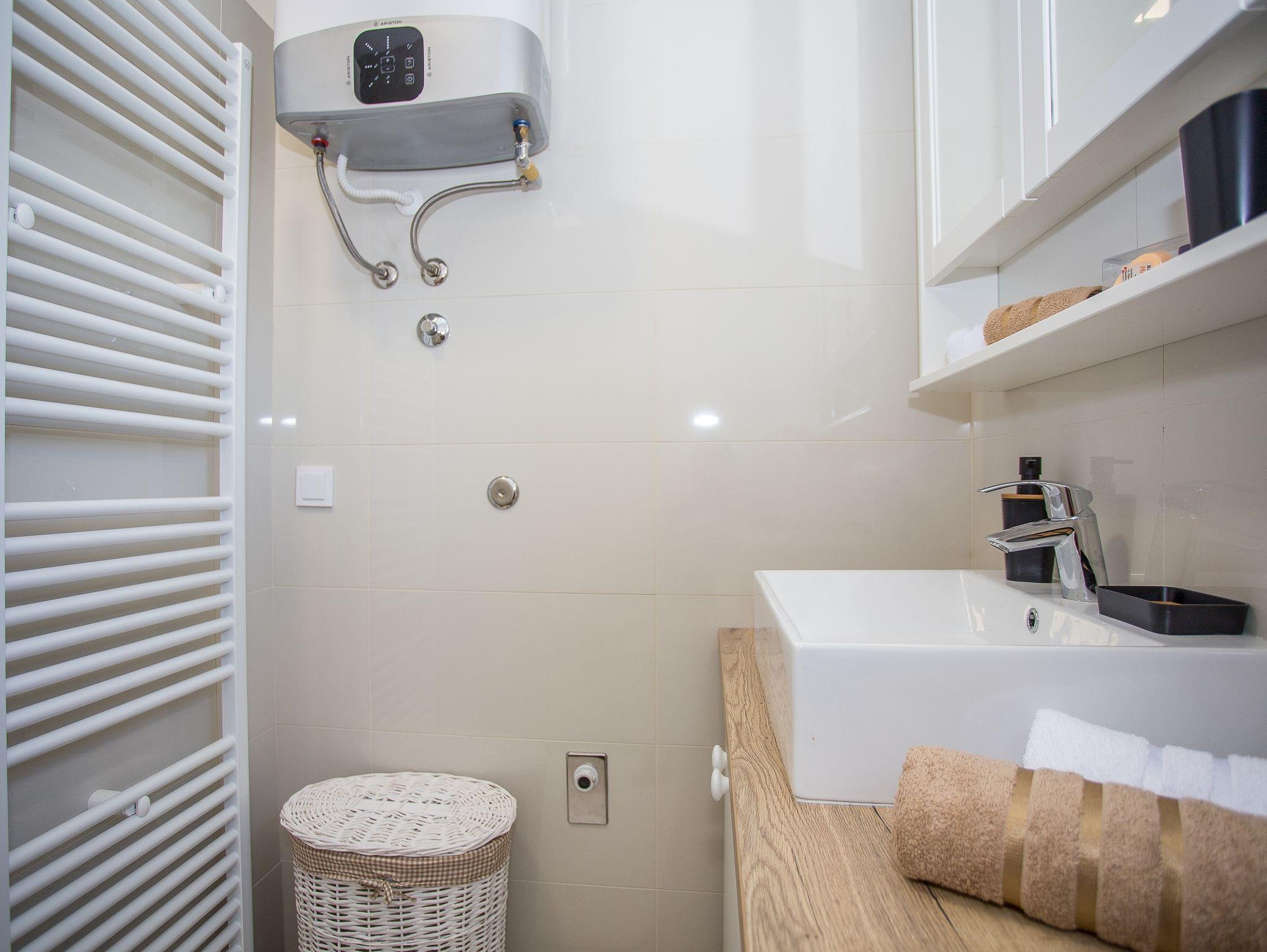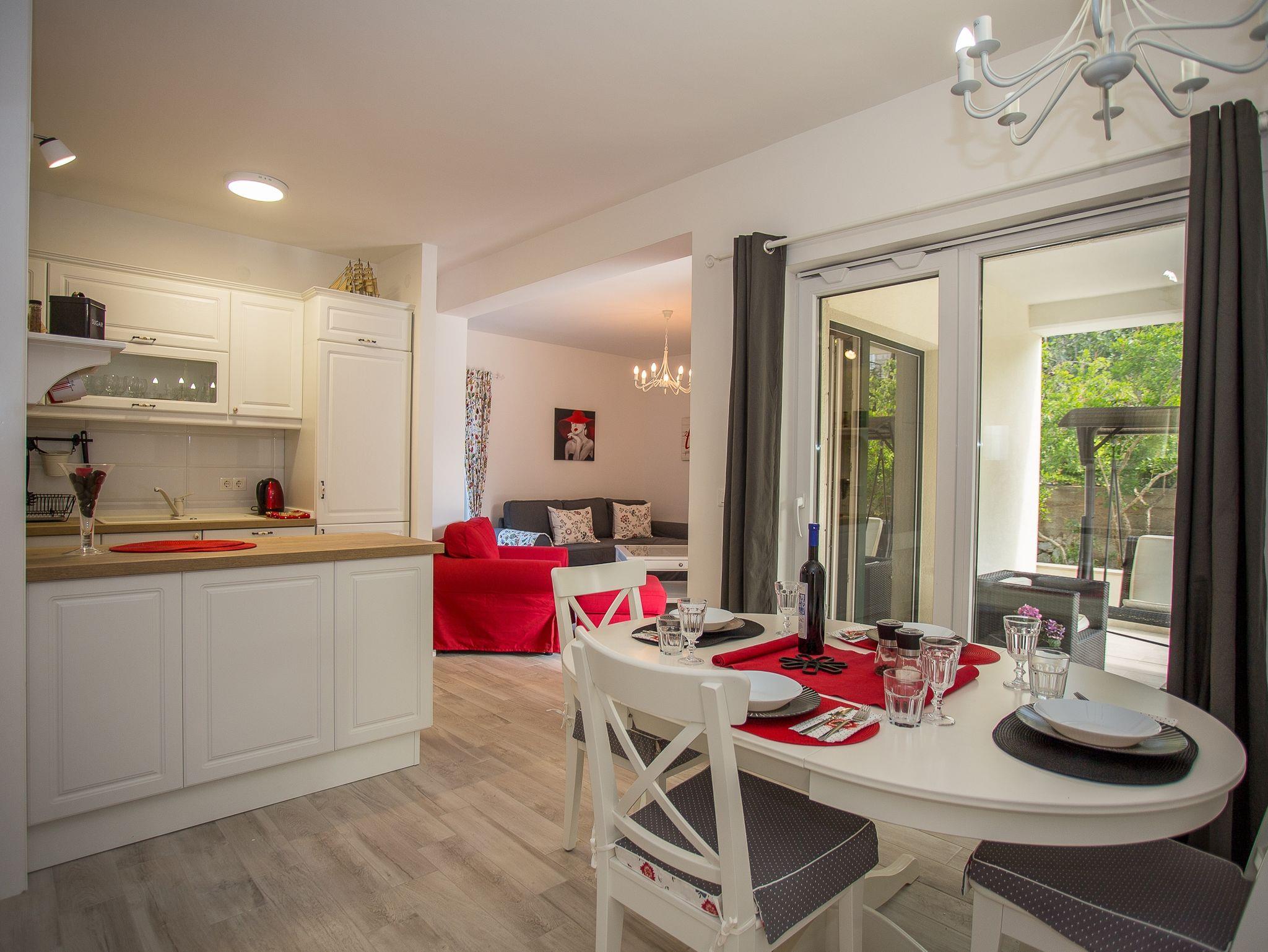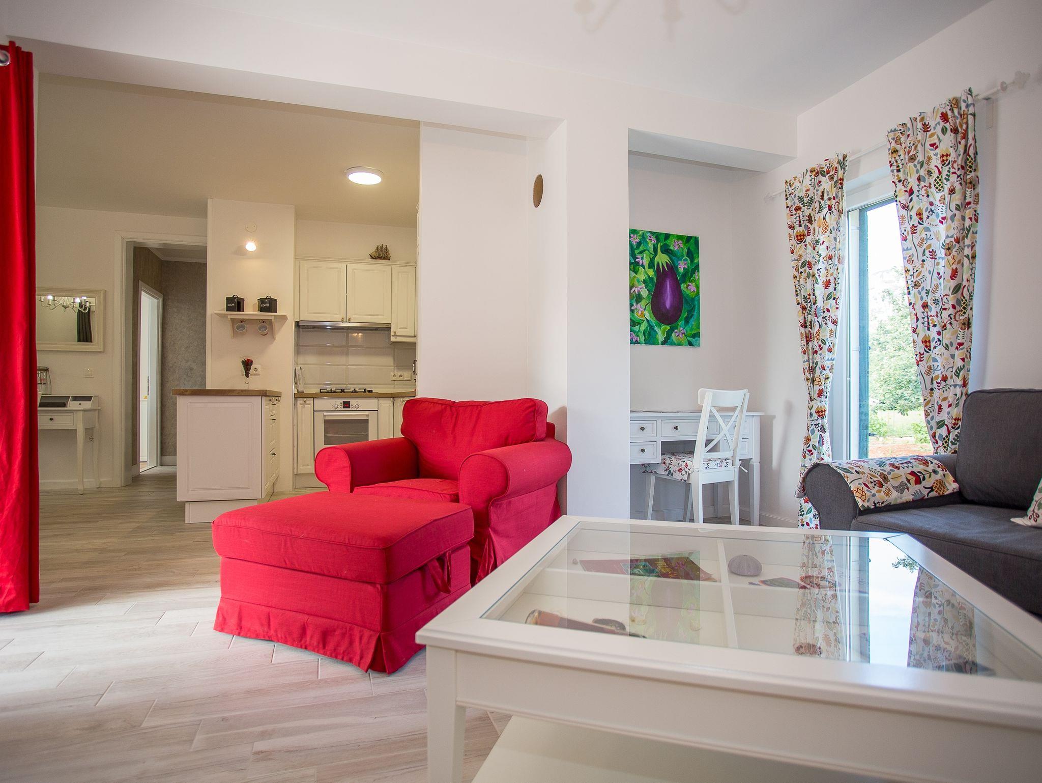 Haus bietet Platz für 4 Gäste. Die Betten sind in Schlafzimmern, die es 2 gibt, innerhalb einer Gesamtfläche von 73m2, angeordnet. Die Gäste haben eine eigene Terrasse zur Verfügung, auf der sie in warmen Sommernächten genießen können. Für vollen Genuss und Entspannung gibt es einen privaten Grill für Gäste dieser Unterkunft. IM PREIS INBEGRIFFEN: Kurtaxe, Endreinigung, Klimatisierung, Zentralheizung, Parkplatz, Internet, Kinderbett, Bügeleisen, Bügelbrett, Föhn. VERBINDLICHE ZUSÄTZLICHE KOSTEN: Aufzahlung für Kurzaufenthalte (prozentualer Zuschlag pro Nächtigungsanzahl: 30% - 1, 20% - 2, 10% - 3). Die Verfügbarkeit zusätzlicher Dienstleistungen in Ihrem reservierten Termin und die Preise derselben (falls nicht aufgeführt) müssen im Voraus überprüft werden. Zusätzliche Dienstleistungen die in der Zahlungsaufforderung nicht aufgeführt sind werden direkt beim Vermieter bezahlt, angenommen der Gast nutzt auch diese. Ermäßigung auf den Grundpreis: Gratistag 21=19 (bei einem Aufenthalt von 21 Tagen oder mehr erhalten Sie 2 Gratistage für den Aufenthalt bis 31.12.26).
