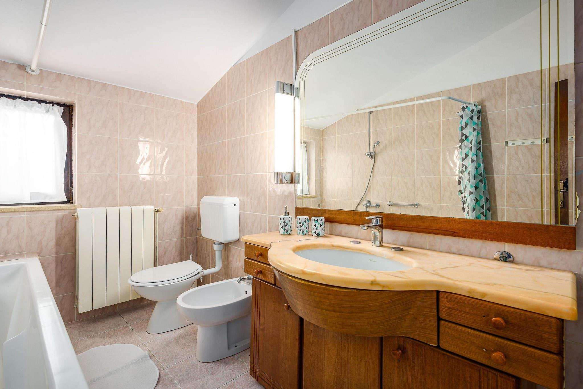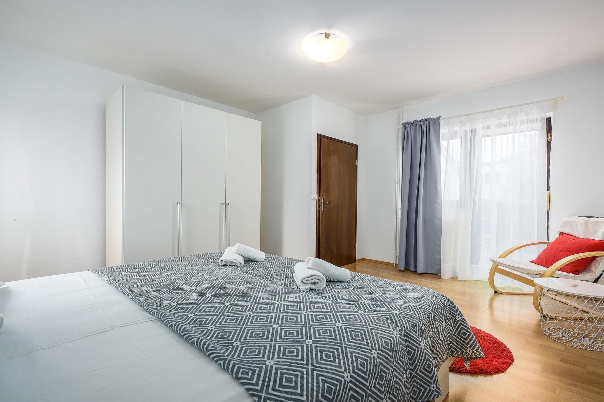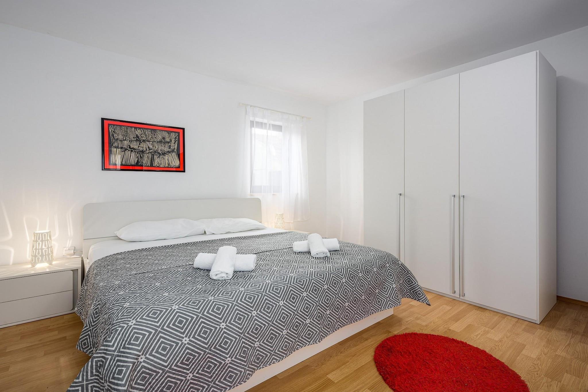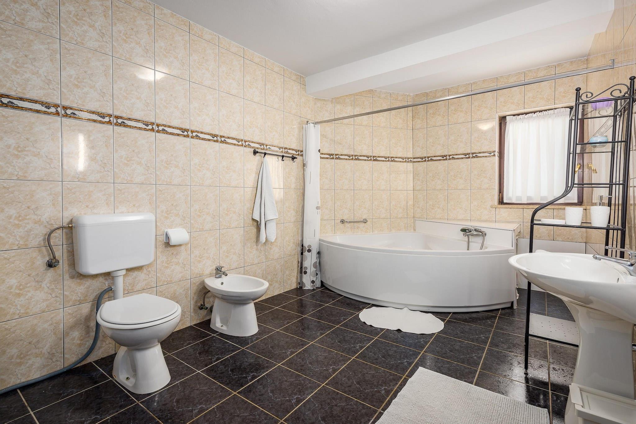 Ejendommen tilbyder sammen med sit rummelige og indbydende design en komfortabel villa med fire soveværelser, der kan rumme op til otte gæster. Det har en privat have, udendørs møbler og en privat swimmingpool, ideel til udendørs fritid. Indenfor har villaen væsentlige faciliteter såsom aircondition, en varmepumpe til komfort året rundt, Wi-Fi, en vaskemaskine, en pejs og et tv med satellitkanaler på tysk. Villaen tilbyder også terrasse, balkon, spabad og udendørs parkering i samme bygning. Villaen er beliggende i det naturskønne landdistrikt Stranici kod Nove Vasi og tilbyder nem adgang til lokale attraktioner og faciliteter. Den nærliggende by Porec ligger kun 7 km væk, hvor gæsterne kan udforske klippestrande, butikker og spisemuligheder. Vandlandet "Aquacolors" (9 km) og forlystelsesparken "Dinopark Funtana" (13 km) er ideelle til familieunderholdning. Naturelskere kan besøge "NP Brijuni" naturreservatet (54 km) eller nyde en naturskøn udsigt langs "floden Mirna" (19 km). For golfentusiaster ligger golfbanen "Crveni Vrh" 44 km væk. Derudover tilbyder Pula Lufthavn (61 km) og togstationerne i Pazin (36 km) nem adgang til villaen for rejsende. Villaen har et uafhængigt køkken designet til bekvemmelighed og funktionalitet. Køkkenet er udstyret med gaskomfur, køleskab, mikroovn, ovn, fryser, opvaskemaskine, kaffemaskine, brødrister og kedel, sammen med alt nødvendigt køkkenudstyr, tallerkener og bestik til at tilberede måltider. For ekstra komfort inkluderer ejendommen et spabad til afslapning og en grill til udendørs spisning. Villaen tilbyder også en sikkerhedsboks og en hårtørrer for ekstra bekvemmelighed.