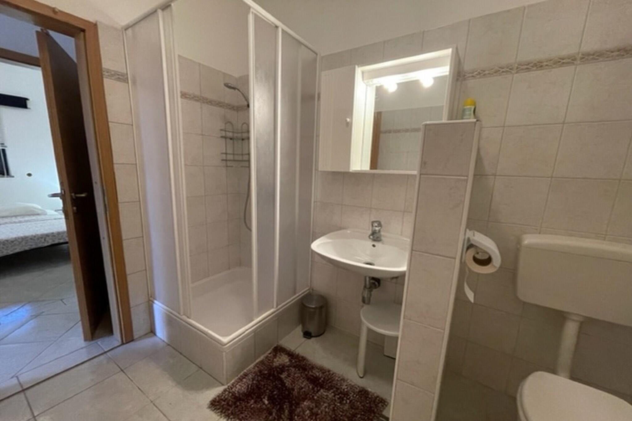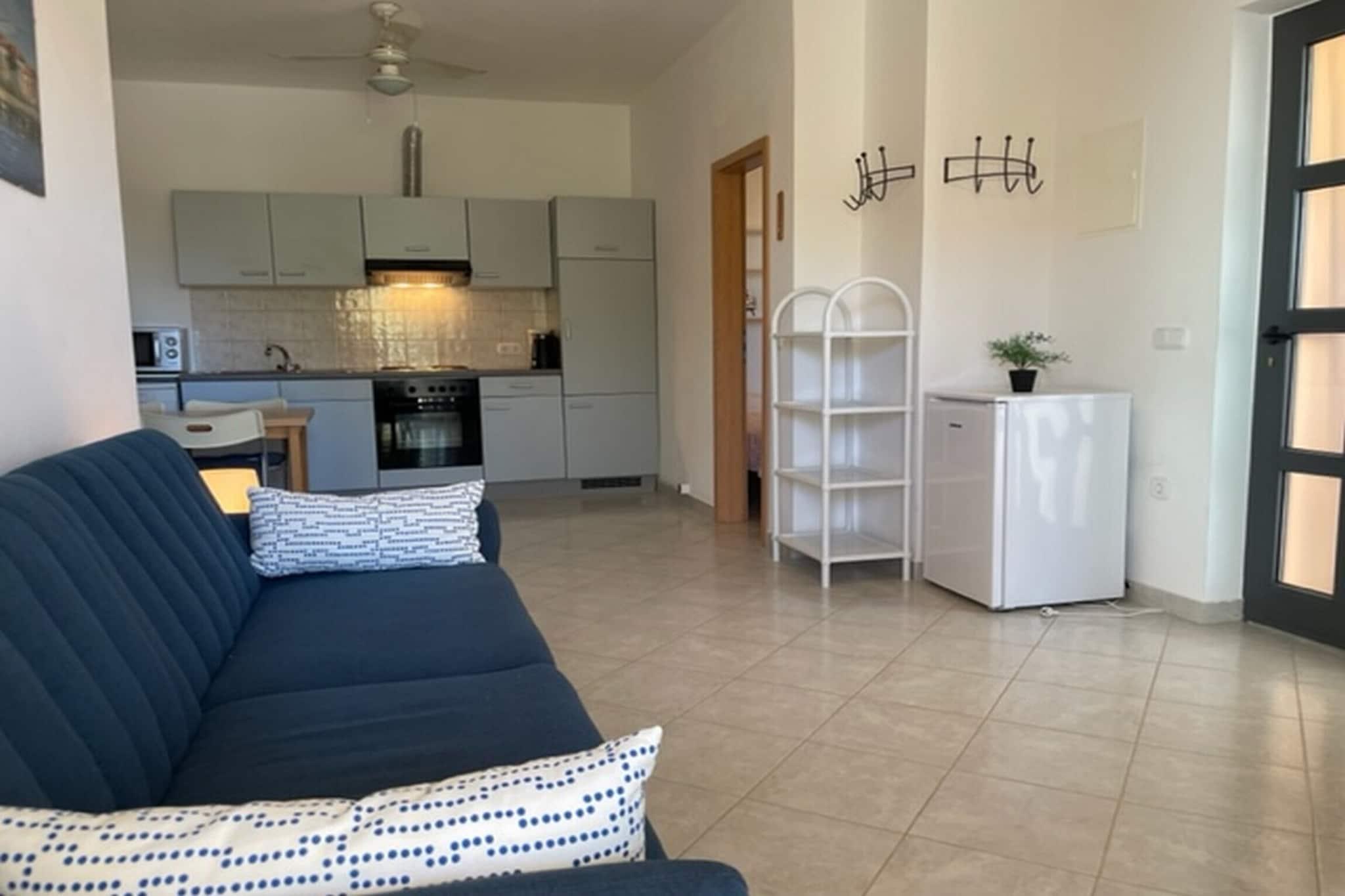 Denne lejlighed tilbyder sammen med sit lyse og komfortable design en lejlighed med to soveværelser med plads til op til fire gæster, med en have, udendørsmøbler og en terrasse til udendørs afslapning. Ejendommen inkluderer også adgang til en fælles swimmingpool, perfekt til at slappe af. Indvendigt byder lejligheden på faciliteter såsom aircondition, varmepumpe til klimastyring, Wi-Fi, tv med satellitkanaler på engelsk og tysk, ventilator og hårtørrer. Lejligheden er bekvemt beliggende i Stranici kod Nove Vasi, og tilbyder nem adgang til flere lokale attraktioner. Vandlandet "Aquacolors Porec" ligger kun 9 meter væk, hvilket er ideelt til en dag med familiesjov. "Sandy Beach Marea, Spadici" (4 km) og "Marea Beach" (4 km) giver smukke steder til svømning og afslapning. Gæsterne kan udforske byen Porec (7 km), med dens livlige shoppingmuligheder, restauranter og kulturelle muligheder. Ejendommen ligger også tæt på offentlige transportmuligheder, med togstationen "Zeljeznicki kolodvor Pula" 63 meter væk og Porec busstation (7 km) inden for rækkevidde. For naturentusiaster er "Mirna River" (11 km) og "Brijuni Islands" naturreservatet (56 km) et besøg værd. Pula Lufthavn (63 km) giver nem adgang til lejligheden for rejsende. Lejlighedens åbent køkken er udstyret med moderne elektriske apparater, herunder køleskab, mikroovn, ovn, fryser, opvaskemaskine, kaffemaskine, brødrister og kedel. Gæsterne kan også nyde udendørs spisning med den medfølgende grill. Den fælles swimmingpool tilbyder en ekstra mulighed for afslapning, og lejligheden inkluderer en værdiboks og aircondition for ekstra komfort.