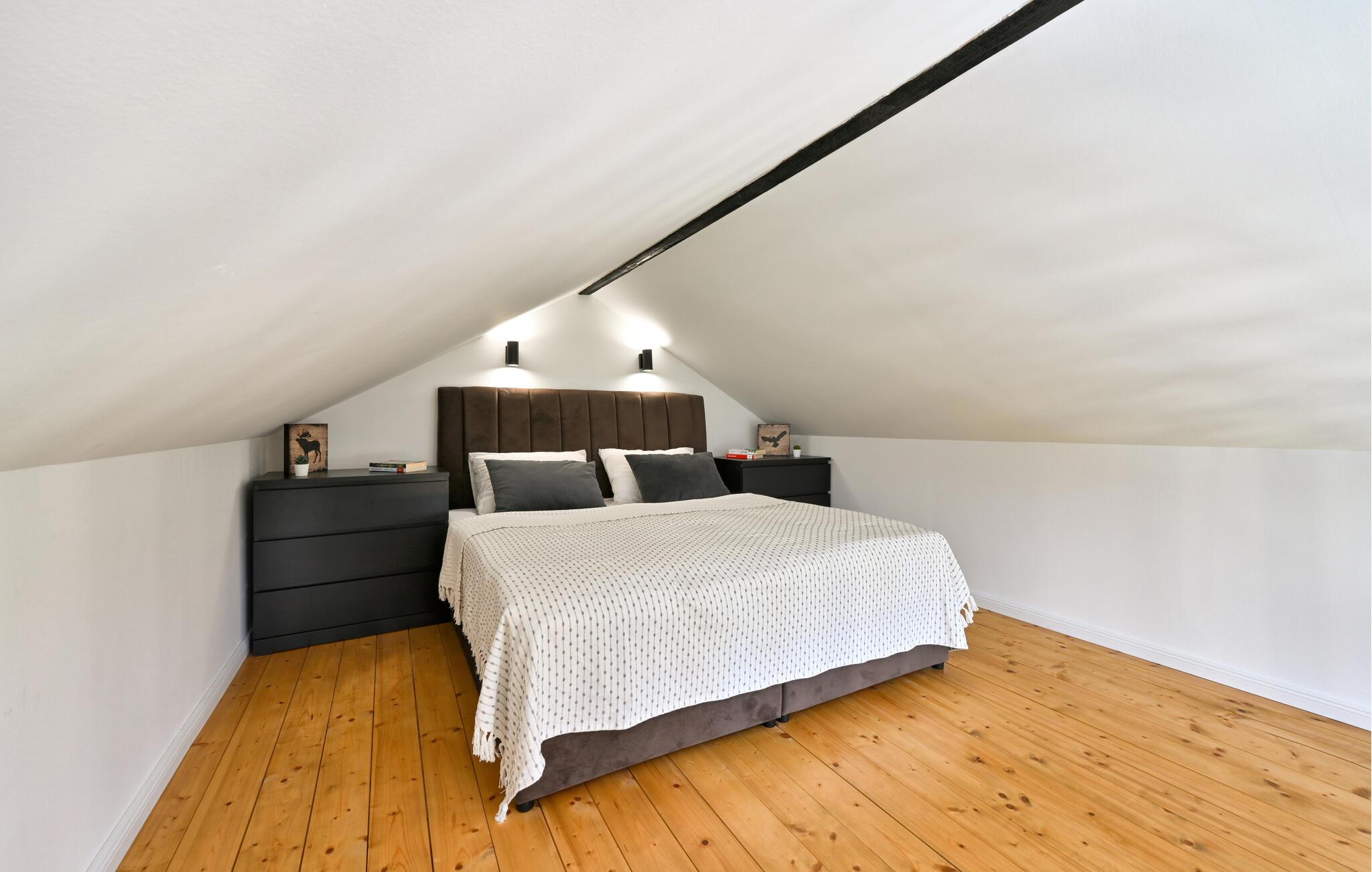 En ferie fuld af afslapning og komfort venter jer i dette moderne og meget stilfulde feriehus. Det åbne galleri og den smagfulde indretning skaber en indbydende atmosfære, der straks vil sætte jer i feriestemning. Nyd de højkvalitetsmøbler, der lægger op til at lave mad, spise og slappe af sammen.