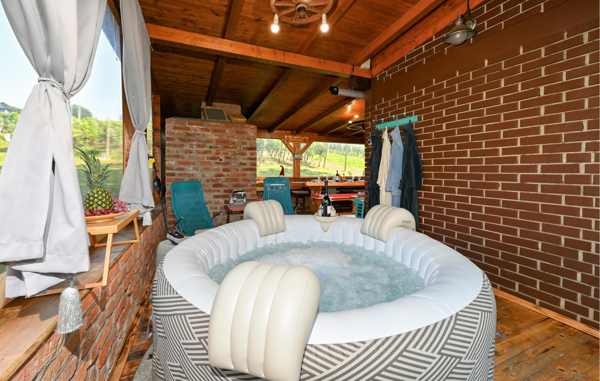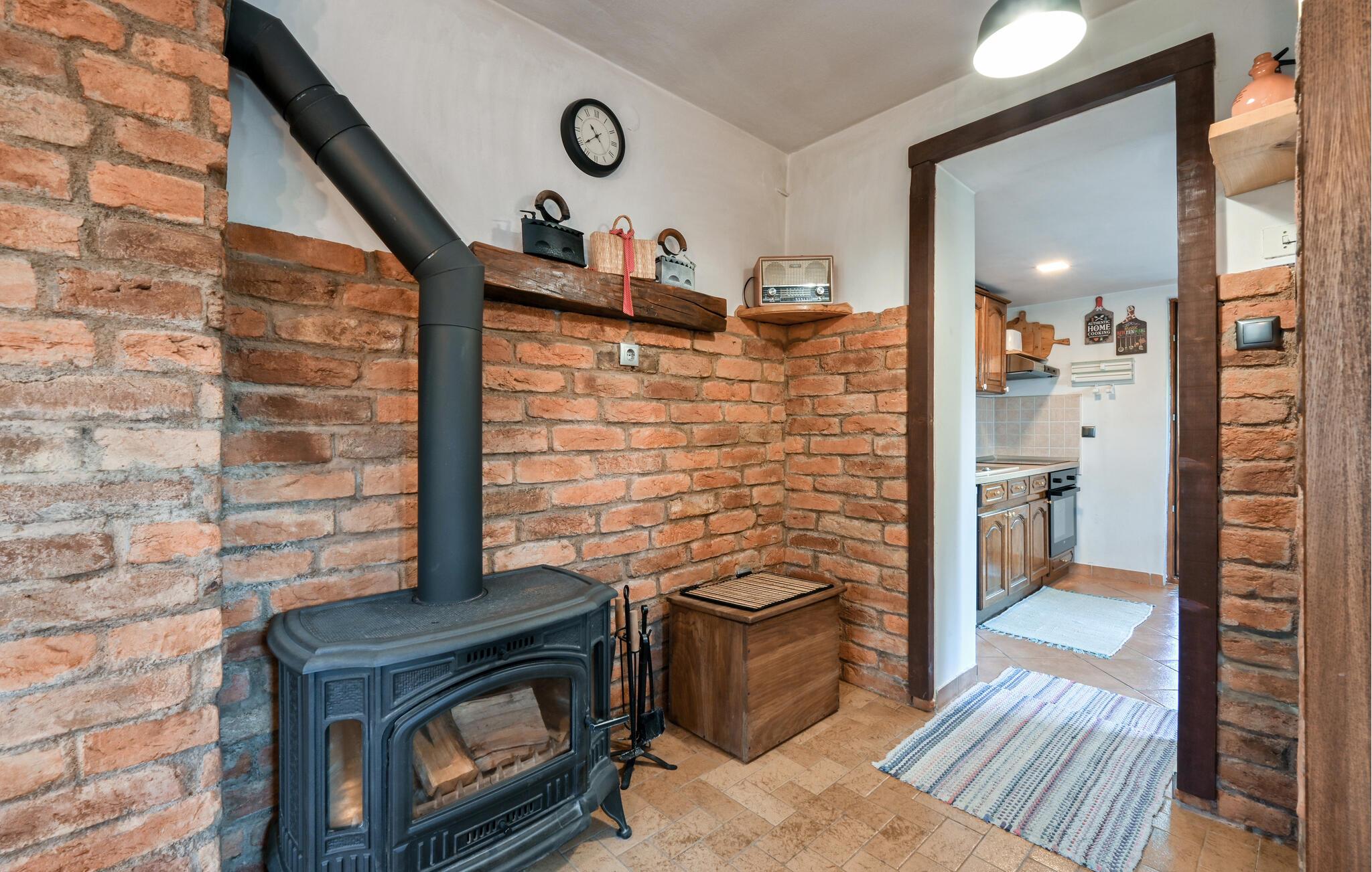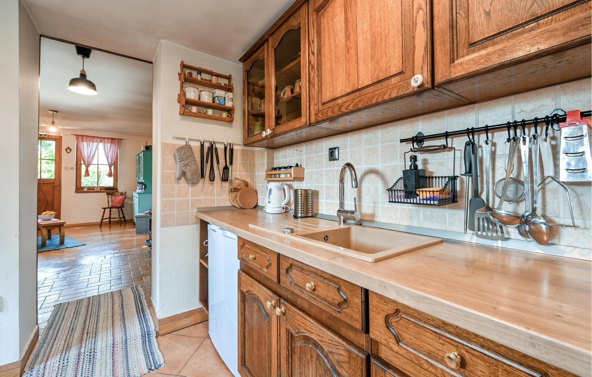 Velkommen til dette dejlige hus, der ligger virkelig smukt i det maleriske landskab og danner en skønne ramme om årets familieferie. Huset er pænt og rustikt indrettet med iøjefaldende og flot mix af træpaneler og murstensvægge, der giver det indre et hjemligt strejf og gør det nemt at slappe af med det samme, I ankommer. Tilbered familiens livretter i det veludstyrede køkken, dæk op ved spisebordet og nyd et lækkert måltid mad og et godt glas vin. Skal I gøre det lidt ekstra lækkert for jer selv, kan I forkæle jer selv med en aftentur i spabadet eller saunaen, inden I runder aftenen af i stuen ved den knitrende ild fra pejsen.