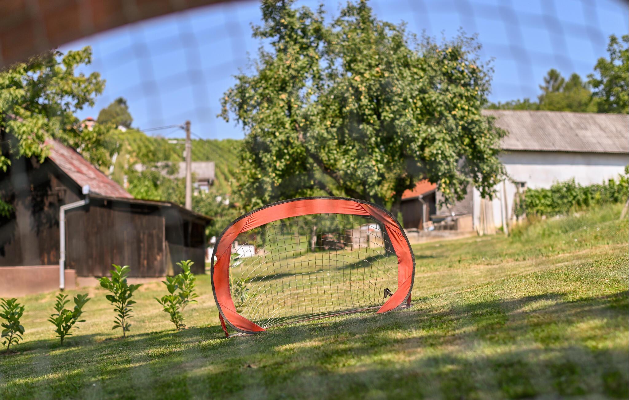 Nyd udsigten på terrassen, når solen skinner, og hold øje med børnene, der løber rundt og leger på den store grund. Her finder I gode loungemøbler, I kan flade ud i, og mulighed for at slag badminton, inden I tager på tur.