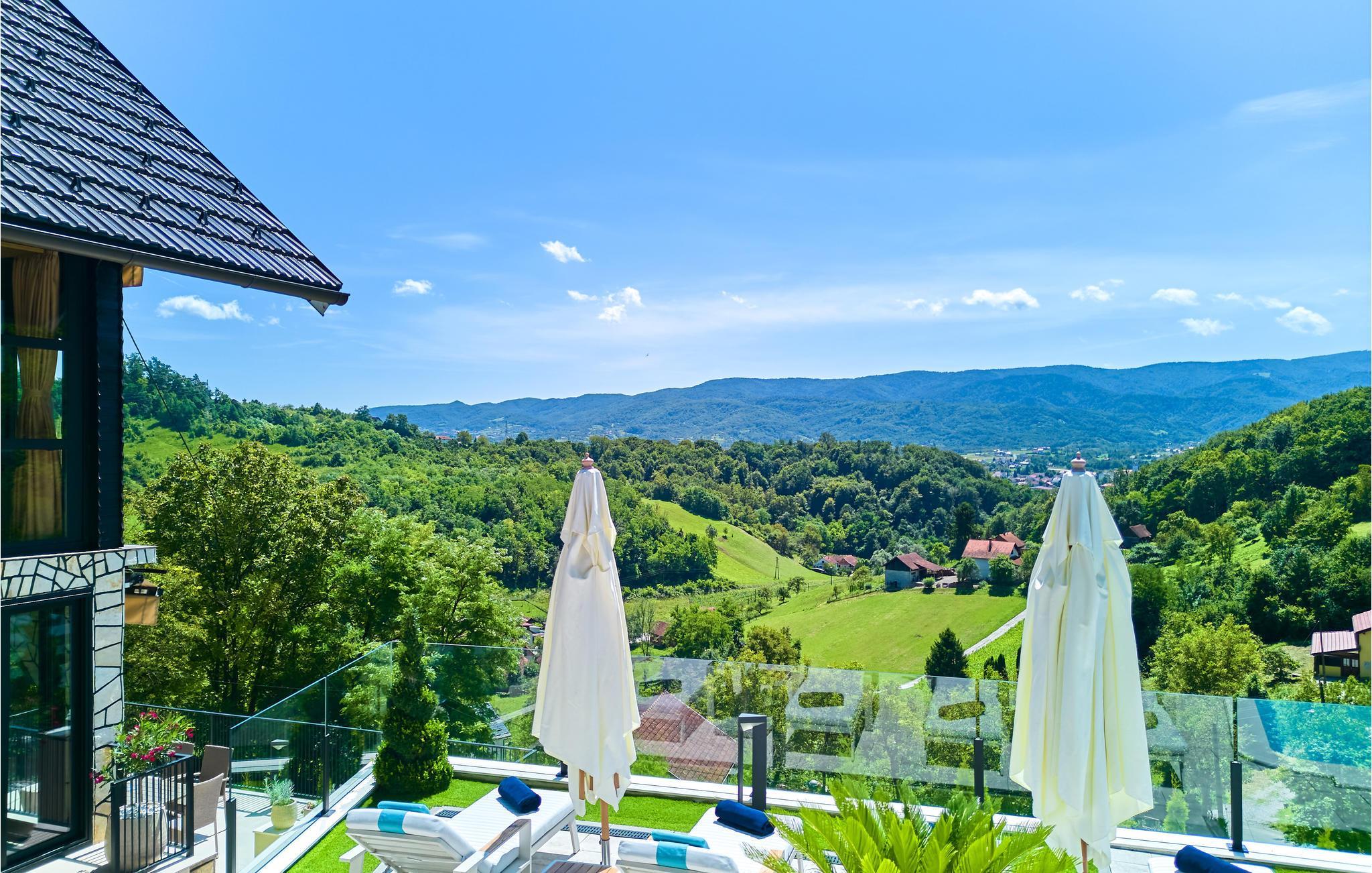 Rummeligt, familievenligt feriehus med privat udendørspool og panoramaudsigt over området.