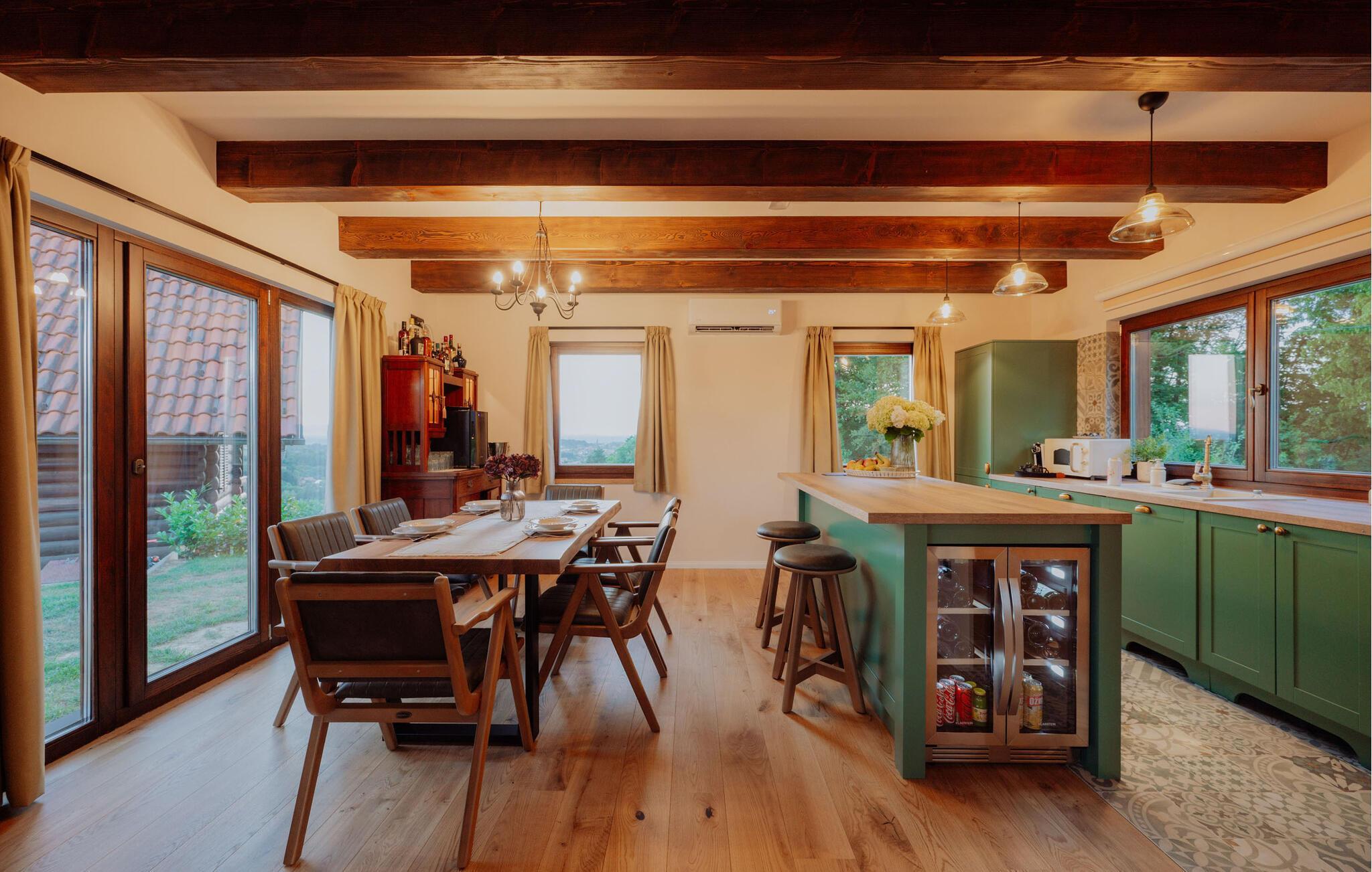 I en ophøjet beliggenhed på en bakke i hjertet af Zagorje venter denne villa omgivet af vinmarker ovenfor Stubicke Toplice i naturparken Medvednica. Det eksklusive interiør byder på adskillige moderne faciliteter og udstråler en hyggelig atmosfære – ideelt til stemningsfulde feriestunder. Villaen tilbyder en enestående kombination af luksus, natur og absolut privatliv – perfekt til familier, par eller vennegrupper, og er en oplevelse for gæster, der virkelig forstår at nyde livet. Forkæl jer selv med afslappende øjeblikke i wellnessområdet, mens andre hygger sig med PlayStation, nyd et glas vin i stuen med pejs og panoramaudsigt over Sljeme og Slovenien, eller stream en film, som alle kan lide.