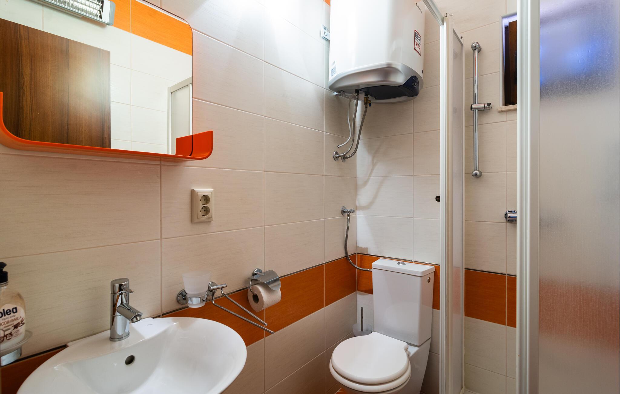 Badeværelse 5m2 (nr. 1) - WC. Varmt og koldt vand. Bruser