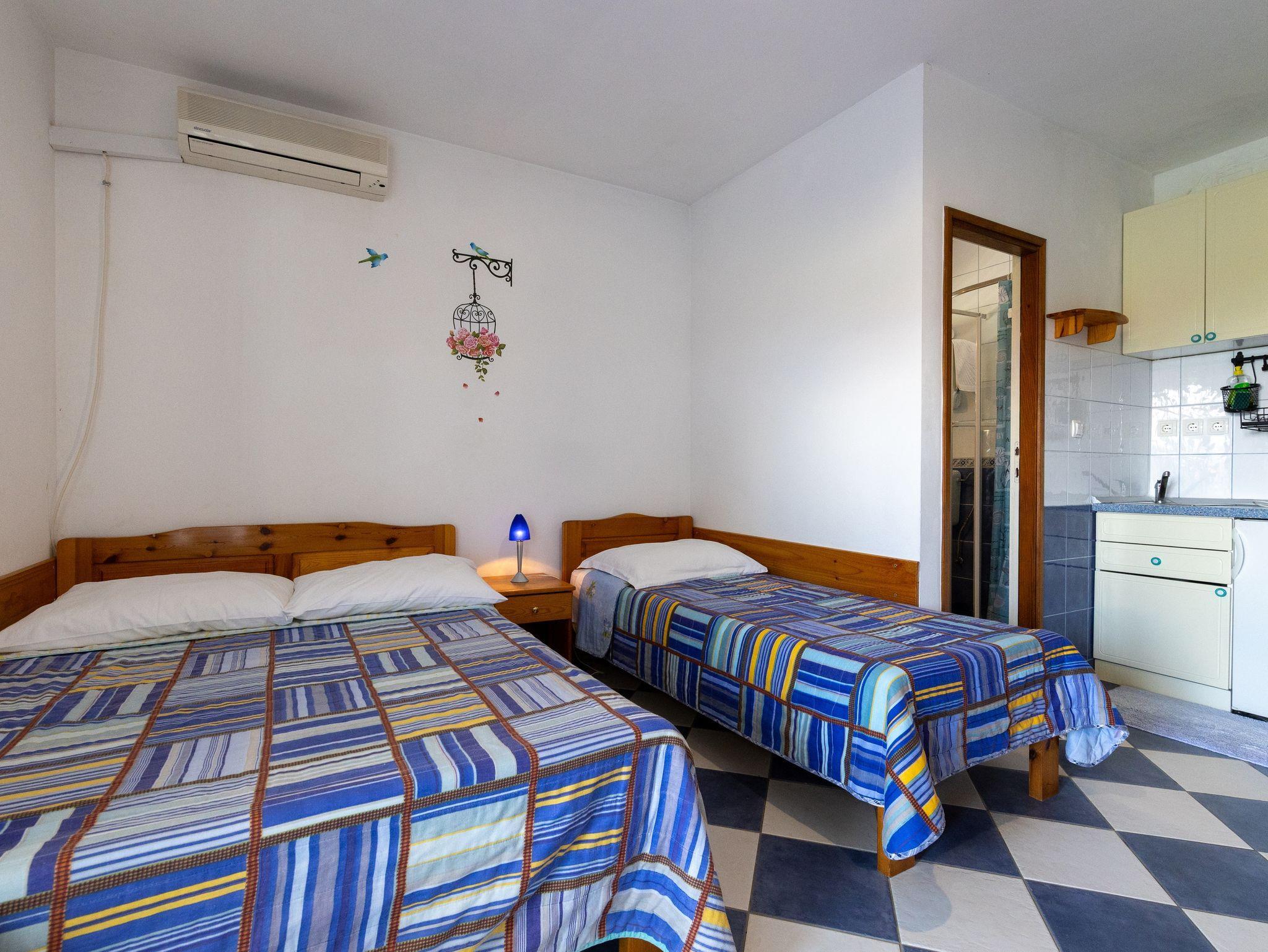 Studio bietet Platz für 3 Gäste. Die Betten sind in Schlafzimmern, die es 1 gibt, innerhalb einer Gesamtfläche von 17m2, angeordnet. Die Gäste haben eine eigene Terrasse zur Verfügung, auf der sie in warmen Sommernächten genießen können. Es ist erlaubt, Speisen auf dem Gemeinschafts-Grill vorzubereiten. In der Unterkunftseinheit besteht die Möglichkeit des Mitbringens von Haustieren gegen Aufpreis. IM PREIS INBEGRIFFEN: Kurtaxe, Endreinigung, Klimatisierung, Parkplatz, Internet, Kinderbett, Bügeleisen, Bügelbrett, Föhn. VERBINDLICHE ZUSÄTZLICHE KOSTEN: Aufzahlung für Kurzaufenthalte (prozentualer Zuschlag pro Nächtigungsanzahl: 30% - 1, 20% - 2, 10% - 3). UNVERBINDLICHE ZUSÄTZLICHE KOSTEN: Frühstück (10,00 €, 50% Nachlass für Kinder zwischen 4 und 12 Jahren, Kinder bis 4 Jahre sind frei.), Haustiere (10,00 € pro Nacht). Die Verfügbarkeit zusätzlicher Dienstleistungen in Ihrem reservierten Termin und die Preise derselben (falls nicht aufgeführt) müssen im Voraus überprüft werden. Zusätzliche Dienstleistungen die in der Zahlungsaufforderung nicht aufgeführt sind werden direkt beim Vermieter bezahlt, angenommen der Gast nutzt auch diese. Ermäßigung auf den Grundpreis: Gratistag 28=25 (bei einem Aufenthalt von 28 oder mehr Tagen erhalten Sie 3 kostenlose Tage für den Aufenthalt bis 31.12.26).