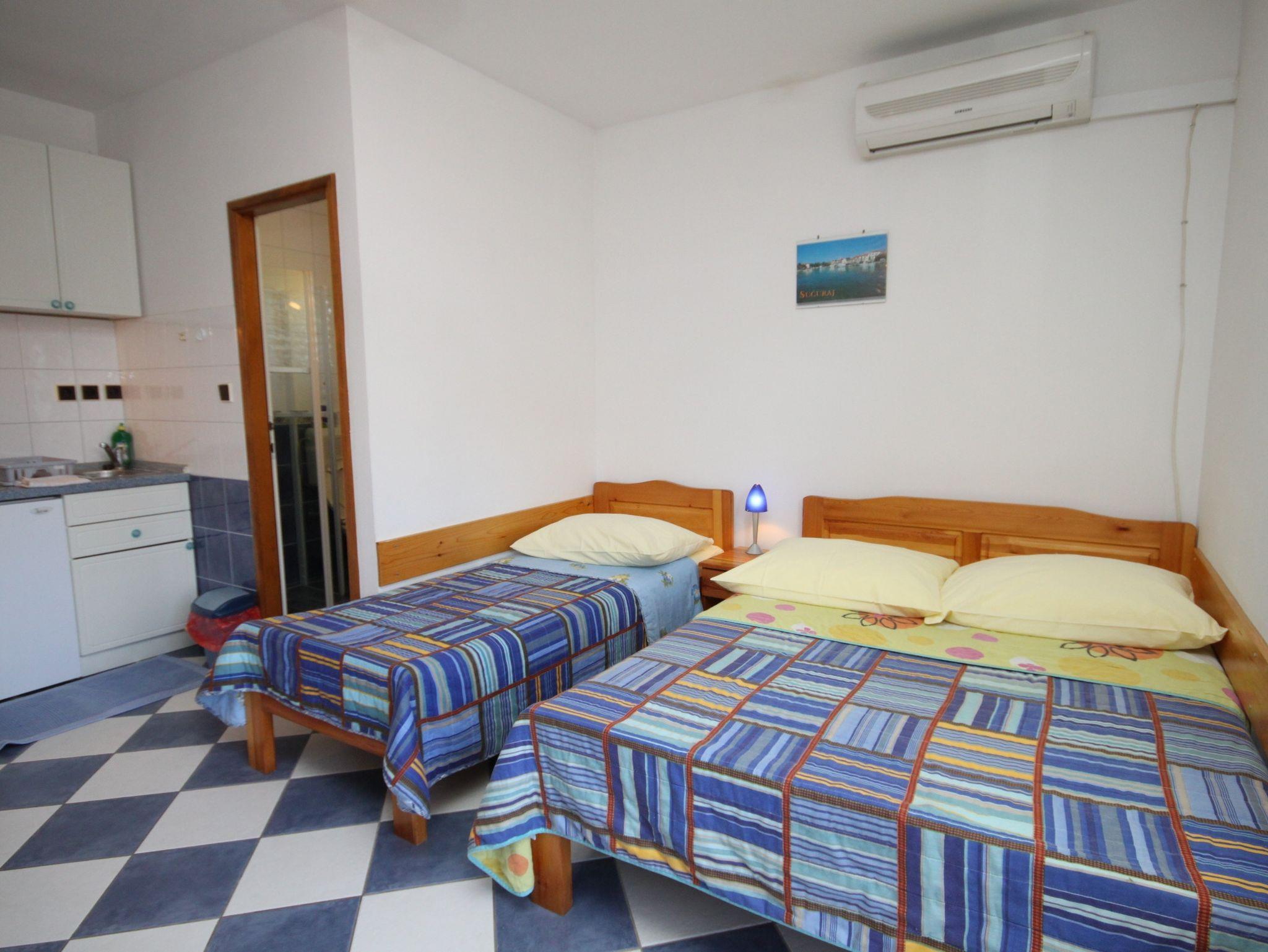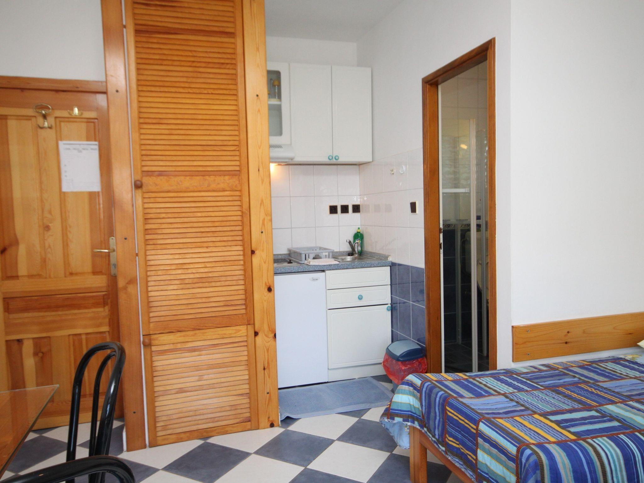 Studio bietet Platz für 3 Gäste. Die Betten sind in Schlafzimmern, die es 1 gibt, innerhalb einer Gesamtfläche von 17m2, angeordnet. Die Gäste haben einen eigenen Balkon zur Verfügung, auf der sie in warmen Sommernächten genießen können. Es ist erlaubt, Speisen auf dem Gemeinschafts-Grill vorzubereiten. In der Unterkunftseinheit besteht die Möglichkeit des Mitbringens von Haustieren gegen Aufpreis. IM PREIS INBEGRIFFEN: Kurtaxe, Endreinigung, Klimatisierung, Parkplatz, Internet, Kinderbett, Bügeleisen, Bügelbrett, Föhn. VERBINDLICHE ZUSÄTZLICHE KOSTEN: Aufzahlung für Kurzaufenthalte (prozentualer Zuschlag pro Nächtigungsanzahl: 30% - 1, 20% - 2, 10% - 3). UNVERBINDLICHE ZUSÄTZLICHE KOSTEN: Frühstück (10,00 €, 50% Nachlass für Kinder zwischen 4 und 12 Jahren, Kinder bis 4 Jahre sind frei.), Haustiere (10,00 € pro Nacht). Die Verfügbarkeit zusätzlicher Dienstleistungen in Ihrem reservierten Termin und die Preise derselben (falls nicht aufgeführt) müssen im Voraus überprüft werden. Zusätzliche Dienstleistungen die in der Zahlungsaufforderung nicht aufgeführt sind werden direkt beim Vermieter bezahlt, angenommen der Gast nutzt auch diese. Ermäßigung auf den Grundpreis: Gratistag 28=25 (bei einem Aufenthalt von 28 oder mehr Tagen erhalten Sie 3 kostenlose Tage für den Aufenthalt bis 31.12.26).