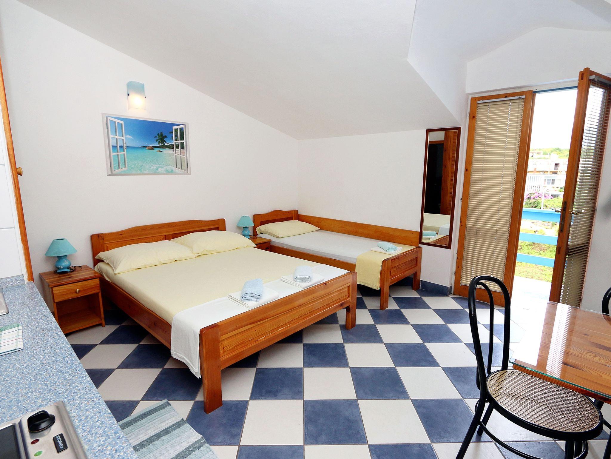 Studio bietet Platz für 3 Gäste. Die Betten sind in Schlafzimmern, die es 1 gibt, innerhalb einer Gesamtfläche von 18m2, angeordnet. Die Gäste haben einen eigenen Balkon zur Verfügung, auf der sie in warmen Sommernächten genießen können. Das Studio-Apartment bietet Meerblick. Es ist erlaubt, Speisen auf dem Gemeinschafts-Grill vorzubereiten. In der Unterkunftseinheit besteht die Möglichkeit des Mitbringens von Haustieren gegen Aufpreis. IM PREIS INBEGRIFFEN: Endreinigung, Klimatisierung, Parkplatz, Internet, Kinderbett, Bügeleisen, Bügelbrett, Föhn. VERBINDLICHE ZUSÄTZLICHE KOSTEN: Kurtaxe (Erwachsene 0,65 € - 1,33 € Nacht/Person, Kinderermäßigung 12 - 17 Jahre), Aufzahlung für Kurzaufenthalte (prozentualer Zuschlag pro Nächtigungsanzahl: 30% - 1, 20% - 2, 10% - 3). UNVERBINDLICHE ZUSÄTZLICHE KOSTEN: Frühstück (10,00 €, 50% Nachlass für Kinder zwischen 4 und 12 Jahren, Kinder bis 4 Jahre sind frei.), Haustiere (10,00 € pro Nacht). Die Verfügbarkeit zusätzlicher Dienstleistungen in Ihrem reservierten Termin und die Preise derselben (falls nicht aufgeführt) müssen im Voraus überprüft werden. Zusätzliche Dienstleistungen die in der Zahlungsaufforderung nicht aufgeführt sind werden direkt beim Vermieter bezahlt, angenommen der Gast nutzt auch diese.