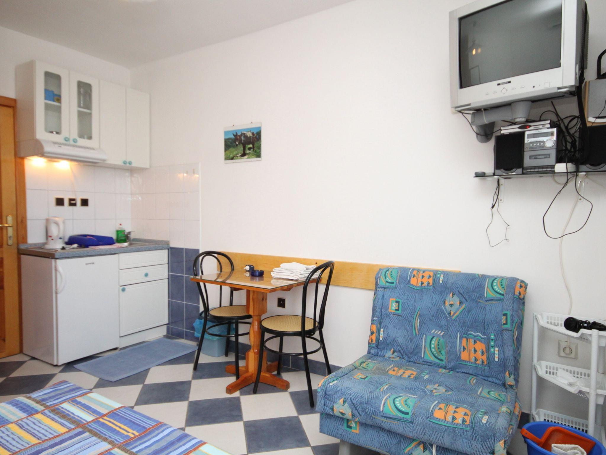 Studio bietet Platz für 2 Gäste. Die Betten sind in Schlafzimmern, die es 1 gibt, innerhalb einer Gesamtfläche von 15m2, angeordnet. Die Gäste haben einen eigenen Balkon zur Verfügung, auf der sie in warmen Sommernächten genießen können. Es ist erlaubt, Speisen auf dem Gemeinschafts-Grill vorzubereiten. In der Unterkunftseinheit besteht die Möglichkeit des Mitbringens von Haustieren gegen Aufpreis. IM PREIS INBEGRIFFEN: Kurtaxe, Endreinigung, Klimatisierung, Parkplatz, Internet, Kinderbett, Bügeleisen, Bügelbrett, Föhn. VERBINDLICHE ZUSÄTZLICHE KOSTEN: Aufzahlung für Kurzaufenthalte (prozentualer Zuschlag pro Nächtigungsanzahl: 30% - 1, 20% - 2, 10% - 3). UNVERBINDLICHE ZUSÄTZLICHE KOSTEN: Frühstück (10,00 €, 50% Nachlass für Kinder zwischen 4 und 12 Jahren, Kinder bis 4 Jahre sind frei.), Haustiere (10,00 € pro Nacht). Die Verfügbarkeit zusätzlicher Dienstleistungen in Ihrem reservierten Termin und die Preise derselben (falls nicht aufgeführt) müssen im Voraus überprüft werden. Zusätzliche Dienstleistungen die in der Zahlungsaufforderung nicht aufgeführt sind werden direkt beim Vermieter bezahlt, angenommen der Gast nutzt auch diese. Ermäßigung auf den Grundpreis: Gratistag 28=25 (bei einem Aufenthalt von 28 oder mehr Tagen erhalten Sie 3 kostenlose Tage für den Aufenthalt bis 31.12.26).