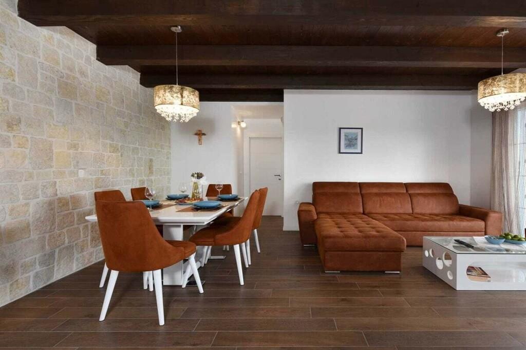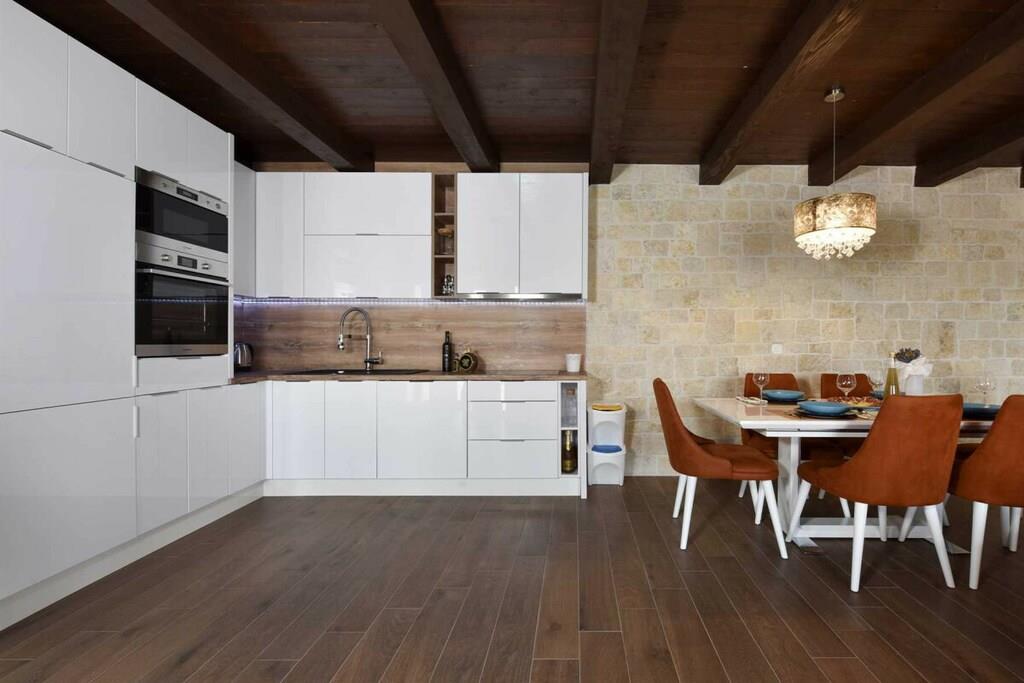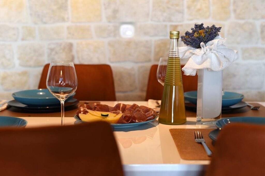 Die 75 m² große Innenfläche der Villa Jurenda bietet Platz für bis zu sechs Personen. Sie besteht aus einem Hauptschlafzimmer mit Doppelbett und eigenem Bad und einem weiteren Schlafzimmer mit Doppelbett. Die beiden Badezimmer verfügen über eine Dusche, ein Bidet und andere Annehmlichkeiten wie eine Waschmaschine und einen Haartrockner. Außerdem gibt es eine voll ausgestattete Küche mit allen notwendigen Küchenutensilien, um köstliche Mahlzeiten für Ihre Lieben zuzubereiten, und ein gemütliches Wohnzimmer mit einem ausziehbaren Sofa und einem Flachbildfernseher. Das Haus verfügt über Klimaanlage, Heizung und Internet. Da die Villa Jurenda tierfreundlich ist, sind Katzen, Hunde und andere Haustiere in der Villa mehr als willkommen.