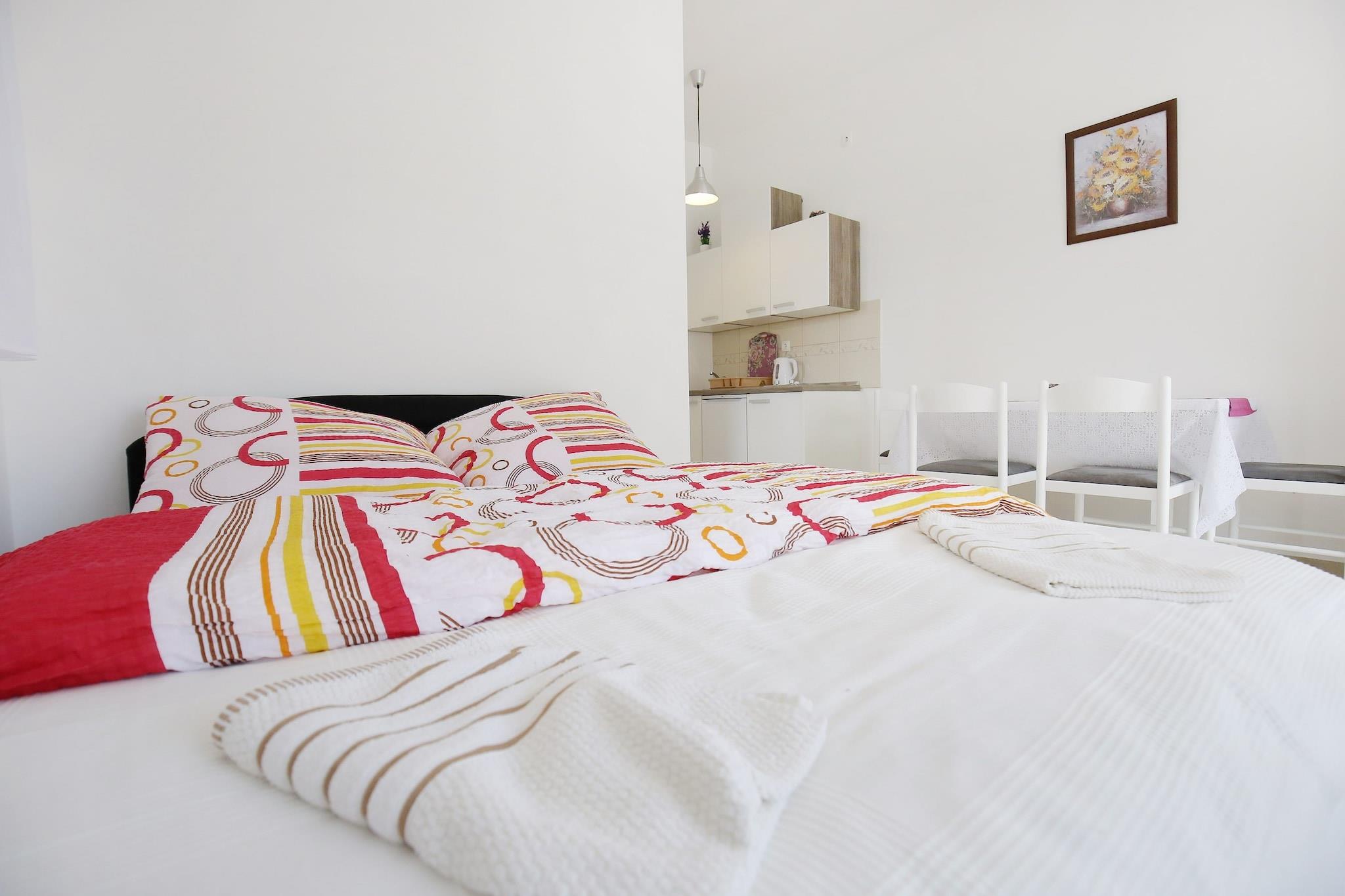 Apartments Kapetan are located in the heart of Sukošan, Zadar county, Croatia. Our modernly decorated apartments are ideal for those looking for peace, comfort, and proximity to the sea. The beach is less than 200 meters away, and everything you need - shops, pharmacies, restaurants - is just a few steps away. The famous sandy beach Djecji raj is perfect for families and is only 1 kilometer away from the apartments. Note: Private parking is available, and a reservation is not required. Wi-Fi is available throughout the property. Pets are not allowed. This studio apartment can accommodate up to 2 adults and one child up to 15 years. It features an SAT/flat-screen TV and is combined with a living room seating area, sofa, and kitchen. The private bathroom is equipped with a shower and toilet. Thanks to its excellent location, everything you'll need for your vacation is just a short walk from the property. Grocery stores, cafes, restaurants—everything is within a 300 m radius. The beach is 170 m away from the property. The airport is 6.50 km away from the property.