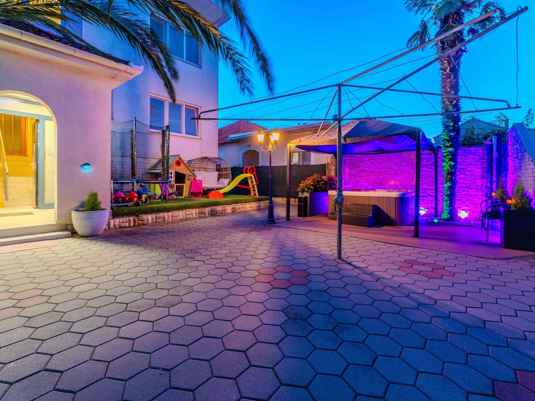 Hof (300m2, Kinderbereich, Sitzbereich), Parkplatz (Anzahl der Parkplätze: 8, Entfernung vom Objekt: im Hof), Pool: gemeinsam, Dimensionen: 4m x 3m x 1.5m, Wassertyp: Süßwasser, Grill: gemeinsam, WiFi Internet, Wäschewaschen, Föhn, Bügeleisen, Kinderbett
