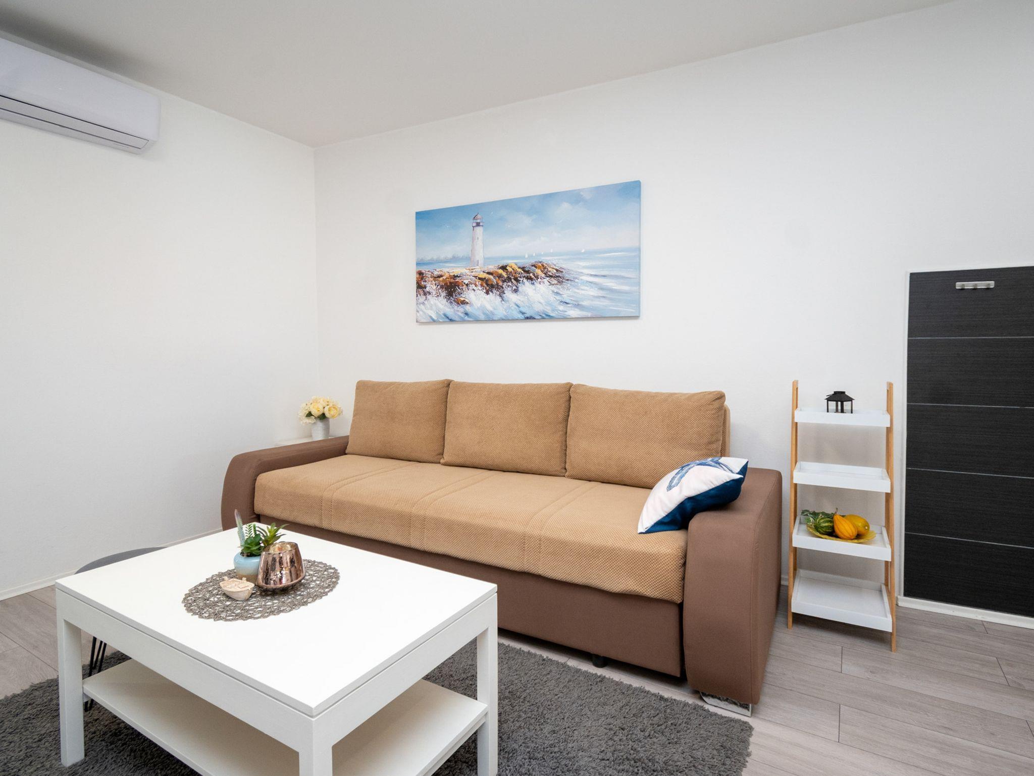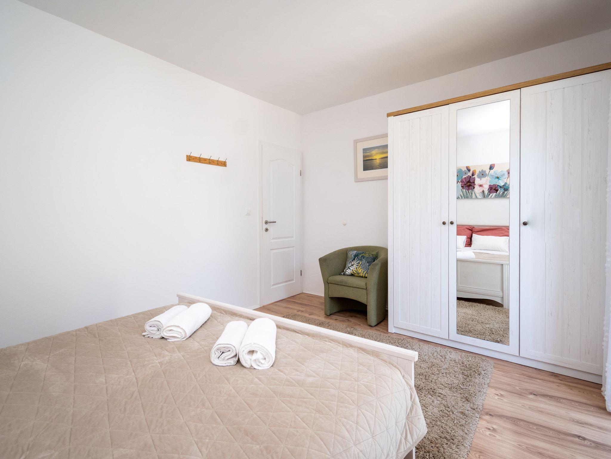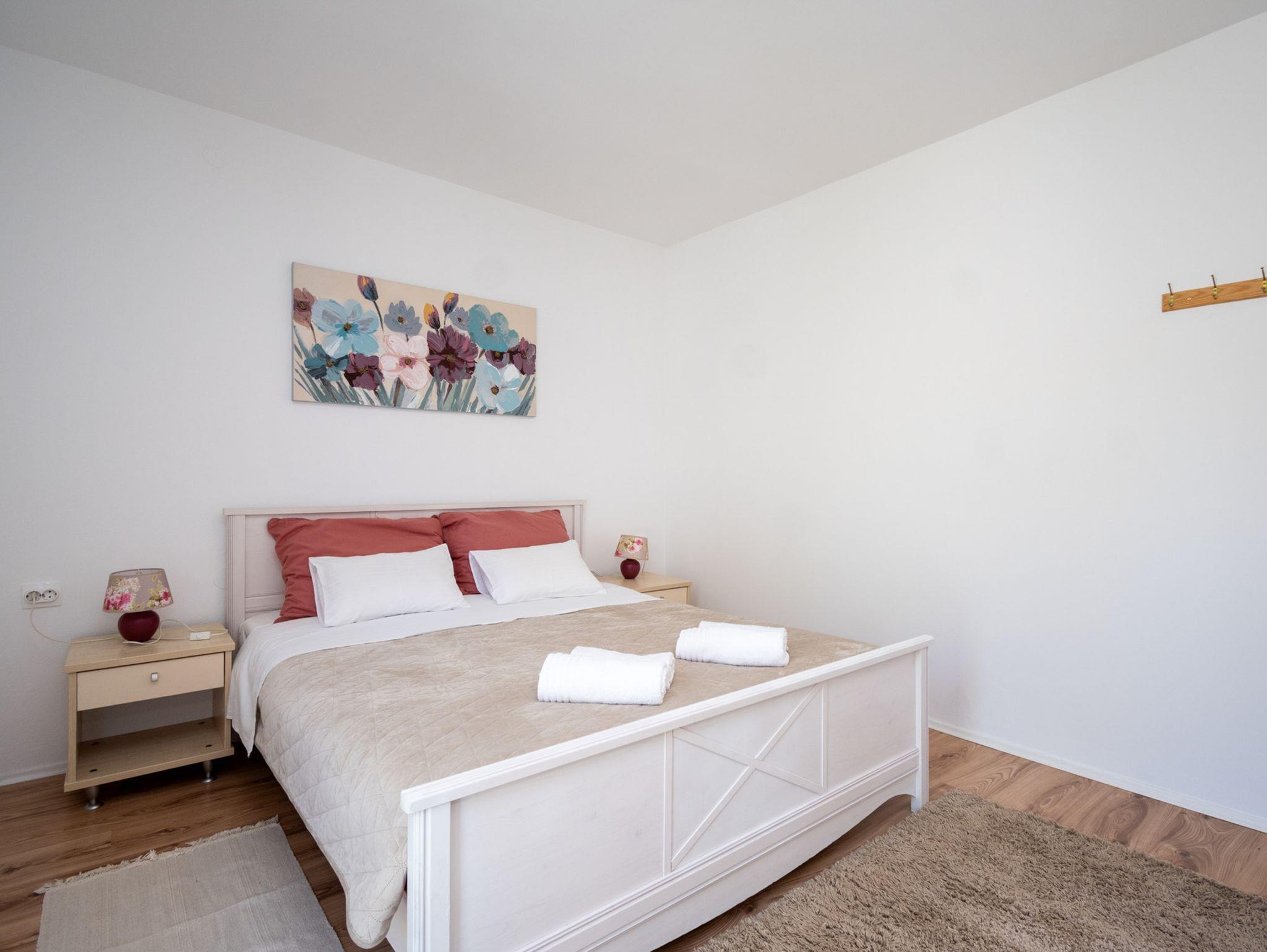 Haus bietet Platz für 5 Gäste. Die Betten sind in Schlafzimmern, die es 2 gibt, und in Wohnzimmer, innerhalb einer Gesamtfläche von 60m2, angeordnet. Die Gäste haben eine eigene Terrasse zur Verfügung, auf der sie in warmen Sommernächten genießen können. Für vollen Genuss und Entspannung gibt es einen privaten Grill für Gäste dieser Unterkunft. In der Unterkunftseinheit besteht die Möglichkeit des Mitbringens von Haustieren, und die Dienstleistung ist im Preis der Unterkunft enthalten. Räume der gebuchten Unterkunftseinheit werden nicht in eine Ganze verbunden. IM PREIS INBEGRIFFEN: Kurtaxe, Endreinigung, Klimatisierung, Parkplatz, Internet, Haustiere, Bügeleisen, Bügelbrett, Föhn, Sonnenschirm. Die Verfügbarkeit zusätzlicher Dienstleistungen in Ihrem reservierten Termin und die Preise derselben (falls nicht aufgeführt) müssen im Voraus überprüft werden. Zusätzliche Dienstleistungen die in der Zahlungsaufforderung nicht aufgeführt sind werden direkt beim Vermieter bezahlt, angenommen der Gast nutzt auch diese. Ermäßigung auf den Grundpreis: Gratistag 21=19 (bei einem Aufenthalt von 21 Tagen oder mehr erhalten Sie 2 Gratistage für den Aufenthalt bis 31.12.26).