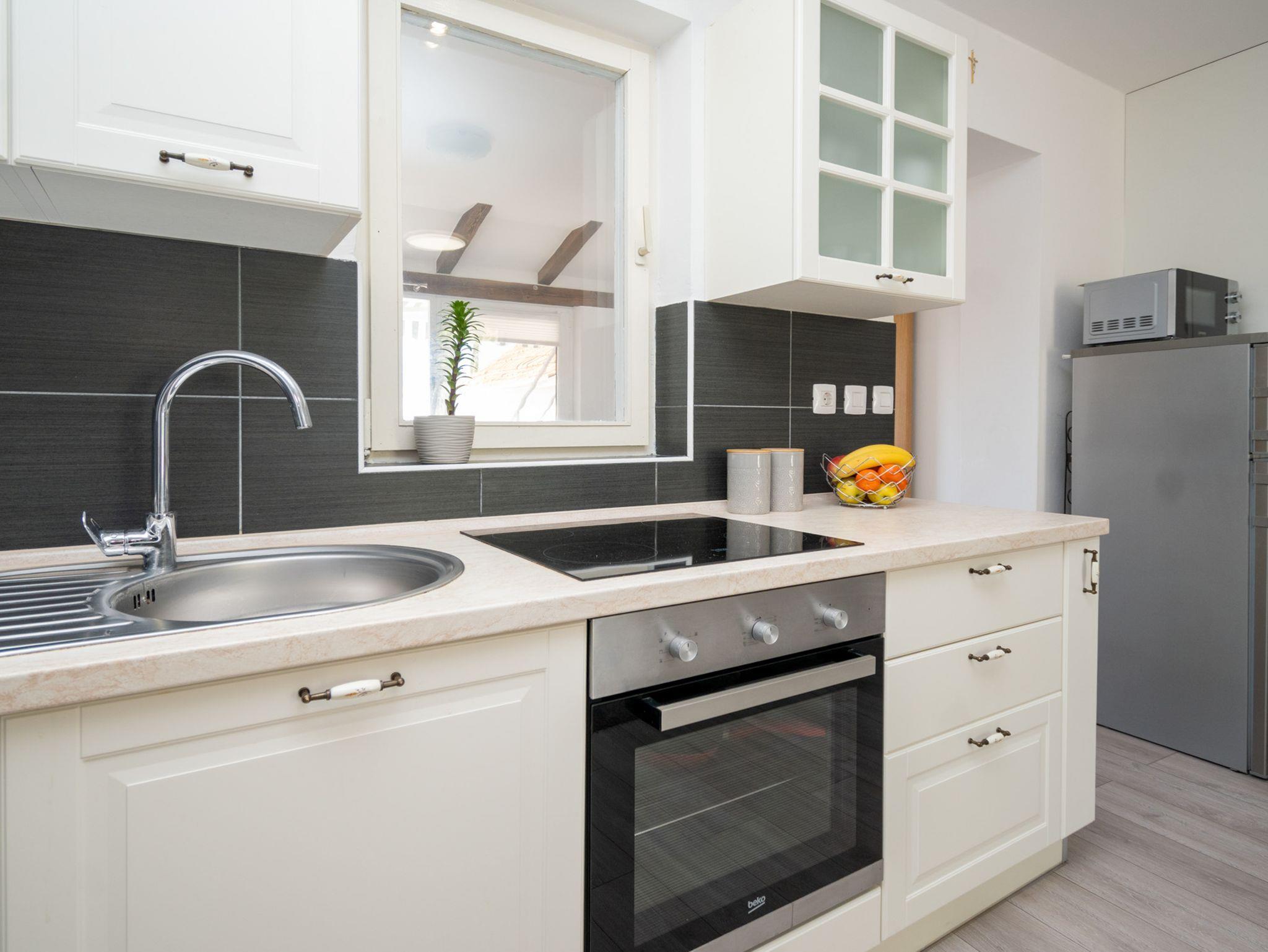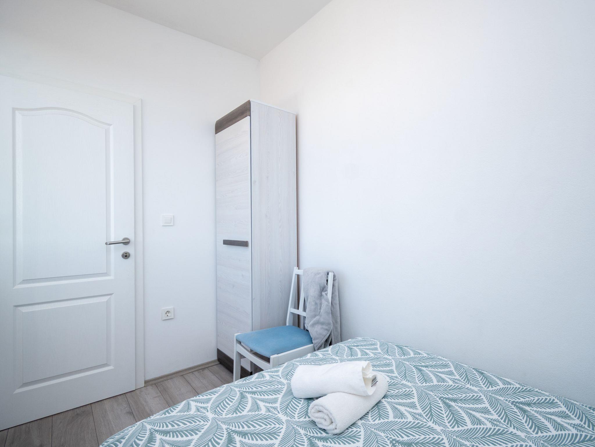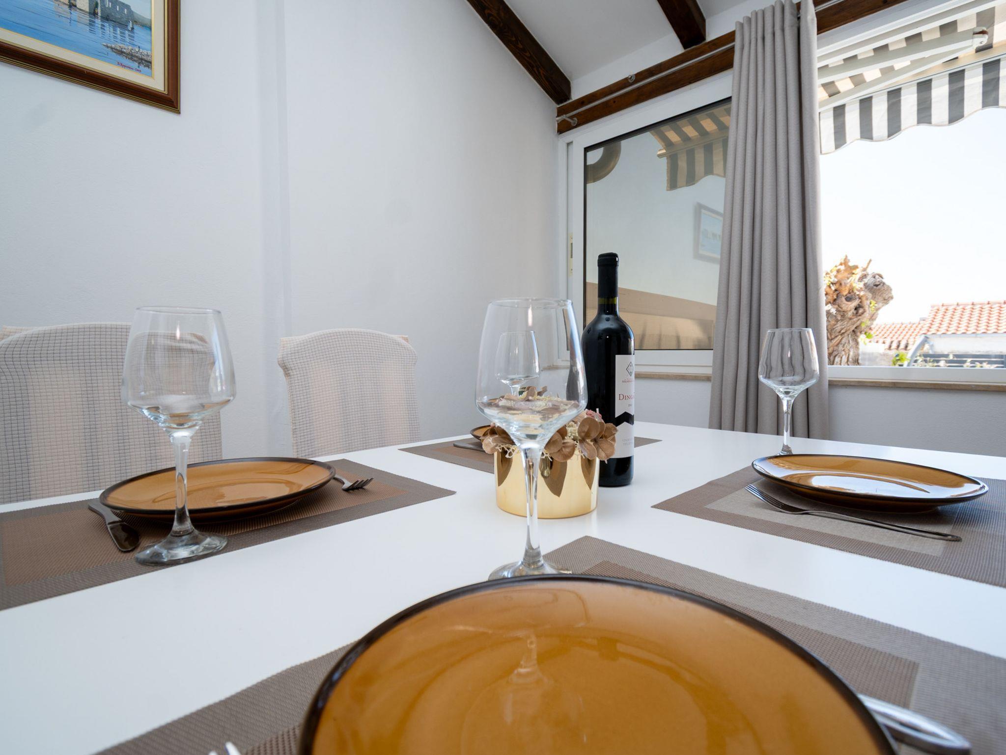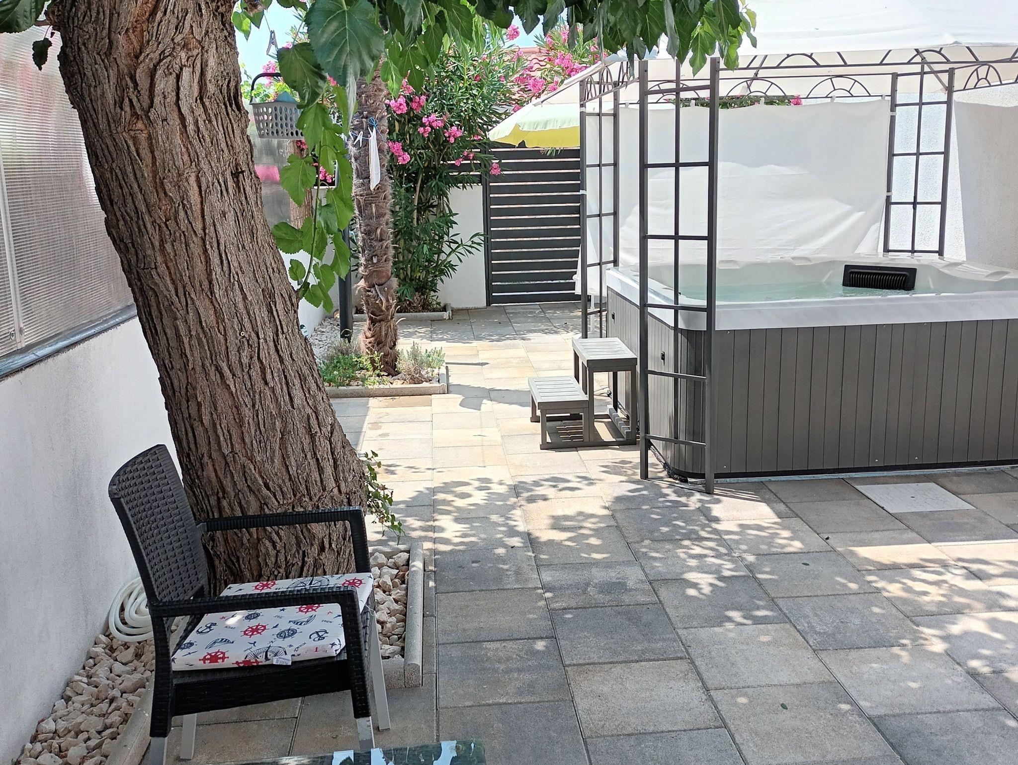 Haus bietet Platz für 5 Gäste. Die Betten sind in Schlafzimmern, die es 2 gibt, und in Wohnzimmer, innerhalb einer Gesamtfläche von 60m2, angeordnet. Die Gäste haben eine eigene Terrasse zur Verfügung, auf der sie in warmen Sommernächten genießen können. Für vollen Genuss und Entspannung gibt es einen privaten Grill für Gäste dieser Unterkunft. In der Unterkunftseinheit besteht die Möglichkeit des Mitbringens von Haustieren, und die Dienstleistung ist im Preis der Unterkunft enthalten. Räume der gebuchten Unterkunftseinheit werden nicht in eine Ganze verbunden. IM PREIS INBEGRIFFEN: Kurtaxe, Endreinigung, Klimatisierung, Parkplatz, Internet, Haustiere, Bügeleisen, Bügelbrett, Föhn, Sonnenschirm. Die Verfügbarkeit zusätzlicher Dienstleistungen in Ihrem reservierten Termin und die Preise derselben (falls nicht aufgeführt) müssen im Voraus überprüft werden. Zusätzliche Dienstleistungen die in der Zahlungsaufforderung nicht aufgeführt sind werden direkt beim Vermieter bezahlt, angenommen der Gast nutzt auch diese. Ermäßigung auf den Grundpreis: Gratistag 21=19 (bei einem Aufenthalt von 21 Tagen oder mehr erhalten Sie 2 Gratistage für den Aufenthalt bis 31.12.26).