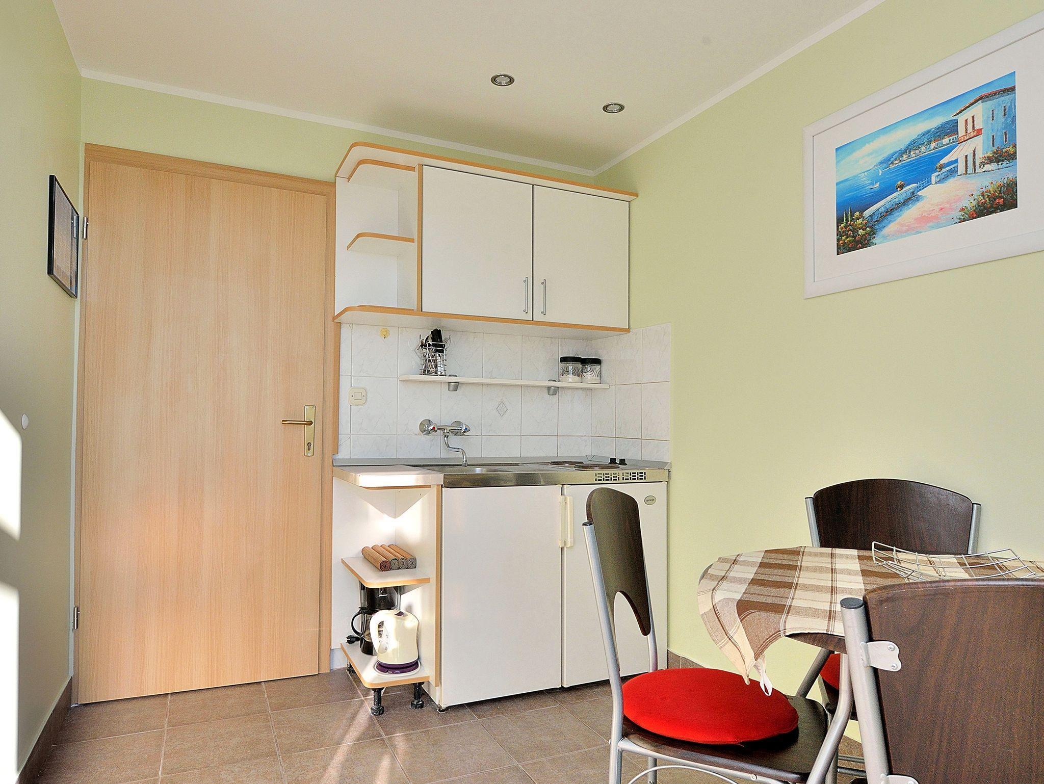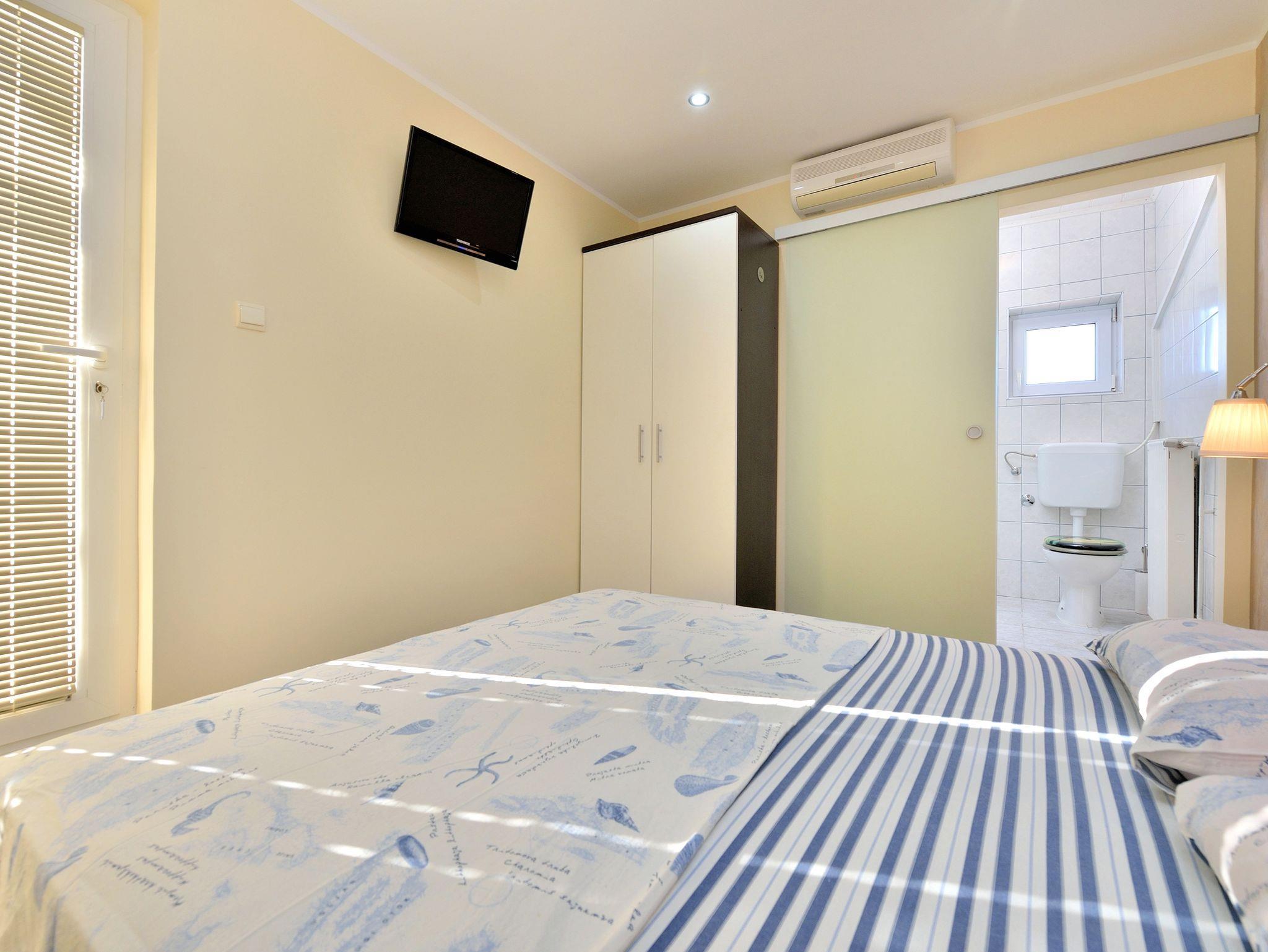 Ferienwohnung bietet Platz für 4 Gäste. Die Betten sind in Schlafzimmern, die es 1 gibt, und in Wohnzimmer, innerhalb einer Gesamtfläche von 27m2, angeordnet. Die Gäste haben eine eigene Terrasse zur Verfügung, auf der sie in warmen Sommernächten genießen können. Das Apartment bietet Meerblick. Es ist erlaubt, Speisen auf dem Gemeinschafts-Grill vorzubereiten. Während ihres Aufenthalts können Gäste das gemeinsam zur Nutzung stehende Schwimmbad benutzen. IM PREIS INBEGRIFFEN: Kurtaxe, Endreinigung, Klimatisierung, Zentralheizung, Pool, Parkplatz, Internet, Kinderbett, Bügeleisen, Föhn. VERBINDLICHE ZUSÄTZLICHE KOSTEN: Aufzahlung für Kurzaufenthalte (prozentualer Zuschlag pro Nächtigungsanzahl: 30% - 1, 20% - 2, 10% - 3). UNVERBINDLICHE ZUSÄTZLICHE KOSTEN: Wäschewaschen (5,00 € Waschen), Zusatzbett (15,00 € pro Nacht). Die Verfügbarkeit zusätzlicher Dienstleistungen in Ihrem reservierten Termin und die Preise derselben (falls nicht aufgeführt) müssen im Voraus überprüft werden. Zusätzliche Dienstleistungen die in der Zahlungsaufforderung nicht aufgeführt sind werden direkt beim Vermieter bezahlt, angenommen der Gast nutzt auch diese.