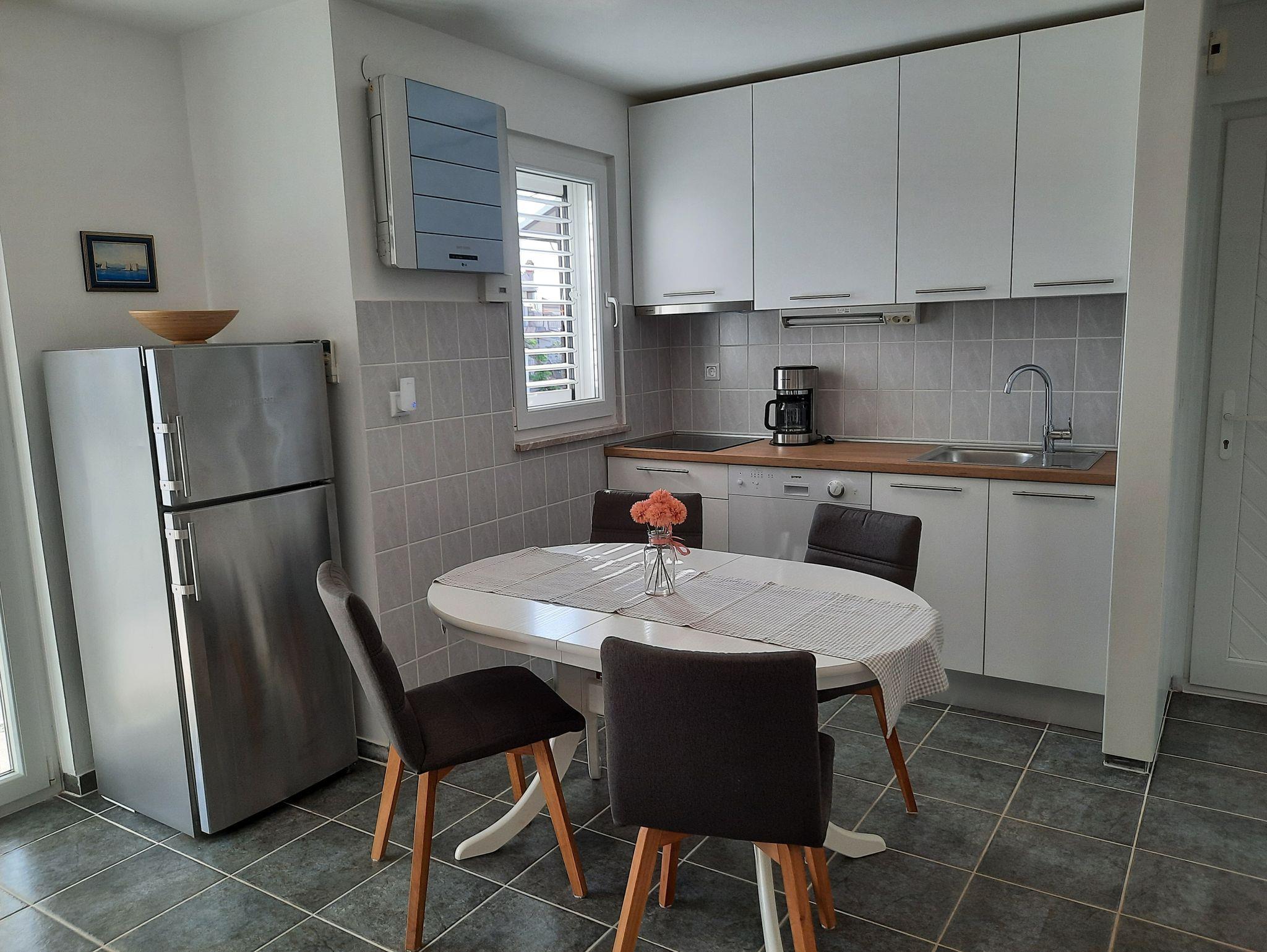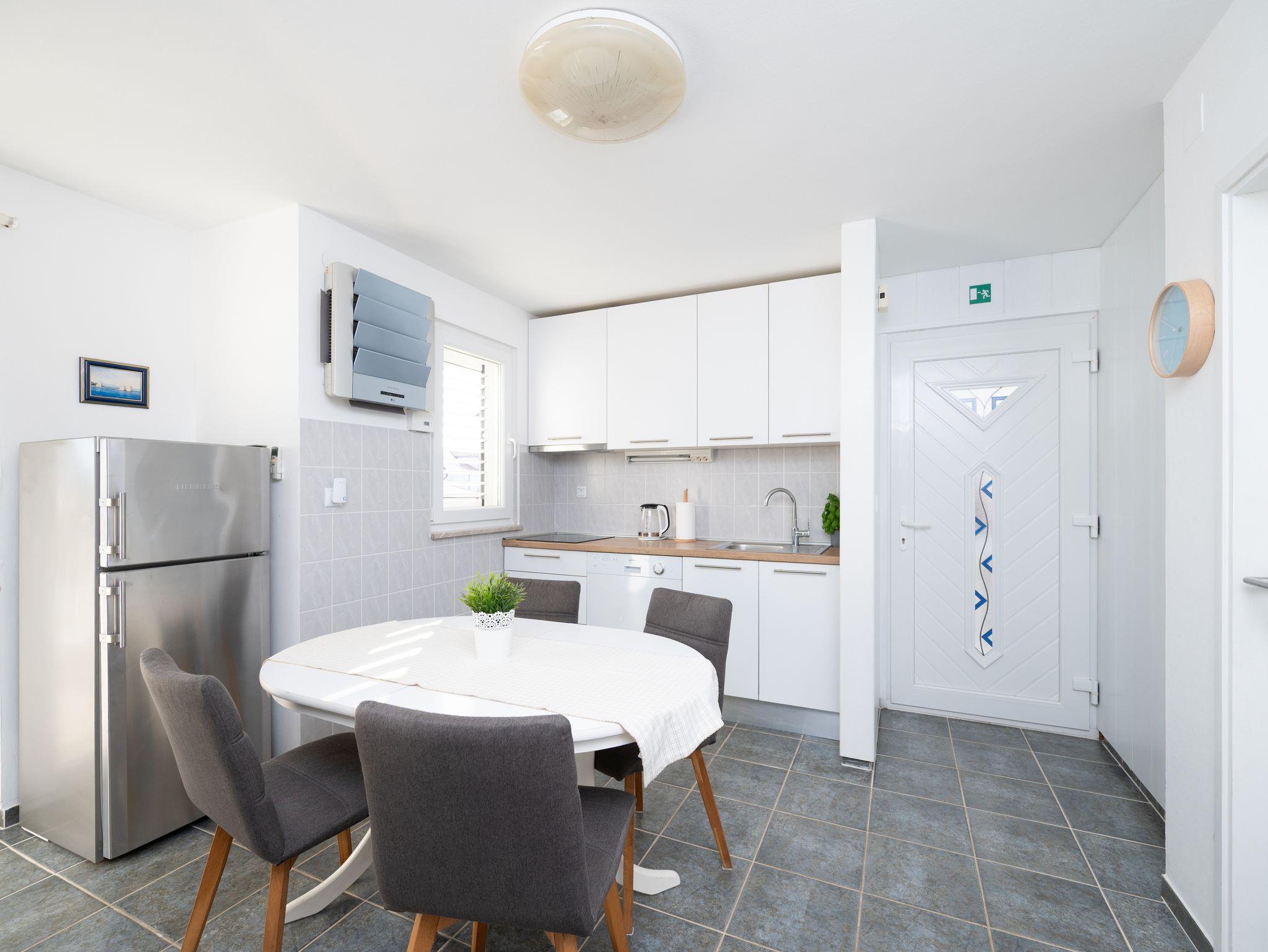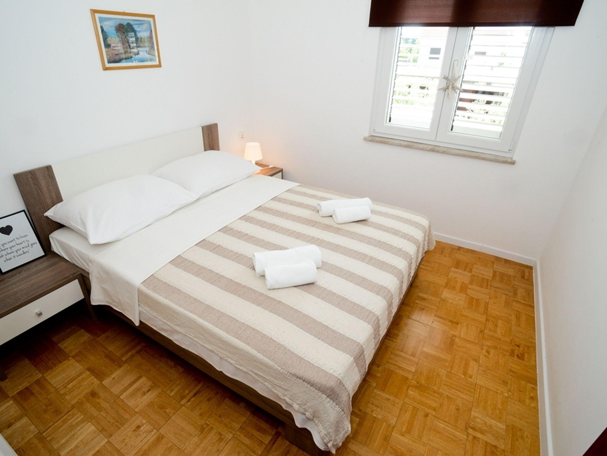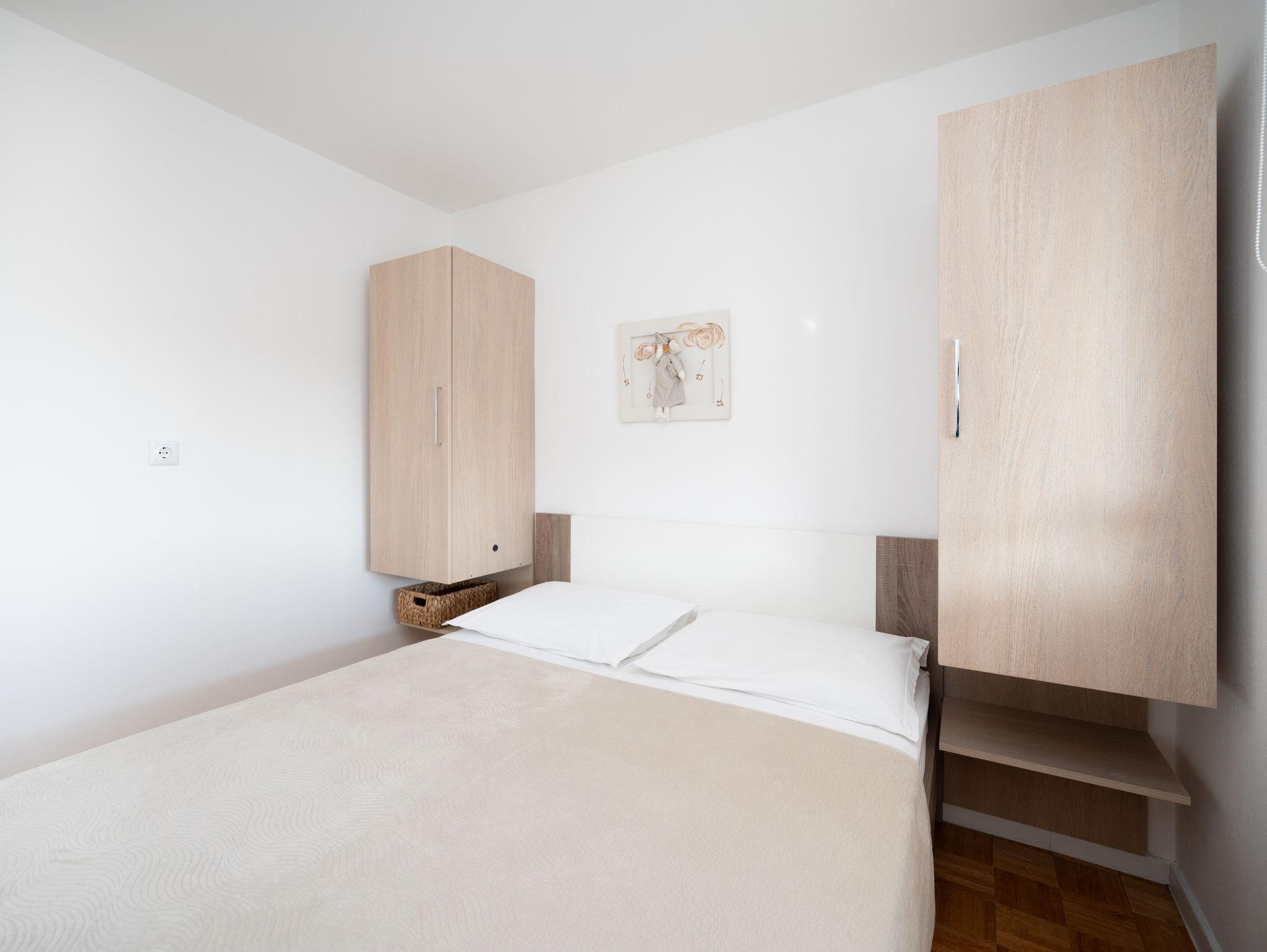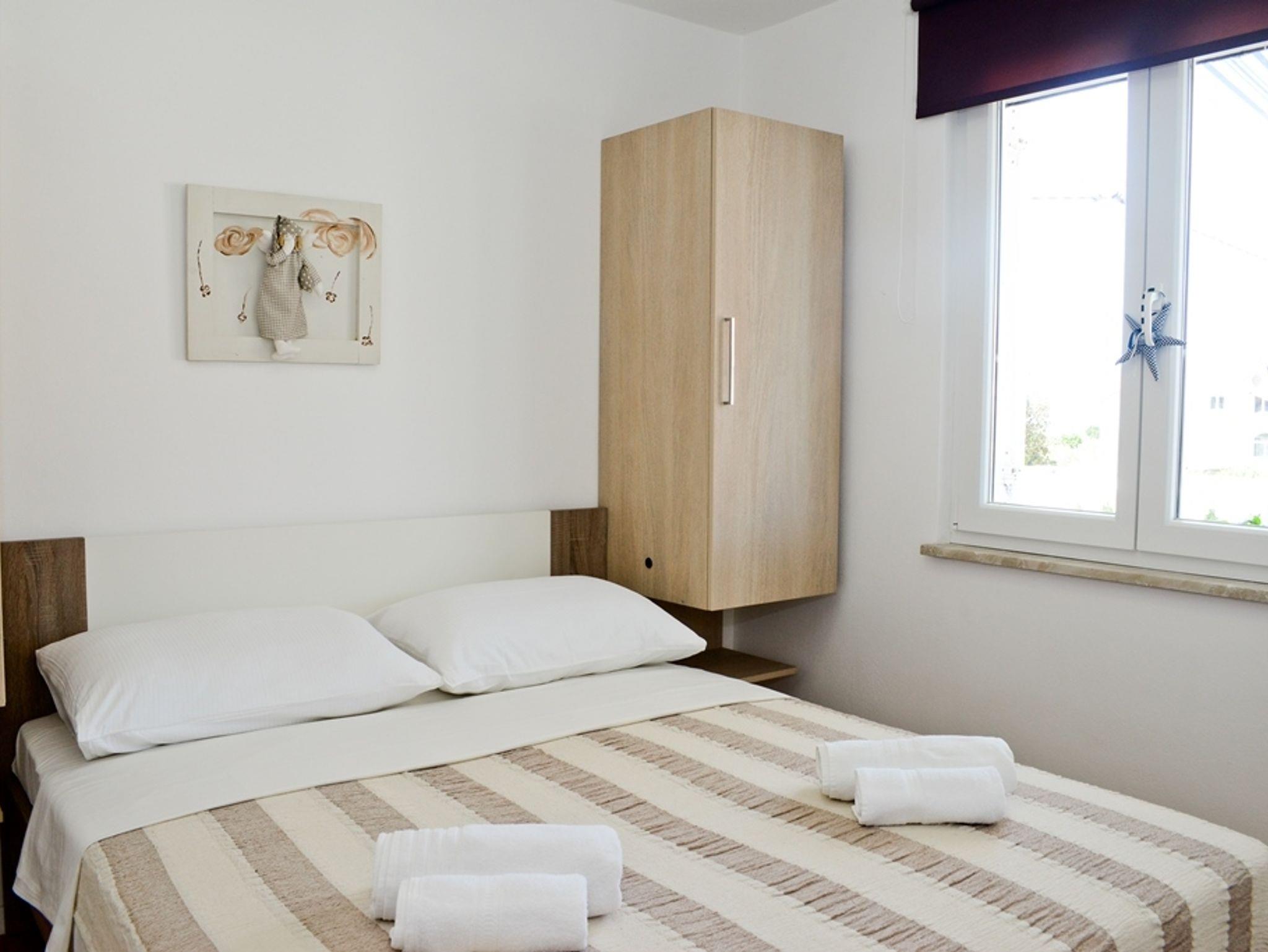 Ferienwohnung bietet Platz für 4 Gäste. Die Betten sind in Schlafzimmern, die es 2 gibt, innerhalb einer Gesamtfläche von 34m2, angeordnet. Die Gäste haben eine eigene Terrasse zur Verfügung, auf der sie in warmen Sommernächten genießen können. Das Apartment bietet Meerblick. Es ist erlaubt, Speisen auf dem Gemeinschafts-Grill vorzubereiten. In der Unterkunftseinheit besteht die Möglichkeit des Mitbringens von Haustieren gegen Aufpreis. IM PREIS INBEGRIFFEN: Kurtaxe, Endreinigung, Parkplatz, Internet, Föhn. VERBINDLICHE ZUSÄTZLICHE KOSTEN: Aufzahlung für Kurzaufenthalte (prozentualer Zuschlag pro Nächtigungsanzahl: 30% - 1, 20% - 2, 10% - 3). UNVERBINDLICHE ZUSÄTZLICHE KOSTEN: Klimatisierung (0,62 € pro Stunde), Boot (250,00 € pro Nacht), Haustiere (5,00 € pro Nacht). Die Verfügbarkeit zusätzlicher Dienstleistungen in Ihrem reservierten Termin und die Preise derselben (falls nicht aufgeführt) müssen im Voraus überprüft werden. Zusätzliche Dienstleistungen die in der Zahlungsaufforderung nicht aufgeführt sind werden direkt beim Vermieter bezahlt, angenommen der Gast nutzt auch diese.