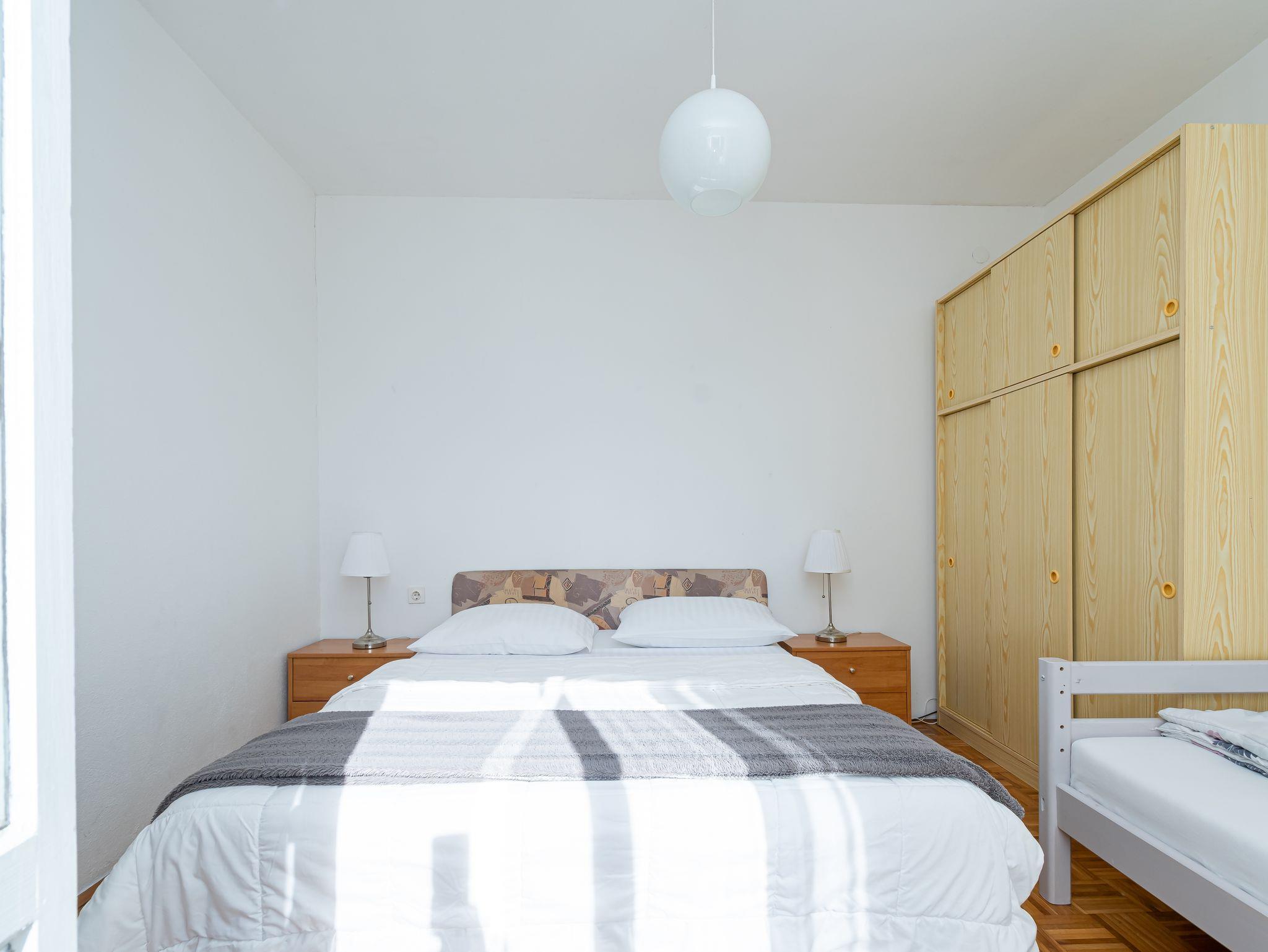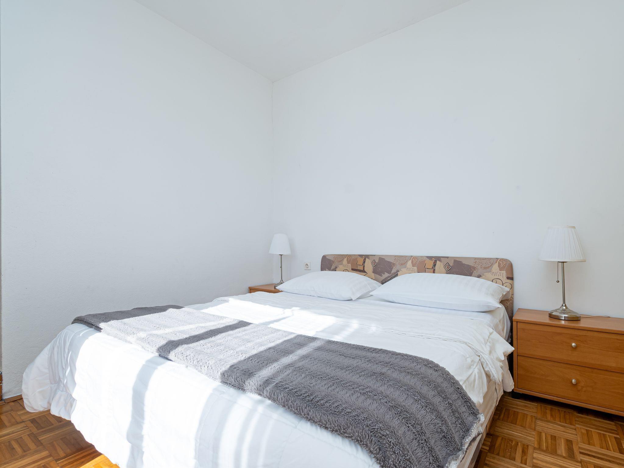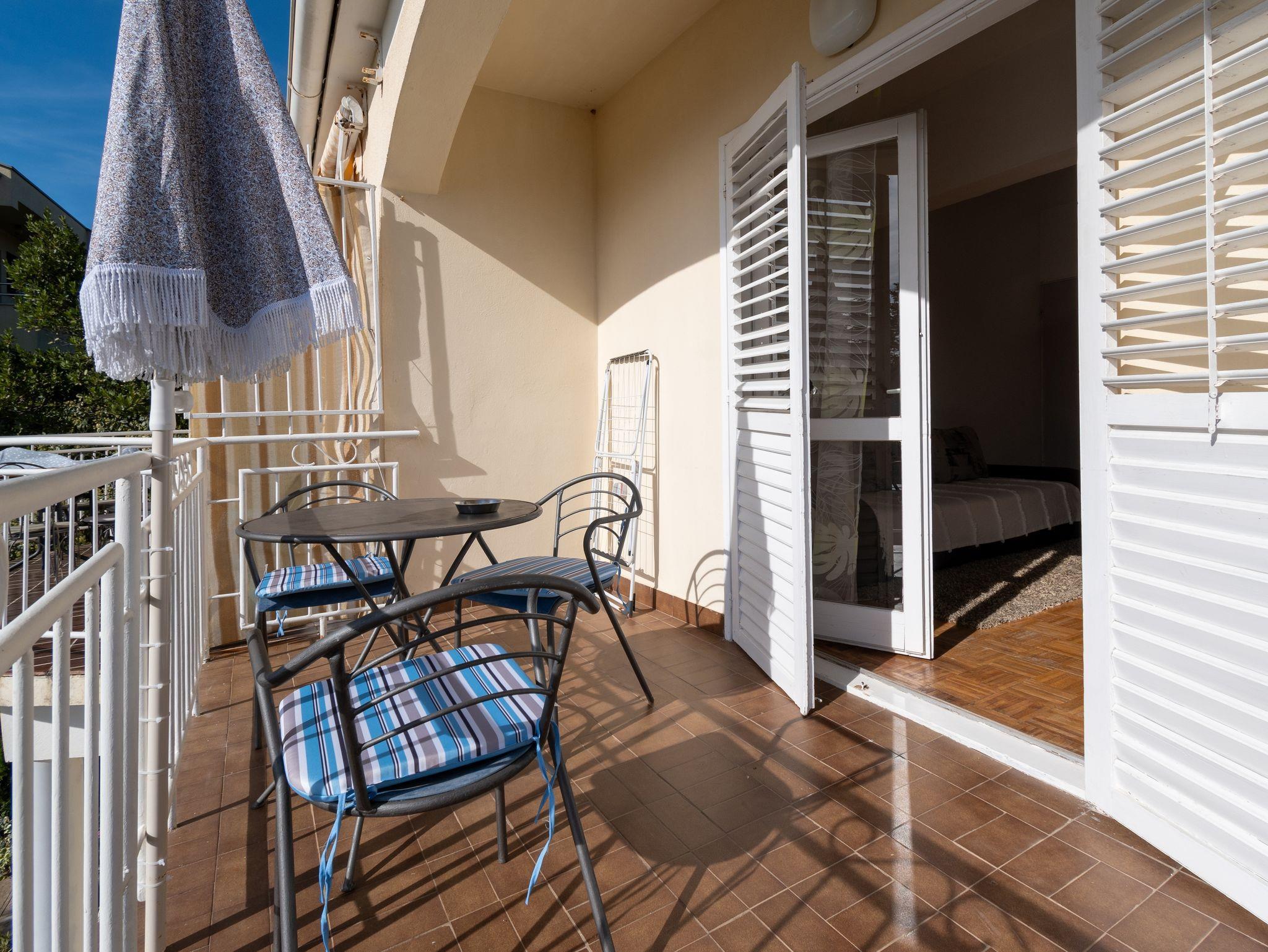 Ferienwohnung bietet Platz für 4 Gäste. Die Betten sind in Schlafzimmern, die es 1 gibt, und in Wohnzimmer, innerhalb einer Gesamtfläche von 46m2, angeordnet. Die Gäste haben eine eigene Terrasse zur Verfügung, auf der sie in warmen Sommernächten genießen können. Das Apartment bietet Meerblick. Es ist erlaubt, Speisen auf dem Gemeinschafts-Grill vorzubereiten. IM PREIS INBEGRIFFEN: Kurtaxe, Endreinigung, Klimatisierung, Parkplatz, Internet, Zusatzbett. VERBINDLICHE ZUSÄTZLICHE KOSTEN: Aufzahlung für Kurzaufenthalte (prozentualer Zuschlag pro Nächtigungsanzahl: 30% - 1, 20% - 2, 10% - 3). Die Verfügbarkeit zusätzlicher Dienstleistungen in Ihrem reservierten Termin und die Preise derselben (falls nicht aufgeführt) müssen im Voraus überprüft werden. Zusätzliche Dienstleistungen die in der Zahlungsaufforderung nicht aufgeführt sind werden direkt beim Vermieter bezahlt, angenommen der Gast nutzt auch diese.