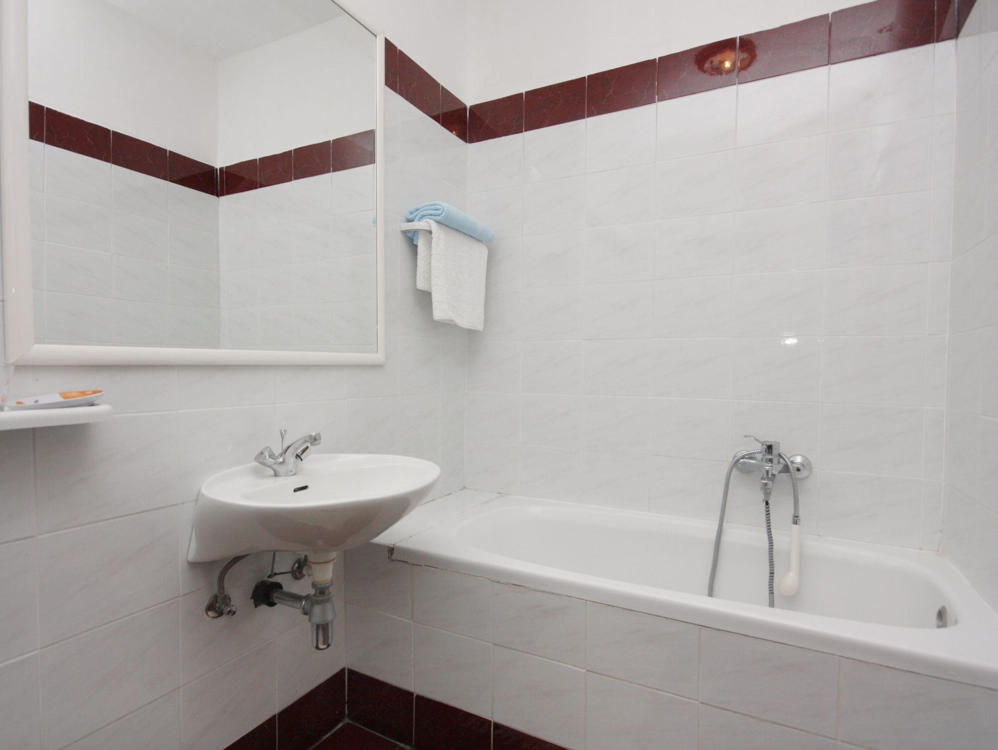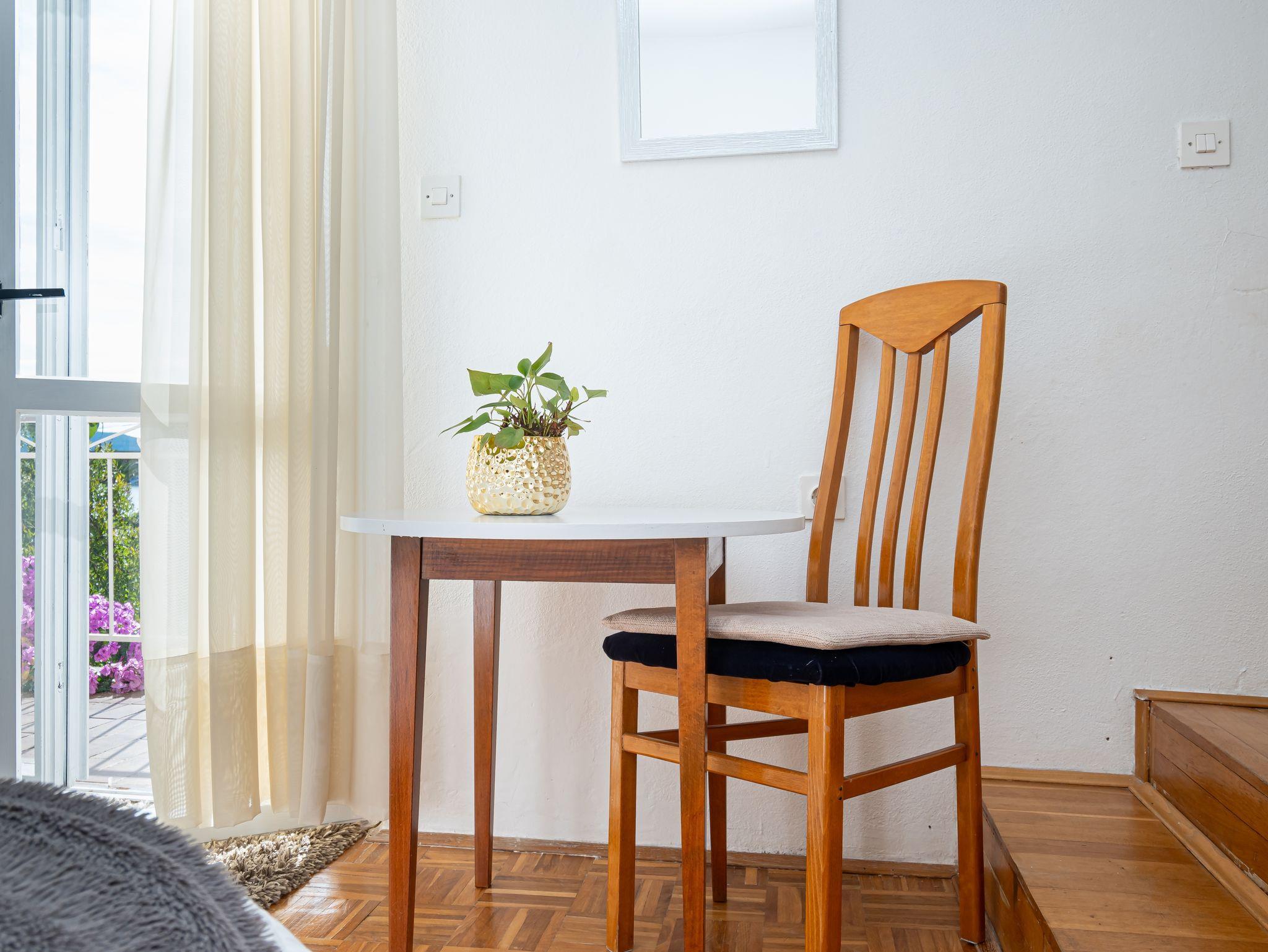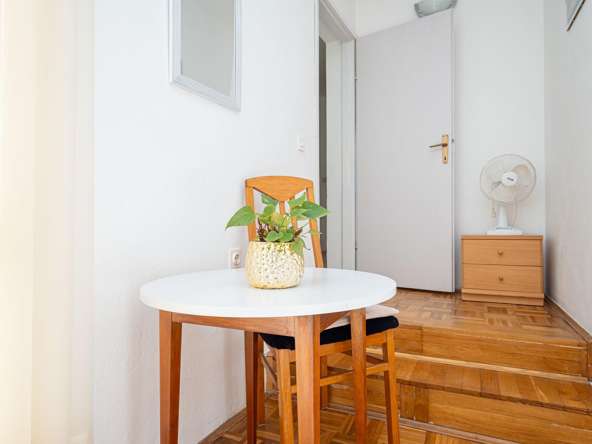 Ferienwohnung bietet Platz für 4 Gäste. Die Betten sind in Schlafzimmern, die es 1 gibt, und in Wohnzimmer, innerhalb einer Gesamtfläche von 46m2, angeordnet. Die Gäste haben eine eigene Terrasse zur Verfügung, auf der sie in warmen Sommernächten genießen können. Das Apartment bietet Meerblick. Es ist erlaubt, Speisen auf dem Gemeinschafts-Grill vorzubereiten. IM PREIS INBEGRIFFEN: Kurtaxe, Endreinigung, Klimatisierung, Parkplatz, Internet, Zusatzbett. VERBINDLICHE ZUSÄTZLICHE KOSTEN: Aufzahlung für Kurzaufenthalte (prozentualer Zuschlag pro Nächtigungsanzahl: 30% - 1, 20% - 2, 10% - 3). Die Verfügbarkeit zusätzlicher Dienstleistungen in Ihrem reservierten Termin und die Preise derselben (falls nicht aufgeführt) müssen im Voraus überprüft werden. Zusätzliche Dienstleistungen die in der Zahlungsaufforderung nicht aufgeführt sind werden direkt beim Vermieter bezahlt, angenommen der Gast nutzt auch diese.