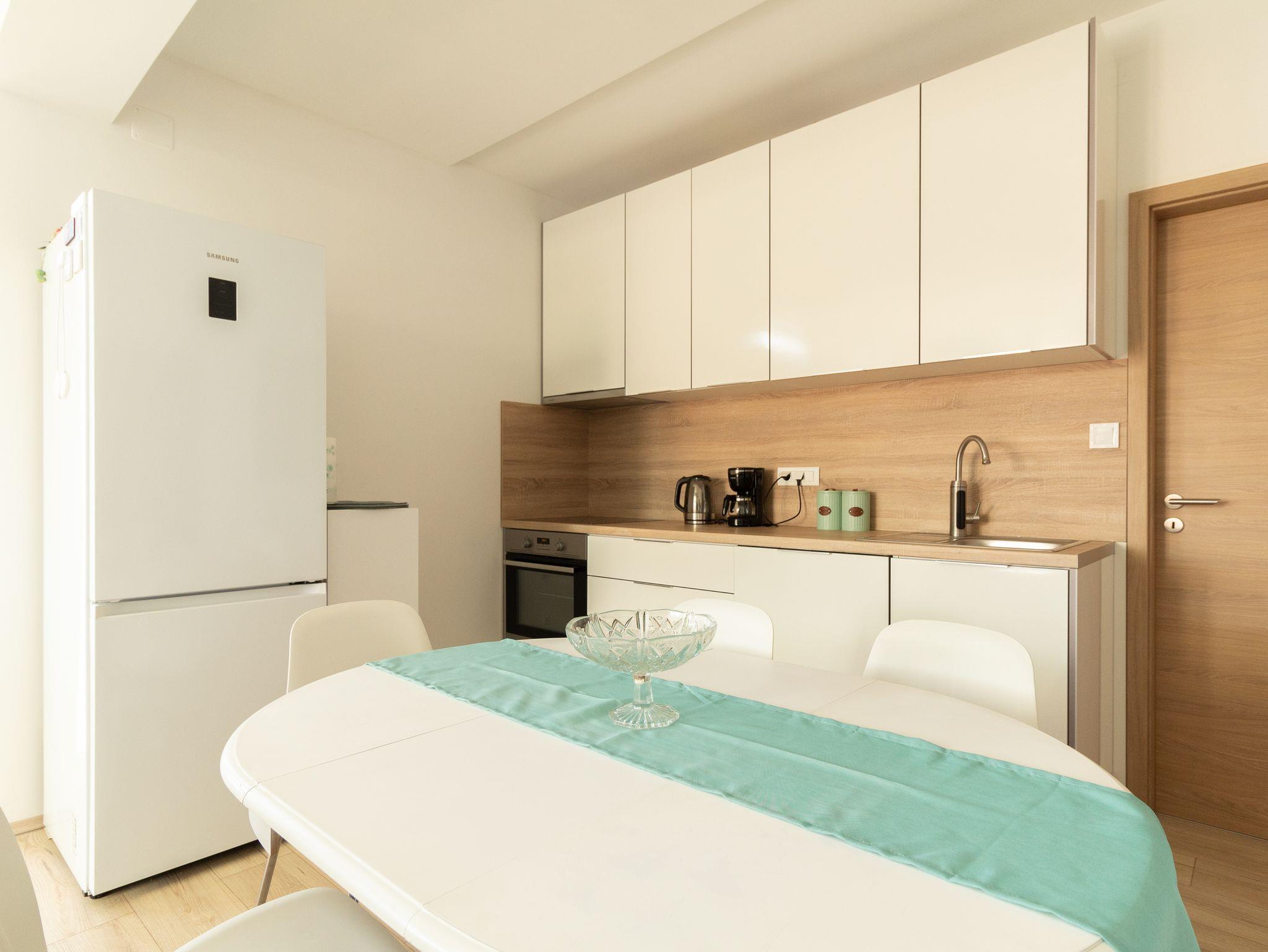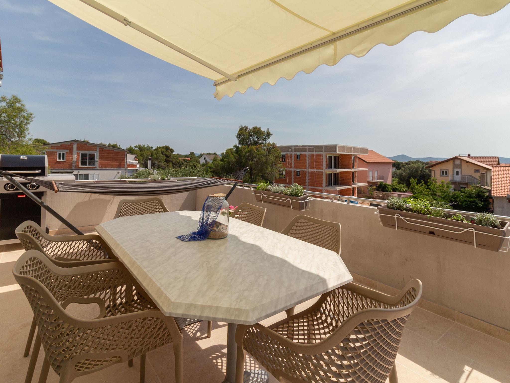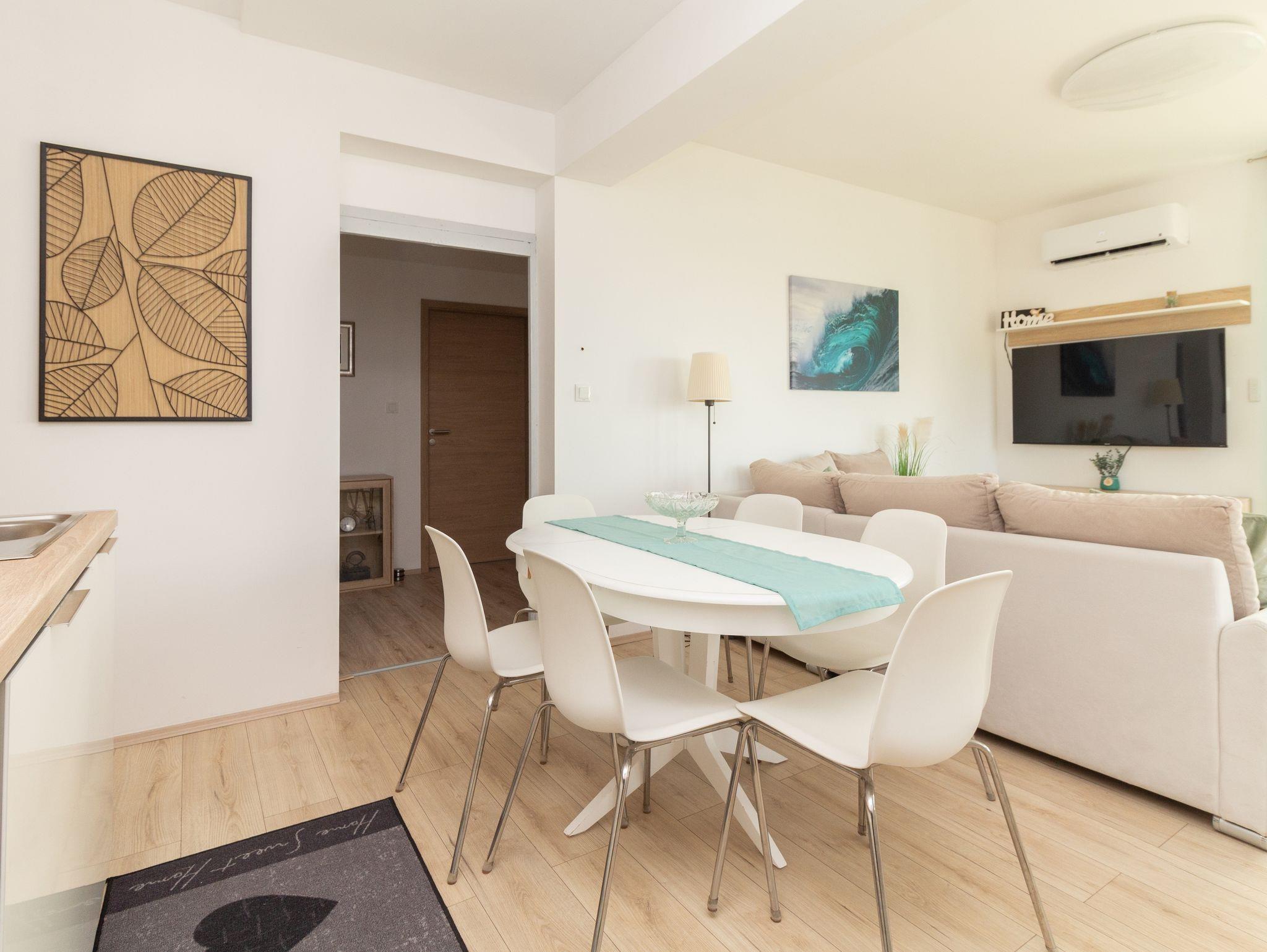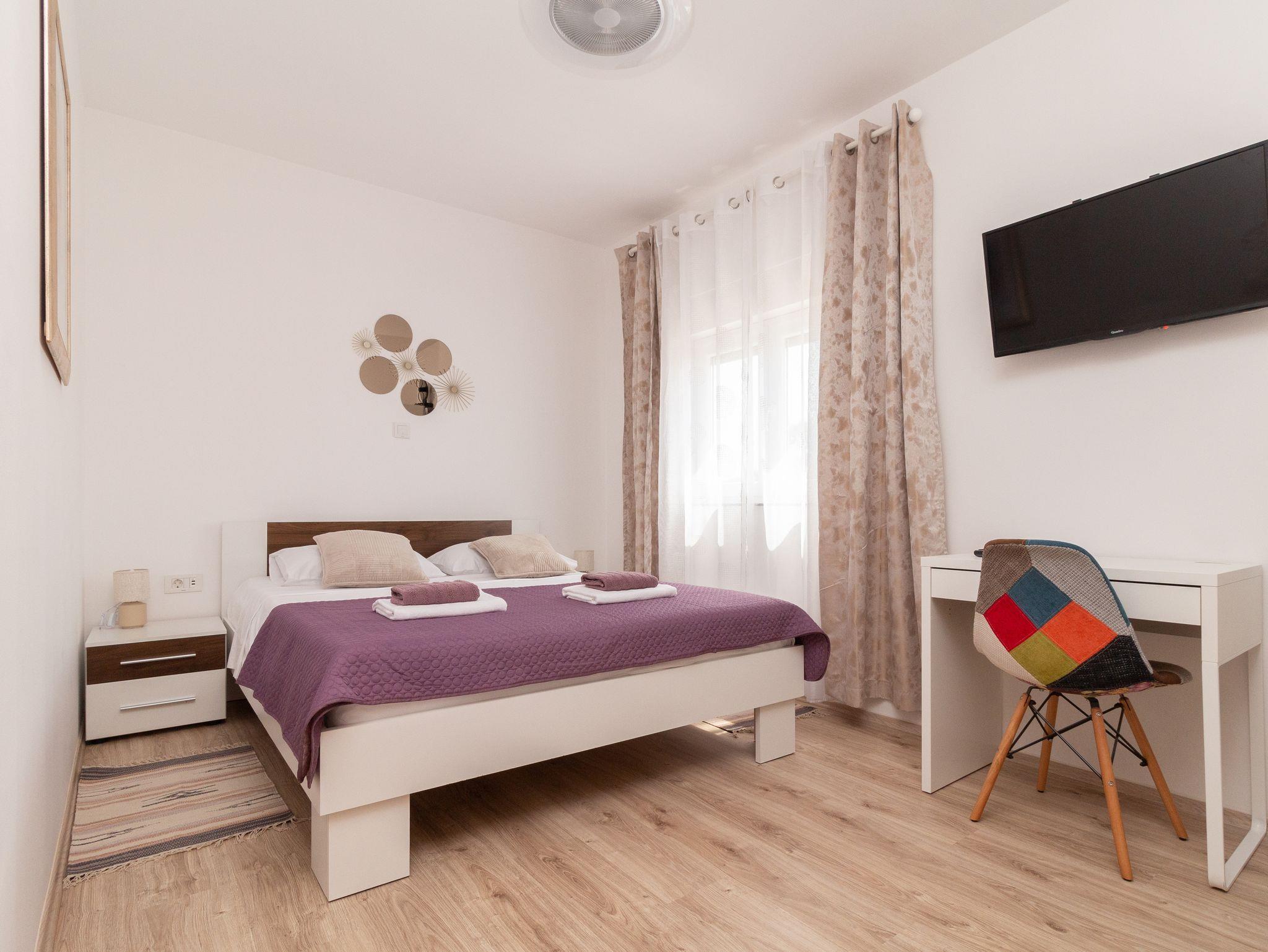 Ferienwohnung bietet Platz für 4 Gäste. Die Betten sind in Schlafzimmern, die es 2 gibt, innerhalb einer Gesamtfläche von 66m2, angeordnet. Die Gäste haben eine eigene Terrasse zur Verfügung, auf der sie in warmen Sommernächten genießen können. Das Apartment bietet Meerblick. Für vollen Genuss und Entspannung gibt es einen privaten Grill für Gäste dieser Unterkunft. IM PREIS INBEGRIFFEN: Kurtaxe, Endreinigung, Klimatisierung, Parkplatz, Internet, Kinderbett, Bügeleisen, Bügelbrett, Föhn. Die Verfügbarkeit zusätzlicher Dienstleistungen in Ihrem reservierten Termin und die Preise derselben (falls nicht aufgeführt) müssen im Voraus überprüft werden. Zusätzliche Dienstleistungen die in der Zahlungsaufforderung nicht aufgeführt sind werden direkt beim Vermieter bezahlt, angenommen der Gast nutzt auch diese. Ermäßigung auf den Grundpreis: Gratistag 14=13 (bei einem Aufenthalt von 14 Tagen oder mehr erhalten Sie einen Gratistag für den Aufenthalt bis 31.12.26).