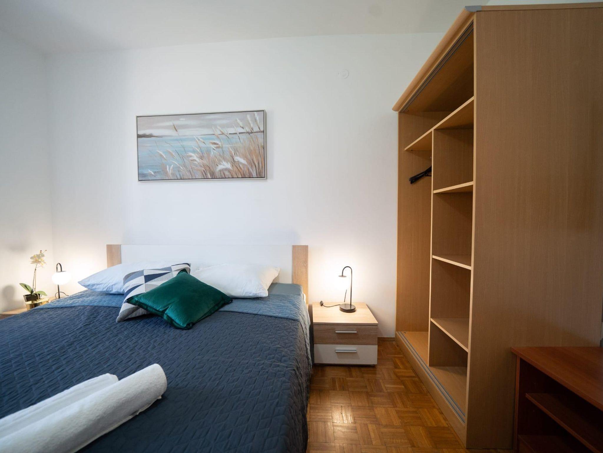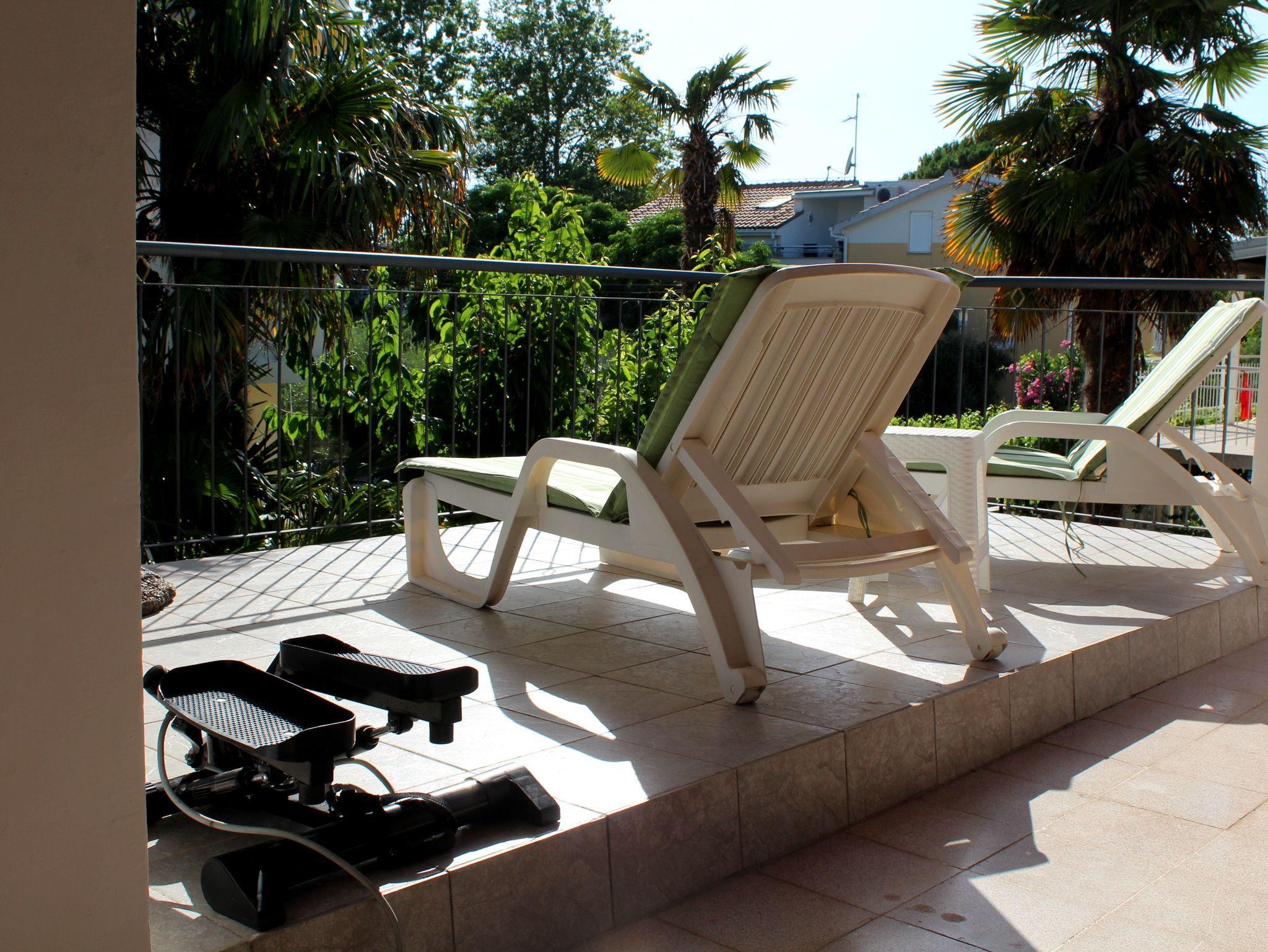 Ferienwohnung bietet Platz für 12 Gäste. Die Betten sind in Schlafzimmern, die es 5 gibt, und in Wohnzimmer, innerhalb einer Gesamtfläche von 114m2, angeordnet. Die Gäste haben eine eigene Terrasse zur Verfügung, auf der sie in warmen Sommernächten genießen können. Es ist erlaubt, Speisen auf dem Gemeinschafts-Grill vorzubereiten. IM PREIS INBEGRIFFEN: Kurtaxe, Endreinigung, Klimatisierung, Parkplatz, Internet, Bügeleisen, Bügelbrett, Föhn, tragbarer Grill, Sonnenschirm. VERBINDLICHE ZUSÄTZLICHE KOSTEN: Aufzahlung für Kurzaufenthalte (prozentualer Zuschlag pro Nächtigungsanzahl: 30% - 1, 20% - 2, 10% - 3). Die Verfügbarkeit zusätzlicher Dienstleistungen in Ihrem reservierten Termin und die Preise derselben (falls nicht aufgeführt) müssen im Voraus überprüft werden. Zusätzliche Dienstleistungen die in der Zahlungsaufforderung nicht aufgeführt sind werden direkt beim Vermieter bezahlt, angenommen der Gast nutzt auch diese.