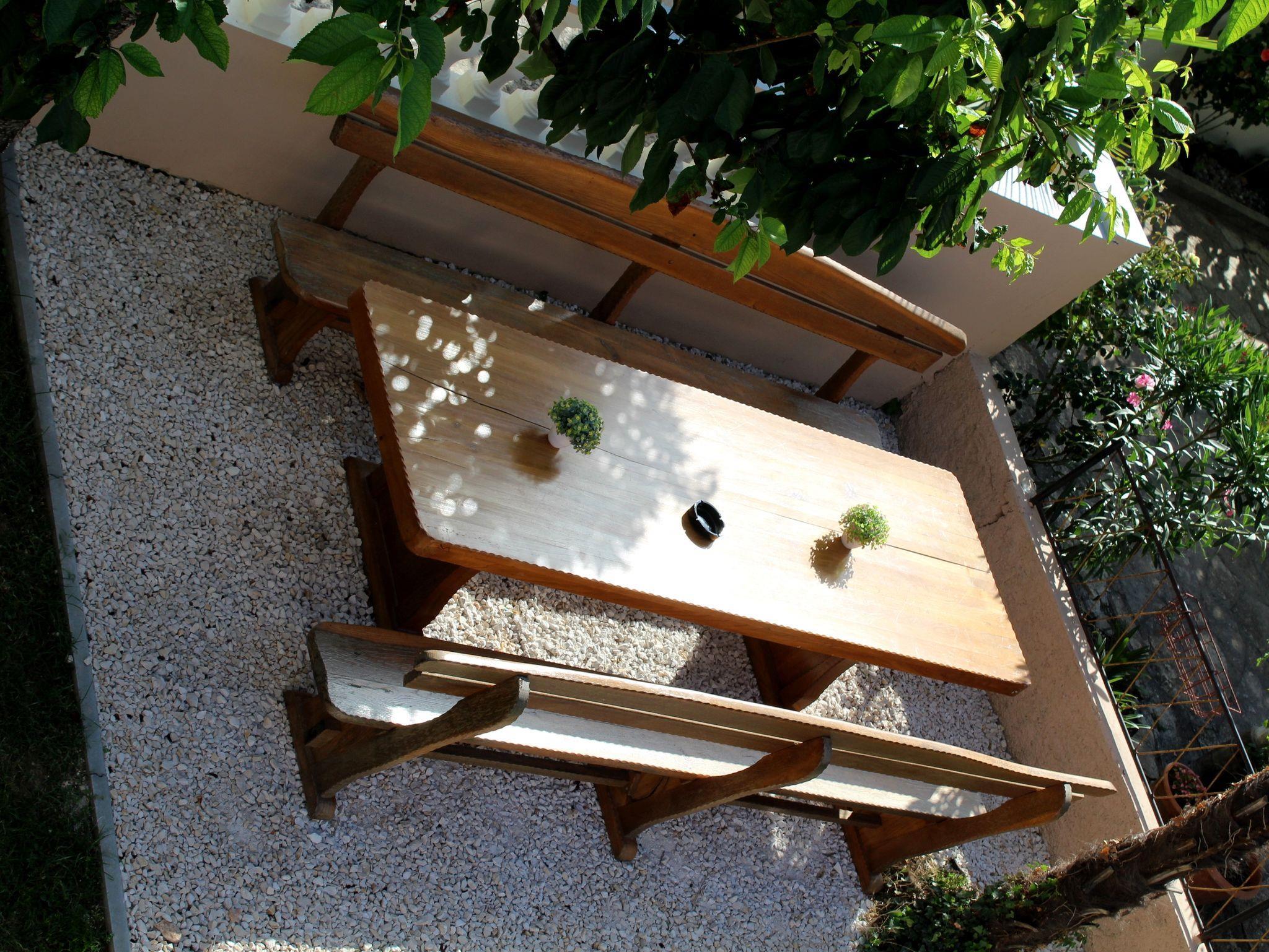 Hof (150m2, Sitzbereich), Parkplatz (Anzahl der Parkplätze: 5, Entfernung vom Objekt: im Hof), WiFi Internet, Föhn, Bügeleisen, Bügelbrett, Tragbarer Grill, Sonnenschirm