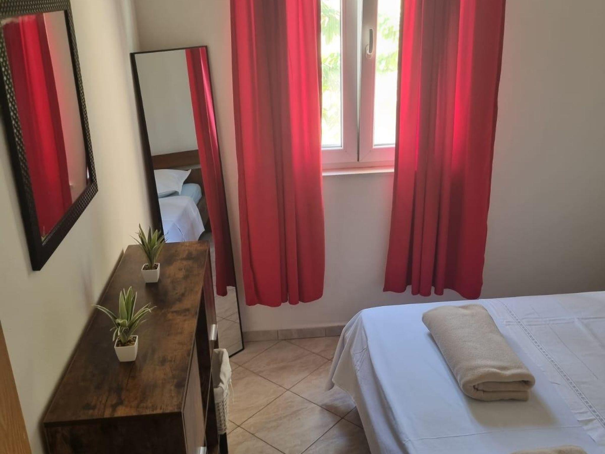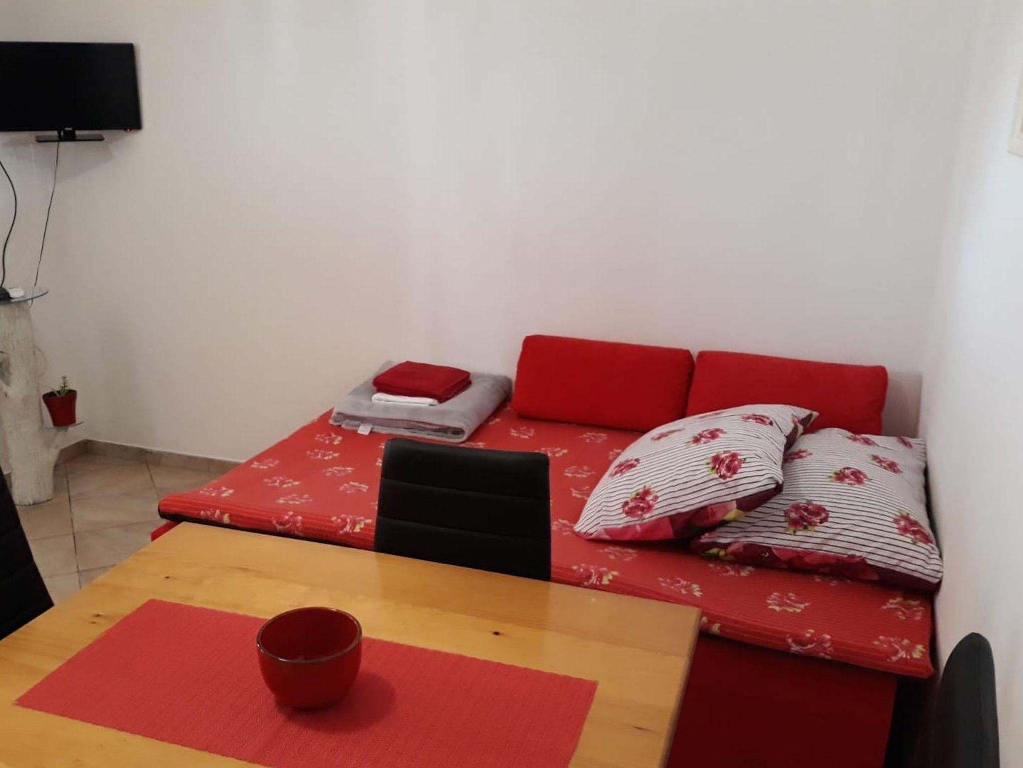 Ferienwohnung bietet Platz für 4 Gäste. Die Betten sind in Schlafzimmern, die es 1 gibt, und in Wohnzimmer, innerhalb einer Gesamtfläche von 33m2, angeordnet. Die Gäste haben eine eigene Terrasse zur Verfügung, auf der sie in warmen Sommernächten genießen können. Das Apartment bietet Meerblick. Es ist erlaubt, Speisen auf dem Gemeinschafts-Grill vorzubereiten. In der Unterkunftseinheit besteht die Möglichkeit des Mitbringens von Haustieren gegen Aufpreis. IM PREIS INBEGRIFFEN: Kurtaxe, Endreinigung, Klimatisierung, Parkplatz, Internet, Wäschewaschen. VERBINDLICHE ZUSÄTZLICHE KOSTEN: Aufzahlung für Kurzaufenthalte (prozentualer Zuschlag pro Nächtigungsanzahl: 30% - 1, 20% - 2, 10% - 3). UNVERBINDLICHE ZUSÄTZLICHE KOSTEN: Haustiere (5,00 € pro Nacht). Die Verfügbarkeit zusätzlicher Dienstleistungen in Ihrem reservierten Termin und die Preise derselben (falls nicht aufgeführt) müssen im Voraus überprüft werden. Zusätzliche Dienstleistungen die in der Zahlungsaufforderung nicht aufgeführt sind werden direkt beim Vermieter bezahlt, angenommen der Gast nutzt auch diese. Ermäßigung auf den Grundpreis: Gratistag 14=13 (bei einem Aufenthalt von 14 Tagen oder mehr erhalten Sie einen Gratistag für den Aufenthalt bis 31.12.26).