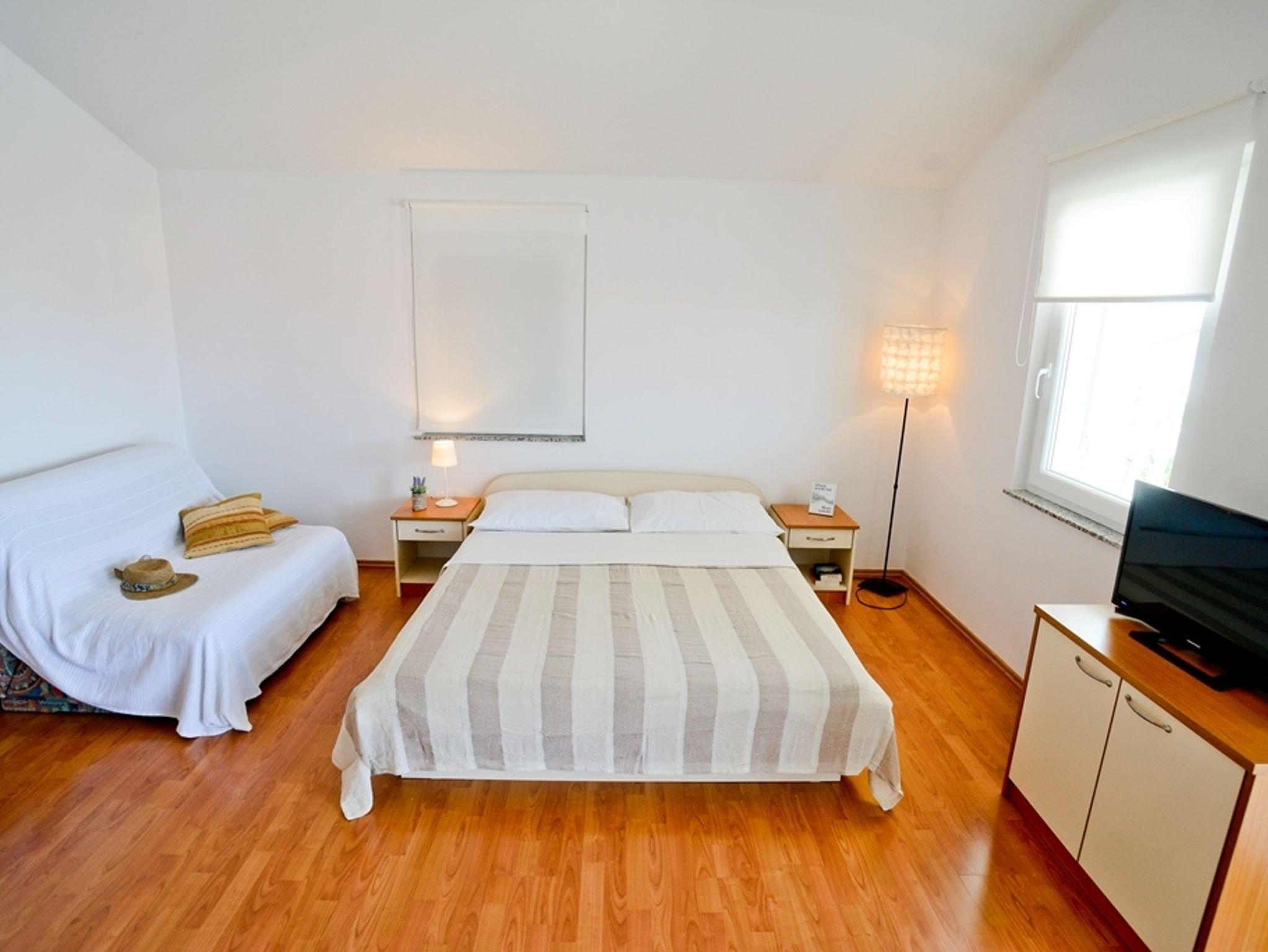 Studio bietet Platz für 2 Gäste. Die Betten sind in Schlafzimmern, die es 1 gibt, innerhalb einer Gesamtfläche von 28m2, angeordnet. Die Gäste haben eine eigene Terrasse zur Verfügung, auf der sie in warmen Sommernächten genießen können. Das Studio-Apartment bietet Meerblick. Es ist erlaubt, Speisen auf dem Gemeinschafts-Grill vorzubereiten. In der Unterkunftseinheit besteht die Möglichkeit des Mitbringens von Haustieren gegen Aufpreis. IM PREIS INBEGRIFFEN: Kurtaxe, Endreinigung, Parkplatz, Internet, Föhn. VERBINDLICHE ZUSÄTZLICHE KOSTEN: Aufzahlung für Kurzaufenthalte (prozentualer Zuschlag pro Nächtigungsanzahl: 30% - 1, 20% - 2, 10% - 3). UNVERBINDLICHE ZUSÄTZLICHE KOSTEN: Klimatisierung (0,62 € pro Stunde), Boot (250,00 € pro Nacht), Haustiere (5,00 € pro Nacht). Die Verfügbarkeit zusätzlicher Dienstleistungen in Ihrem reservierten Termin und die Preise derselben (falls nicht aufgeführt) müssen im Voraus überprüft werden. Zusätzliche Dienstleistungen die in der Zahlungsaufforderung nicht aufgeführt sind werden direkt beim Vermieter bezahlt, angenommen der Gast nutzt auch diese.