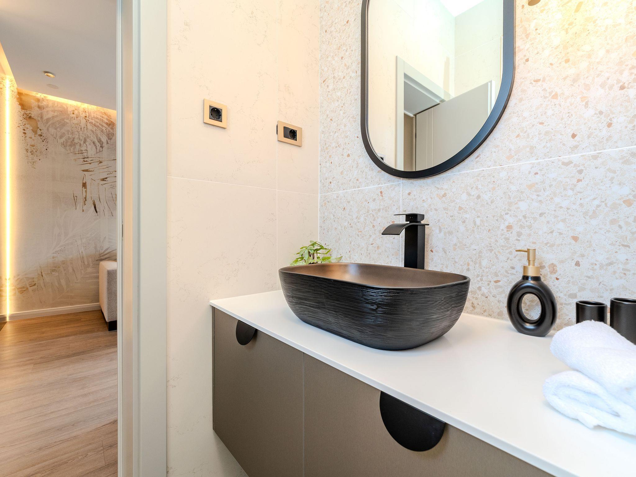 Ferienwohnung bietet Platz für 2 Gäste. Die Betten sind in Schlafzimmern, die es 1 gibt, innerhalb einer Gesamtfläche von 41m2, angeordnet. Die Gäste haben einen eigenen Balkon zur Verfügung, auf der sie in warmen Sommernächten genießen können. Das Apartment bietet Meerblick. Es ist erlaubt, Speisen auf dem Gemeinschafts-Grill vorzubereiten. IM PREIS INBEGRIFFEN: Kurtaxe, Endreinigung, Klimatisierung, Parkplatz, Internet, Kinderbett, Bügeleisen, Bügelbrett, Föhn, 2 Kinderbettchen (im Preis enthalten). UNVERBINDLICHE ZUSÄTZLICHE KOSTEN: Wäschewaschen (7,00 € Waschen). Die Verfügbarkeit zusätzlicher Dienstleistungen in Ihrem reservierten Termin und die Preise derselben (falls nicht aufgeführt) müssen im Voraus überprüft werden. Zusätzliche Dienstleistungen die in der Zahlungsaufforderung nicht aufgeführt sind werden direkt beim Vermieter bezahlt, angenommen der Gast nutzt auch diese.