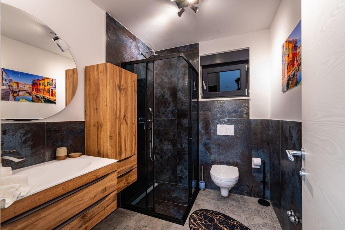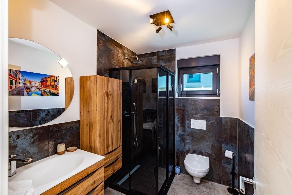 Designer Bad mit Austattung von Villeroy & Boch mit Regen-Dusche und WC.