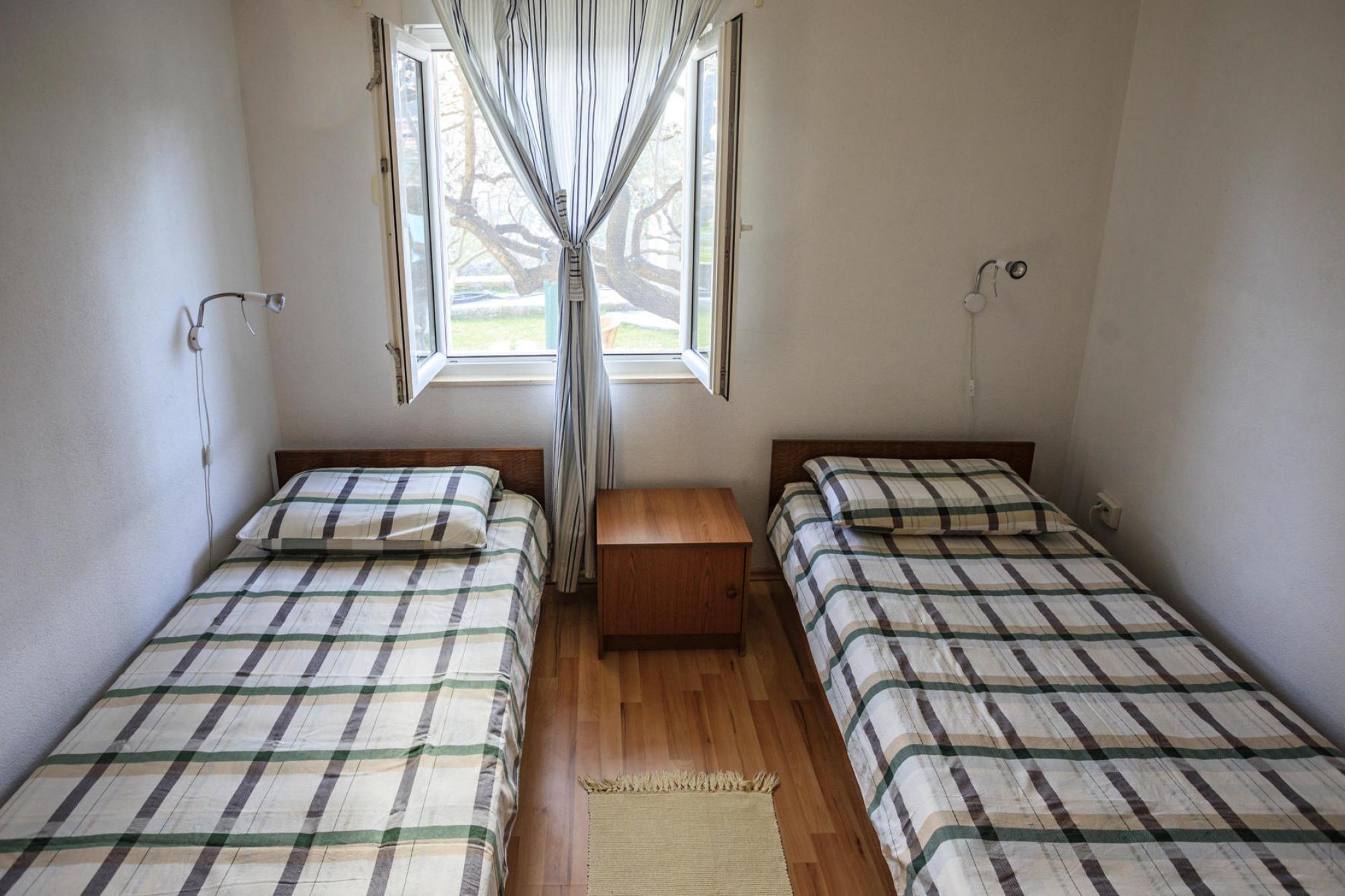 Dette feriehus, bygget i 2010, ligger kun få minutters gang fra stranden og har en vidunderlig fredelig beliggenhed. På terrassen kan du slappe af og nyde duften af blomster, urter og fyrretræernes skygge. Omkring havnen i den lille landsby Sumartin finder du gode restauranter og taverner, hvor du kan prøve friskfanget fisk og andre regionale specialiteter. Den gamle St. Martin kirke, bygget i førromansk stil, klostermuseet og den smukke, rummelige park har også deres charme. Brac er også en af de få kroatiske destinationer med en sandstrand. Detaljer ingär: Forbrugsbaserede energiomkostninger, sengelinned, håndklæder, slutrengøring, WiFi, registreringsgebyr, Turistskat. Aktiviteter i nærheden: Der er smukke dykker- og fiskepladser i området. Ikke egnet til personer med nedsat mobilitet.