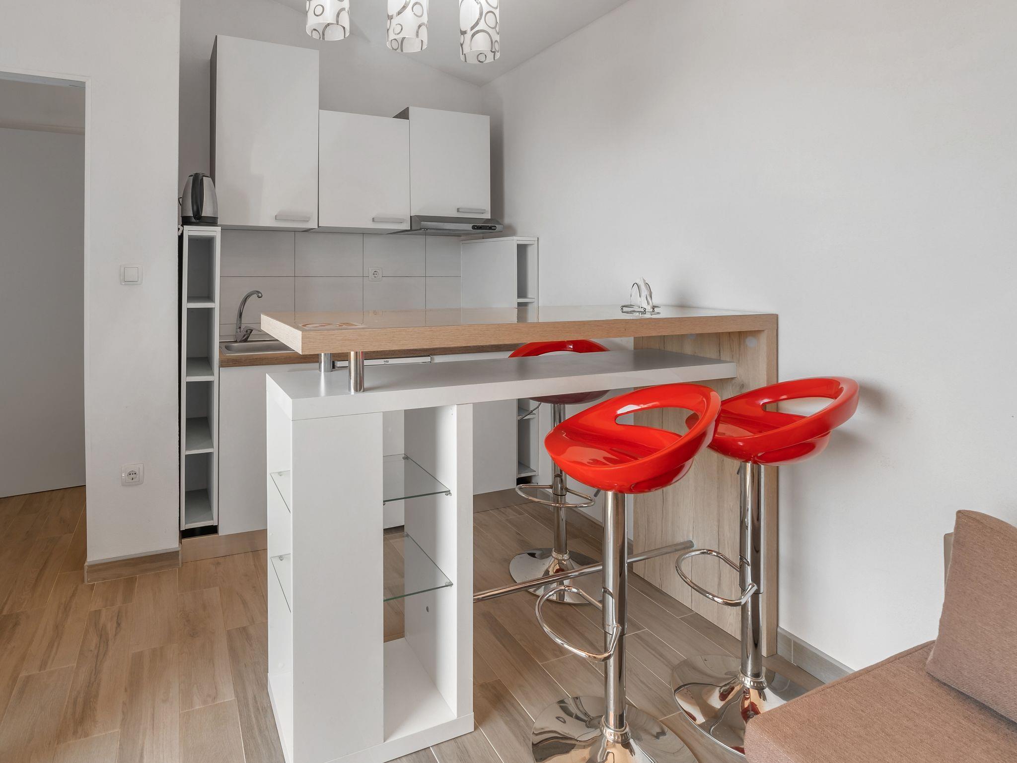 Ferienwohnung bietet Platz für 3 Gäste. Die Betten sind in Schlafzimmern, die es 1 gibt, und in Wohnzimmer, innerhalb einer Gesamtfläche von 22m2, angeordnet. Die Gäste haben einen eigenen Balkon zur Verfügung, auf der sie in warmen Sommernächten genießen können. Das Apartment bietet Meerblick. In der Unterkunftseinheit besteht die Möglichkeit des Mitbringens von Haustieren gegen Aufpreis. IM PREIS INBEGRIFFEN: Kurtaxe, Endreinigung, Klimatisierung, Parkplatz, Internet, Kinderbett, Bügeleisen, Bügelbrett, Föhn. VERBINDLICHE ZUSÄTZLICHE KOSTEN: Aufzahlung für Kurzaufenthalte (prozentualer Zuschlag pro Nächtigungsanzahl: 30% - 1, 20% - 2, 10% - 3). UNVERBINDLICHE ZUSÄTZLICHE KOSTEN: Haustiere (5,00 € pro Nacht). Die Verfügbarkeit zusätzlicher Dienstleistungen in Ihrem reservierten Termin und die Preise derselben (falls nicht aufgeführt) müssen im Voraus überprüft werden. Zusätzliche Dienstleistungen die in der Zahlungsaufforderung nicht aufgeführt sind werden direkt beim Vermieter bezahlt, angenommen der Gast nutzt auch diese. Ermäßigung auf den Grundpreis: Gratistag 14=13 (bei einem Aufenthalt von 14 Tagen oder mehr erhalten Sie einen Gratistag für den Aufenthalt bis 31.12.26).