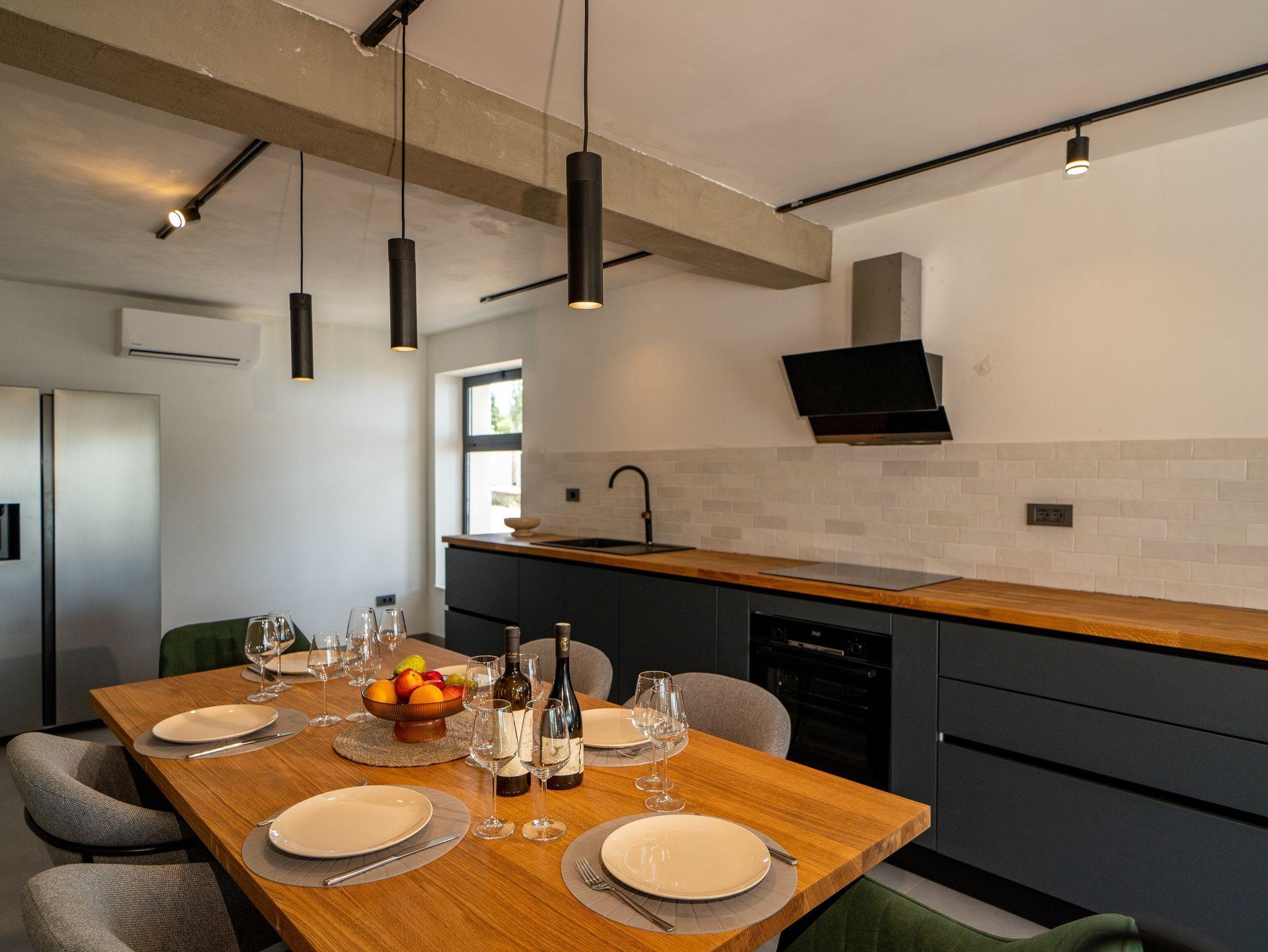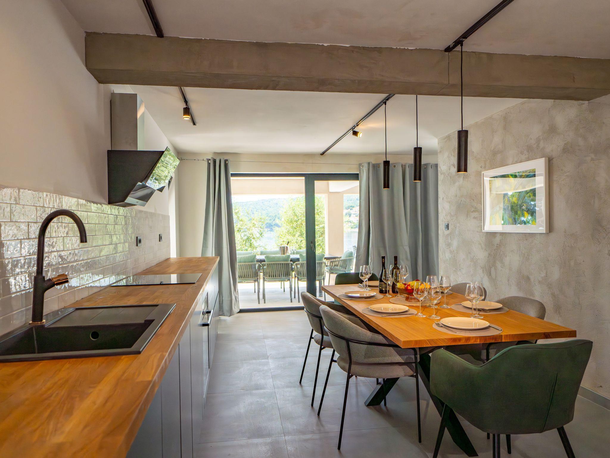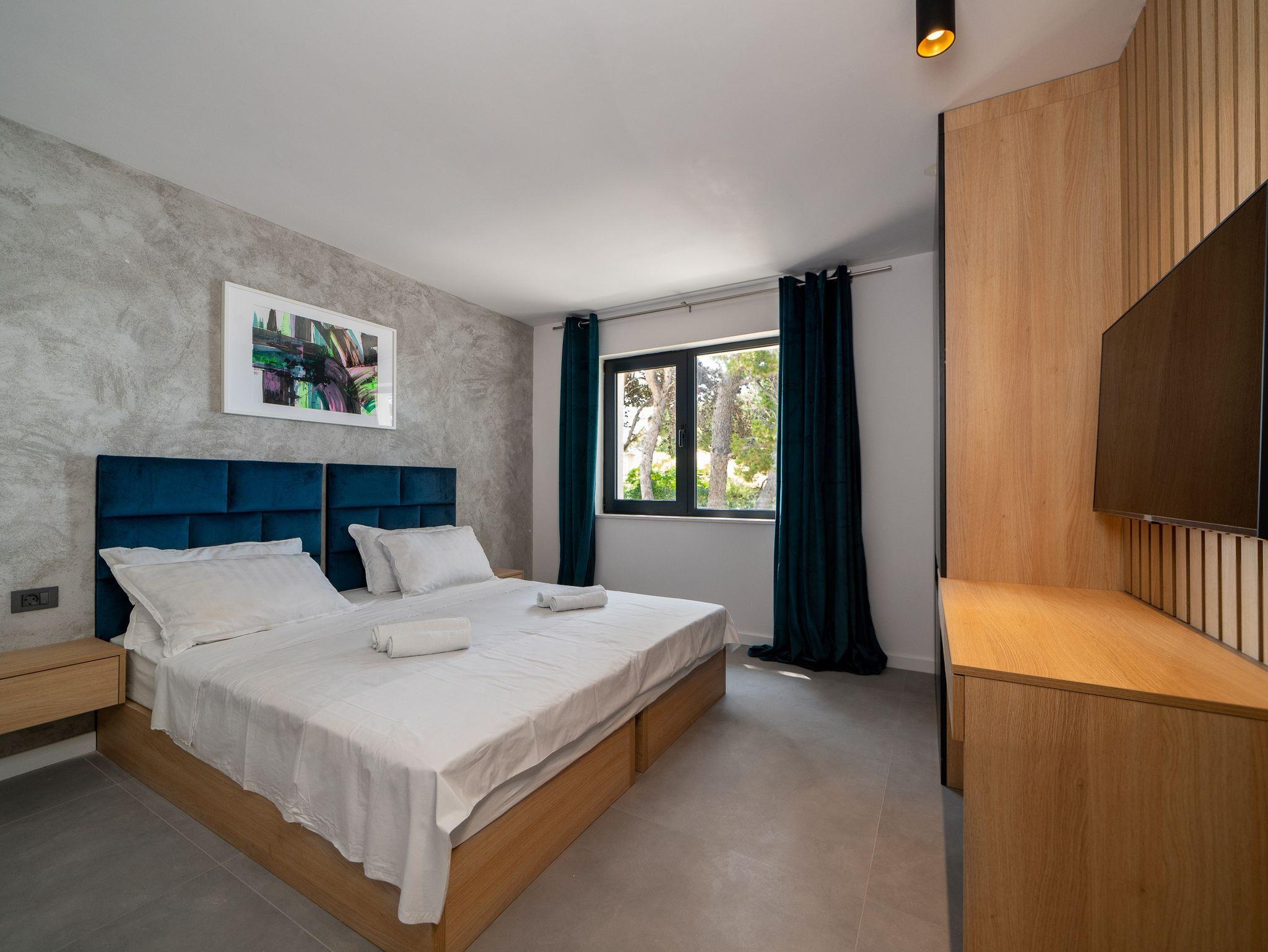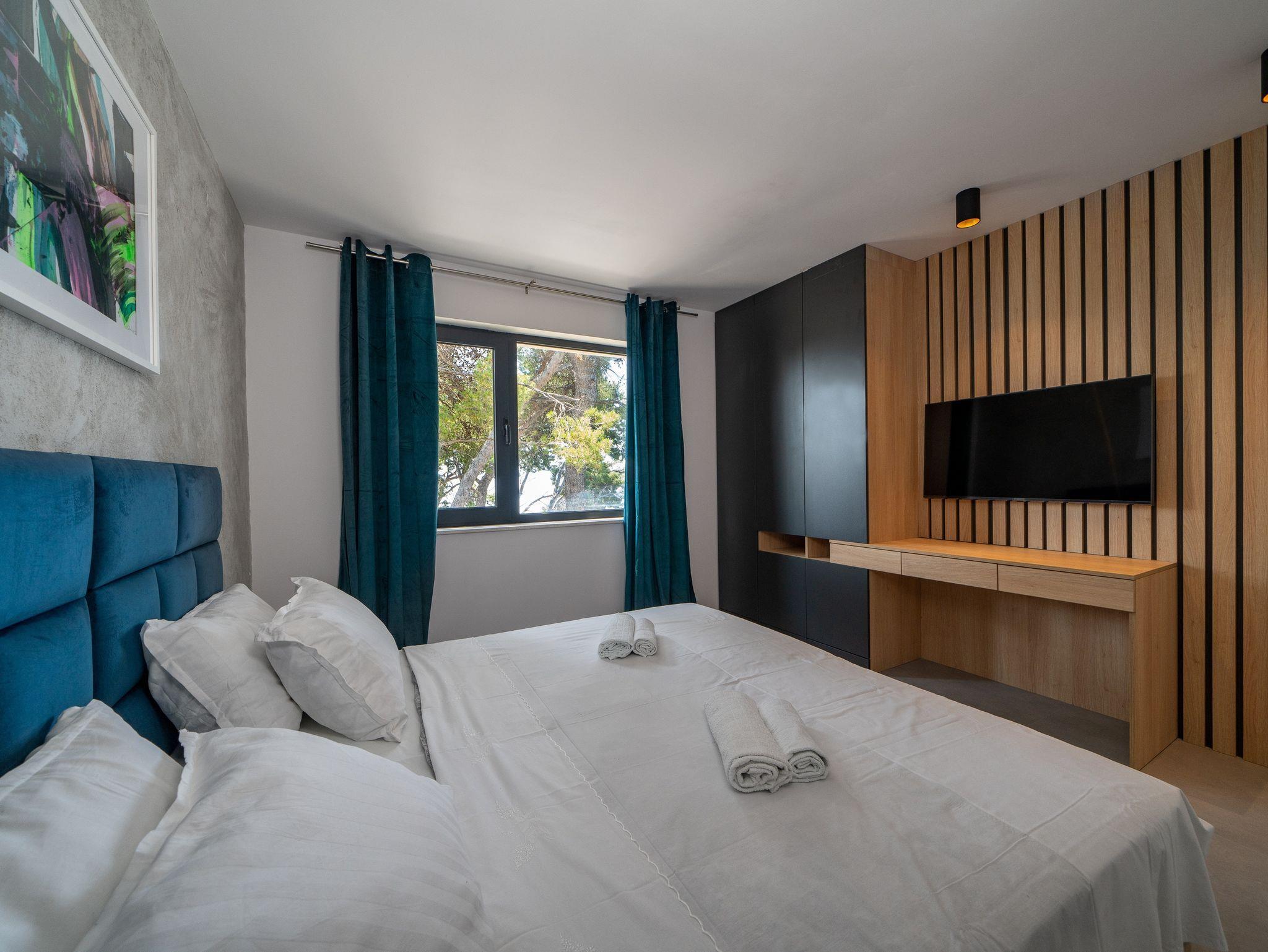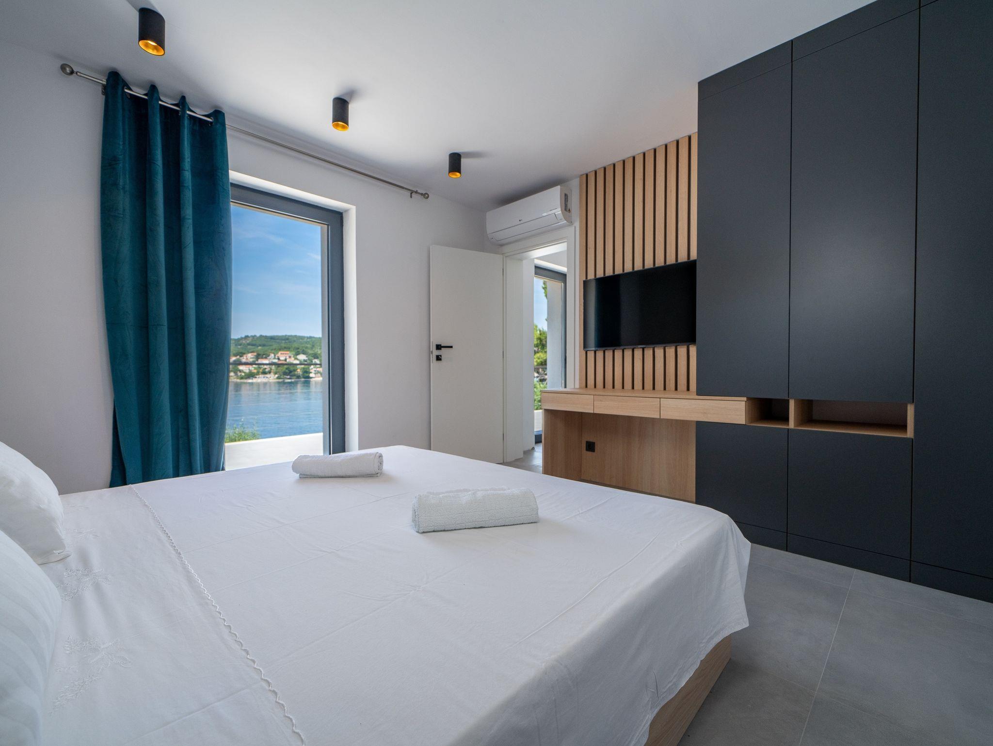 Haus bietet Platz für 8 Gäste. Die Betten sind in Schlafzimmern, die es 3 gibt, und in Wohnzimmer, innerhalb einer Gesamtfläche von 95m2, angeordnet. Die Gäste haben eine eigene Terrasse zur Verfügung, auf der sie in warmen Sommernächten genießen können. Das Haus bietet Meerblick. Für vollen Genuss und Entspannung gibt es einen privaten Grill für Gäste dieser Unterkunft. Während ihres Aufenthalts können sich Gäste im privaten Schwimmbad entspannen. IM PREIS INBEGRIFFEN: Kurtaxe, Endreinigung, Klimatisierung, Pool, Parkplatz, Internet, Bootsanlegeplatz, Bügeleisen, Bügelbrett, Föhn, Sonnenschirm, Liegestühle. VERBINDLICHE ZUSÄTZLICHE KOSTEN: Aufzahlung für Kurzaufenthalte (prozentualer Zuschlag pro Nächtigungsanzahl: 30% - 1, 20% - 2, 10% - 3). Die Verfügbarkeit zusätzlicher Dienstleistungen in Ihrem reservierten Termin und die Preise derselben (falls nicht aufgeführt) müssen im Voraus überprüft werden. Zusätzliche Dienstleistungen die in der Zahlungsaufforderung nicht aufgeführt sind werden direkt beim Vermieter bezahlt, angenommen der Gast nutzt auch diese.