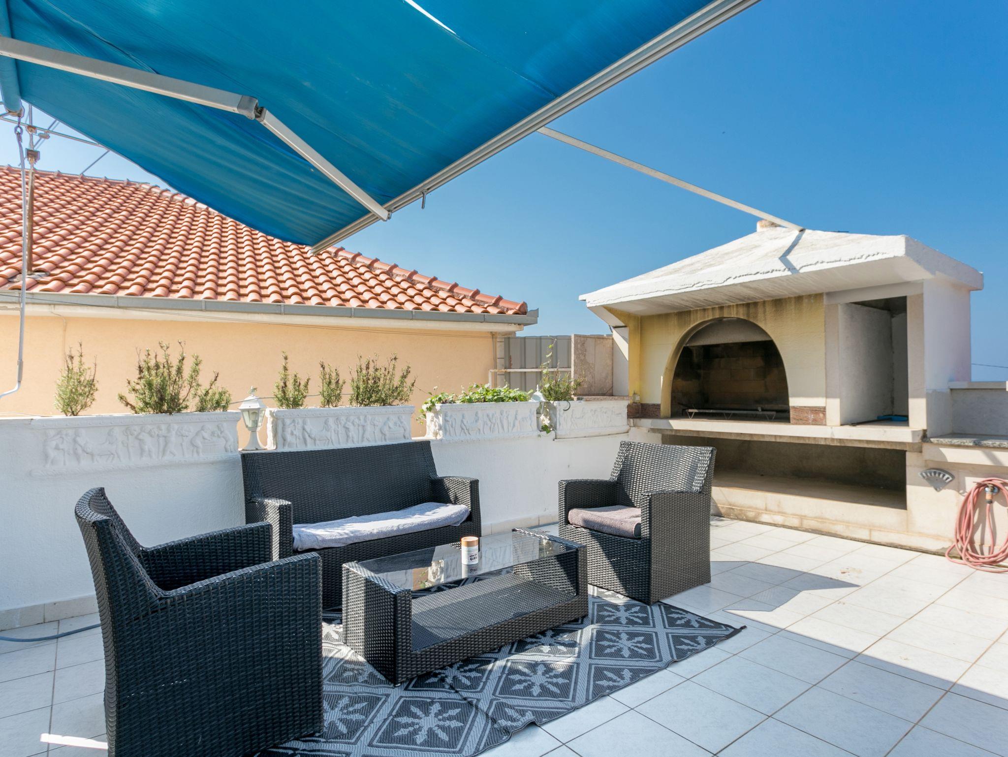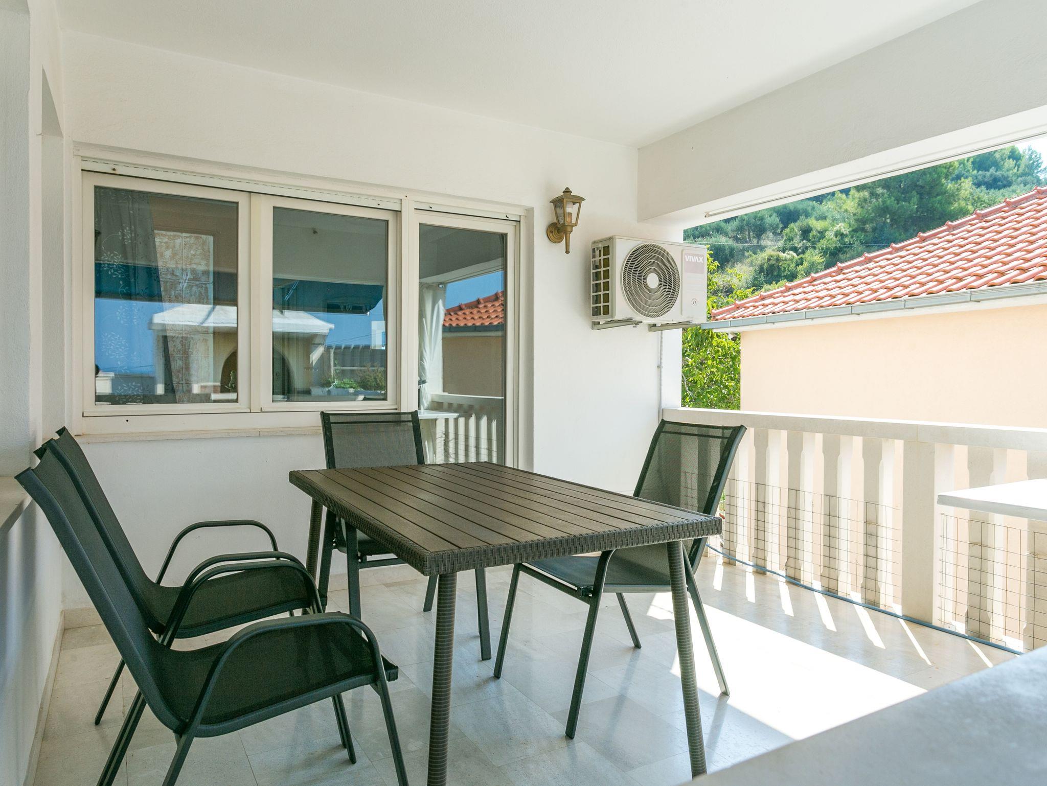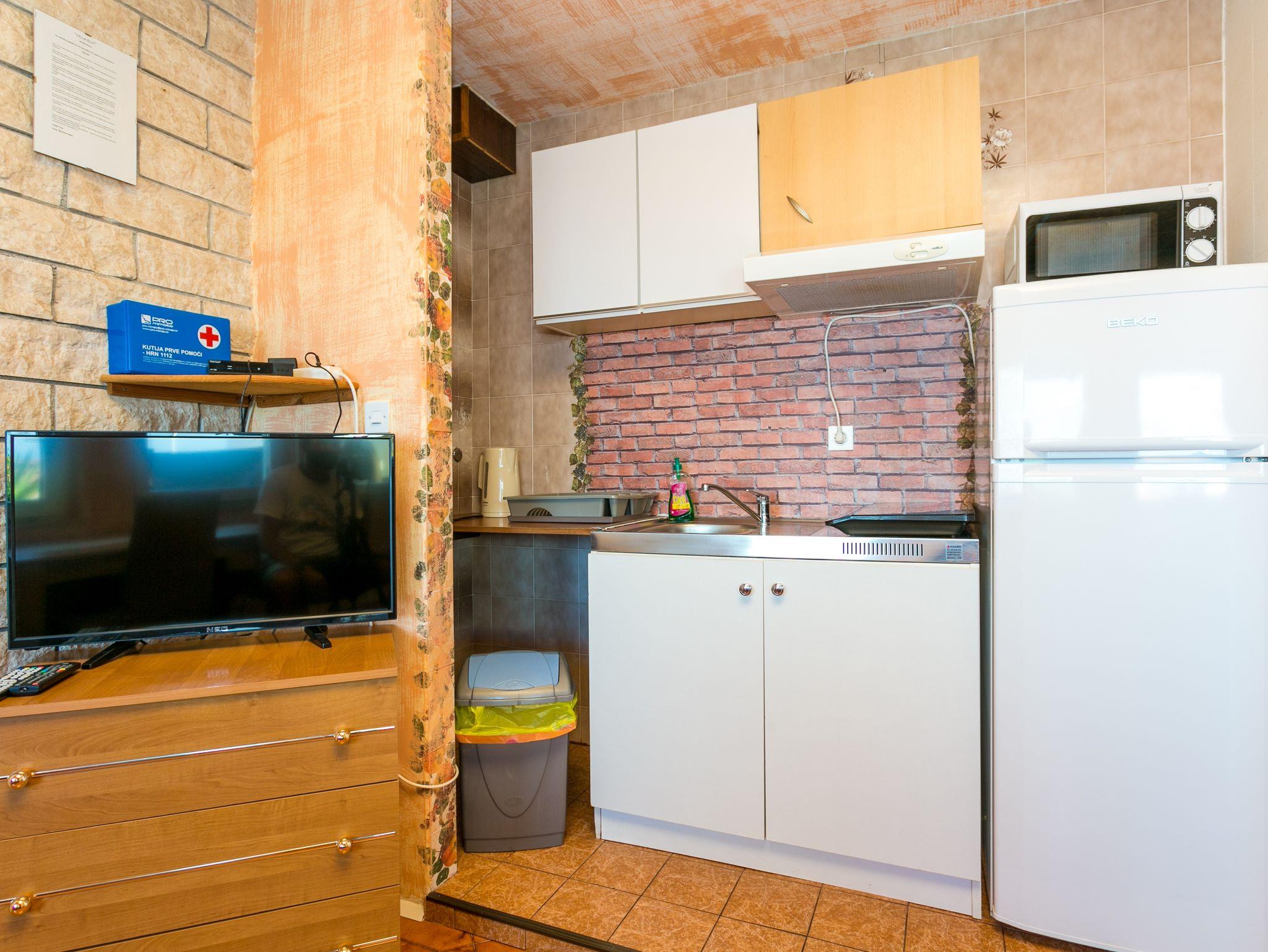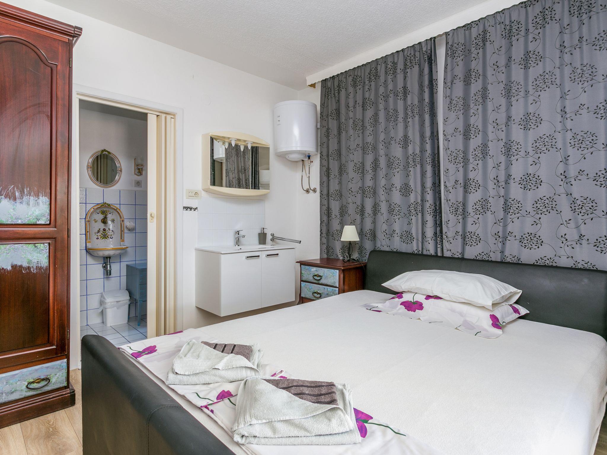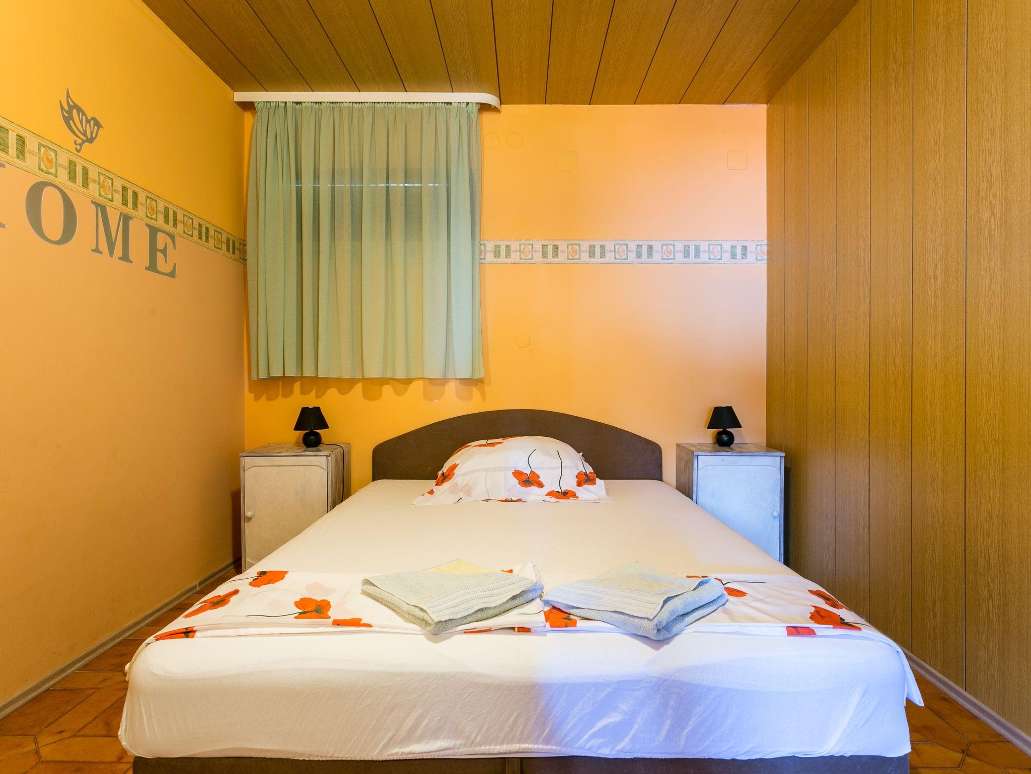 Ferienwohnung bietet Platz für 4 Gäste. Die Betten sind in Schlafzimmern, die es 2 gibt, innerhalb einer Gesamtfläche von 55m2, angeordnet. Die Gäste haben eine eigene Terrasse zur Verfügung, auf der sie in warmen Sommernächten genießen können. Das Apartment bietet Meerblick. Für vollen Genuss und Entspannung gibt es einen privaten Grill für Gäste dieser Unterkunft. Während ihres Aufenthalts können Gäste das gemeinsam zur Nutzung stehende Schwimmbad benutzen. In der Unterkunftseinheit besteht die Möglichkeit des Mitbringens von Haustieren gegen Aufpreis. IM PREIS INBEGRIFFEN: Kurtaxe, Endreinigung, Klimatisierung, Pool, Parkplatz, Garage, Internet, Wäschewaschen, Kinderbett, Bügeleisen, Bügelbrett, Föhn. VERBINDLICHE ZUSÄTZLICHE KOSTEN: Aufzahlung für Kurzaufenthalte (prozentualer Zuschlag pro Nächtigungsanzahl: 30% - 1, 20% - 2, 10% - 3). UNVERBINDLICHE ZUSÄTZLICHE KOSTEN: Haustiere (3,00 € pro Nacht). Die Verfügbarkeit zusätzlicher Dienstleistungen in Ihrem reservierten Termin und die Preise derselben (falls nicht aufgeführt) müssen im Voraus überprüft werden. Zusätzliche Dienstleistungen die in der Zahlungsaufforderung nicht aufgeführt sind werden direkt beim Vermieter bezahlt, angenommen der Gast nutzt auch diese.