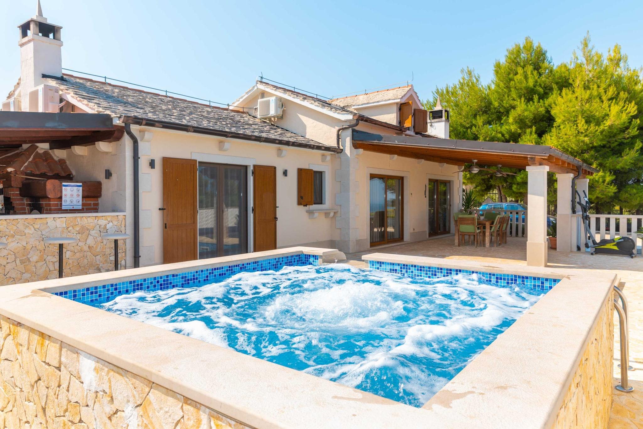 Villa Anabella is located on the Island of Brac, a quiet Island with rich cultural and historical heritage, beautiful beaches and scenery, just 17 km away from the Split. Villa Anabella is a perfect little getaway for families or friends who like to enjoy peace and quiet. This Villa features furnished terrace and 2 swimming pools with sunbeds . BBQ facilities are also at the guest disposal. Villa has 4 air conditioning and fully equipped kitchen. Private parking is available for guests. This four bedroom villa with terrace and two swimming poosl consist of living room area, fully equipped kitchen with dining area and two private bathrooms. On the inside the Villa features free WiFi and 4 air conditioning. Three bedrooms feature double beds and fourth bedroom has single bed while in the living room area there is a sofa. The kitchen is fully equipped with stove, oven, water kettle, toaster, microwave, refrigerator, coffee machine, dish washer and dining area. Outside the house there is a two swimming pos ol with sunbeds. The terrace is furnished with outside furniture, where guests can have lunch or dinner. BBQ facilities are also at the guest disposal. This four bedroom villa can comfortably accommodate up to 7 persons. The market can be found within 1 km while nearest restaurant is only 300 meters from the house. If decided to change the pool for the sea, the nearest beach is 1,5 km from the property. Other facilities like tourist information desk, ambulance, pharmacy, post office and bank can be found within 2,5 km. Ferry port Supertar is located 2.4 km from the property, while Brac airport is 24 km away.