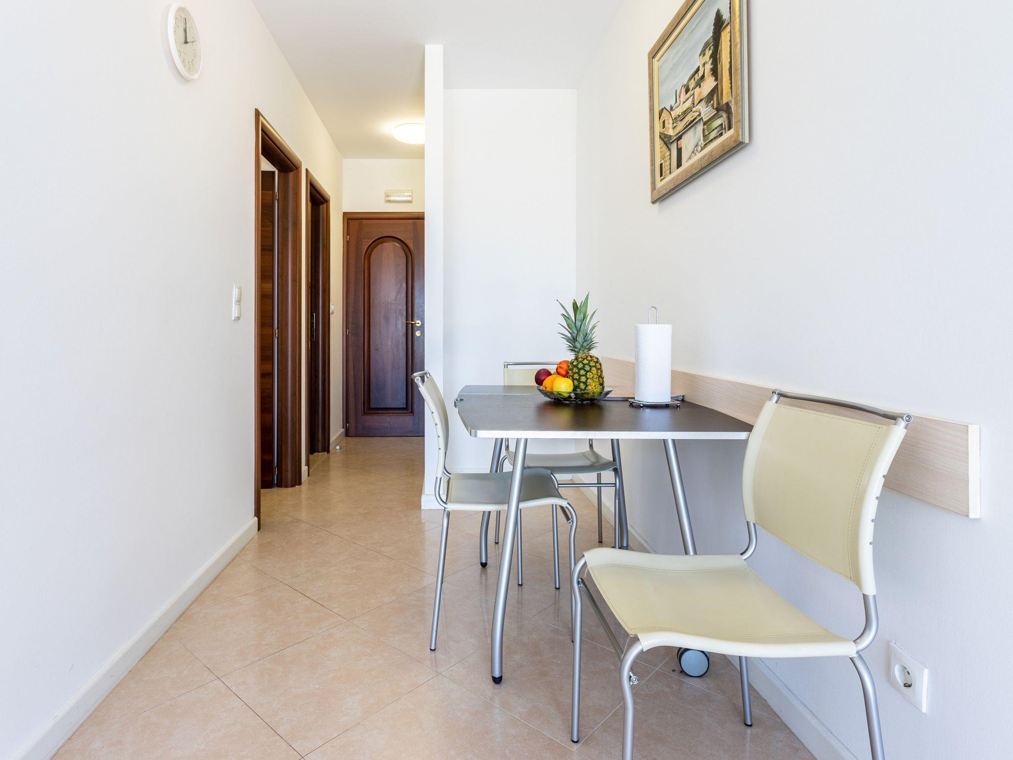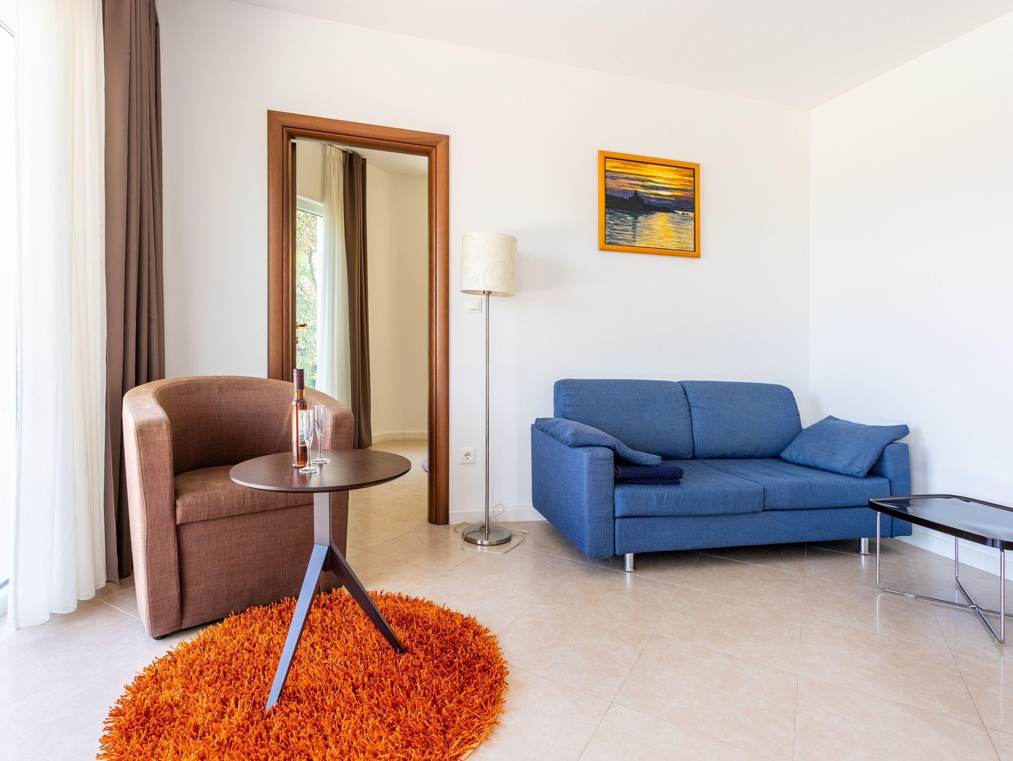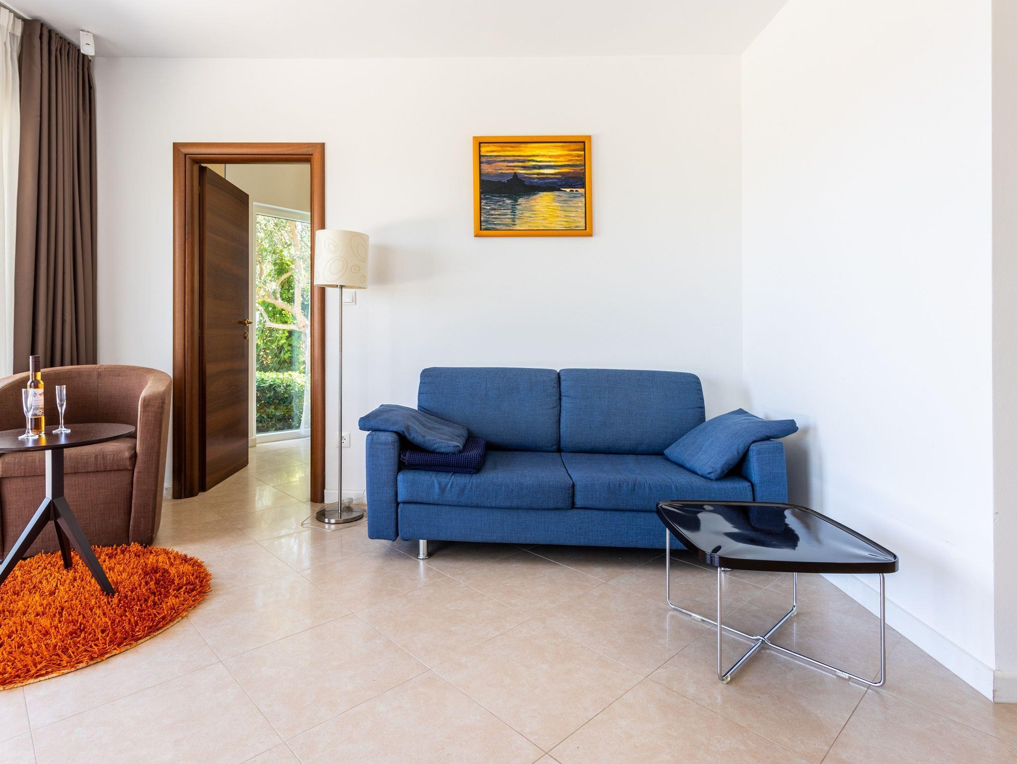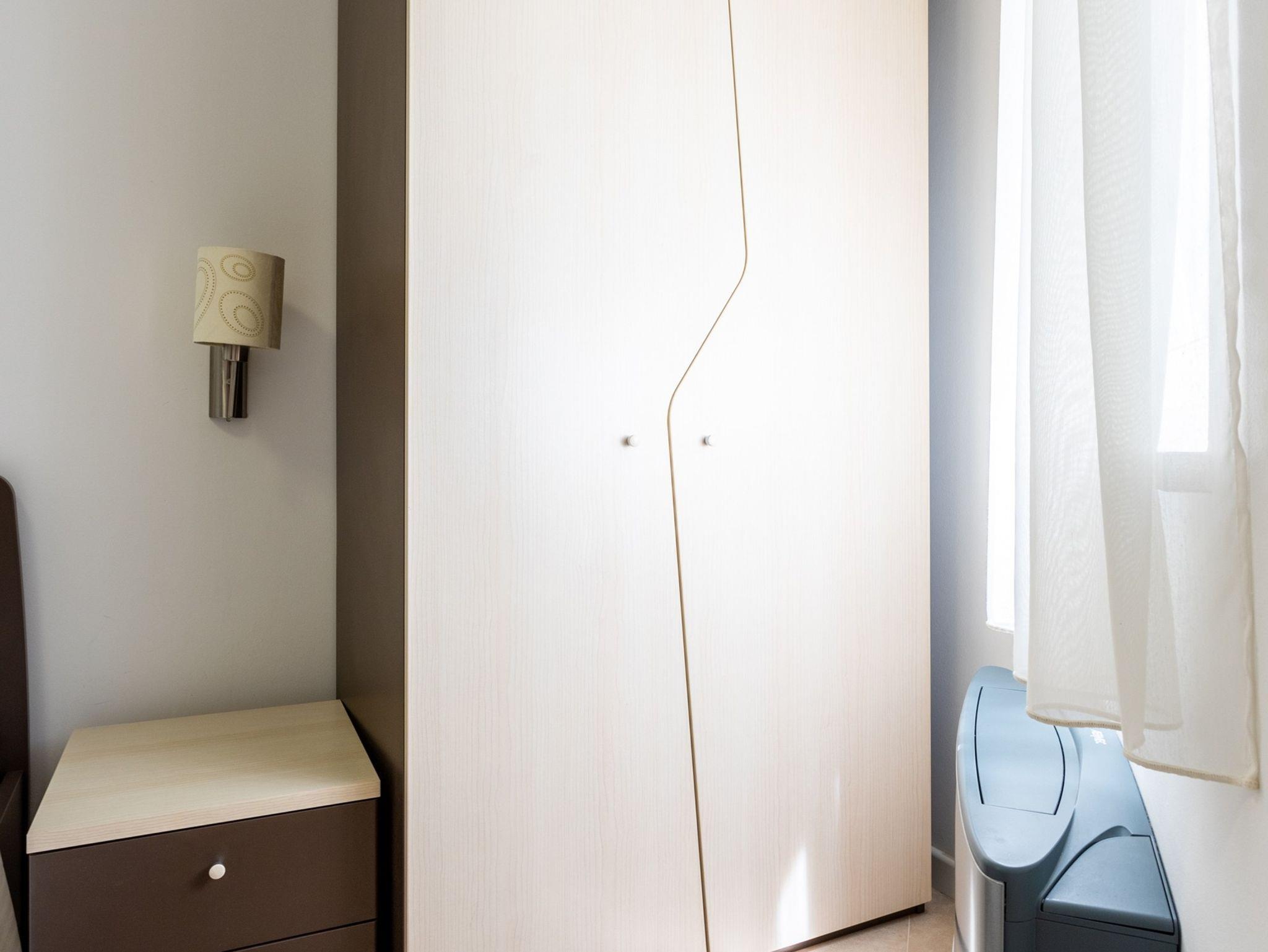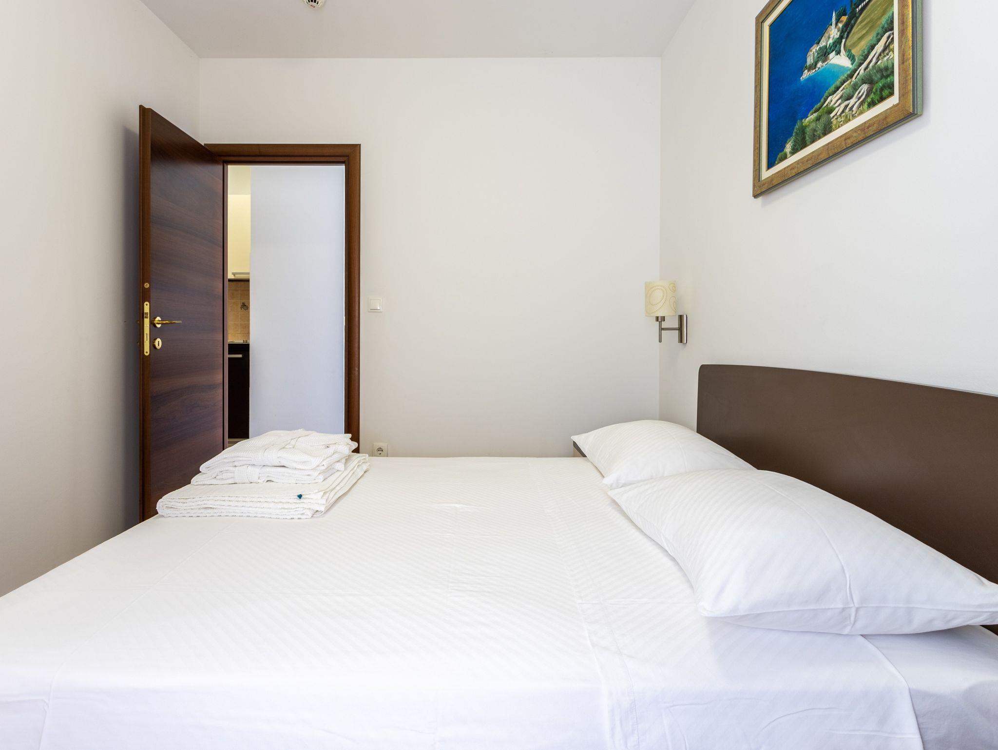 Ferienwohnung bietet Platz für 2 Gäste. Die Betten sind in Schlafzimmern, die es 2 gibt, innerhalb einer Gesamtfläche von 51m2, angeordnet. Die Gäste haben eine eigene Terrasse zur Verfügung, auf der sie in warmen Sommernächten genießen können. Das Apartment bietet Meerblick. Es ist erlaubt, Speisen auf dem Gemeinschafts-Grill vorzubereiten. Während ihres Aufenthalts können Gäste das gemeinsam zur Nutzung stehende Schwimmbad benutzen. IM PREIS INBEGRIFFEN: Kurtaxe, Endreinigung, Klimatisierung, Zentralheizung, Pool, Parkplatz, Internet, Kinderbett, Bügeleisen, Bügelbrett, Föhn, 2 Kinderbettchen (im Preis enthalten). VERBINDLICHE ZUSÄTZLICHE KOSTEN: Aufzahlung für Kurzaufenthalte (prozentualer Zuschlag pro Nächtigungsanzahl: 30% - 1, 20% - 2, 10% - 3). Die Verfügbarkeit zusätzlicher Dienstleistungen in Ihrem reservierten Termin und die Preise derselben (falls nicht aufgeführt) müssen im Voraus überprüft werden. Zusätzliche Dienstleistungen die in der Zahlungsaufforderung nicht aufgeführt sind werden direkt beim Vermieter bezahlt, angenommen der Gast nutzt auch diese.