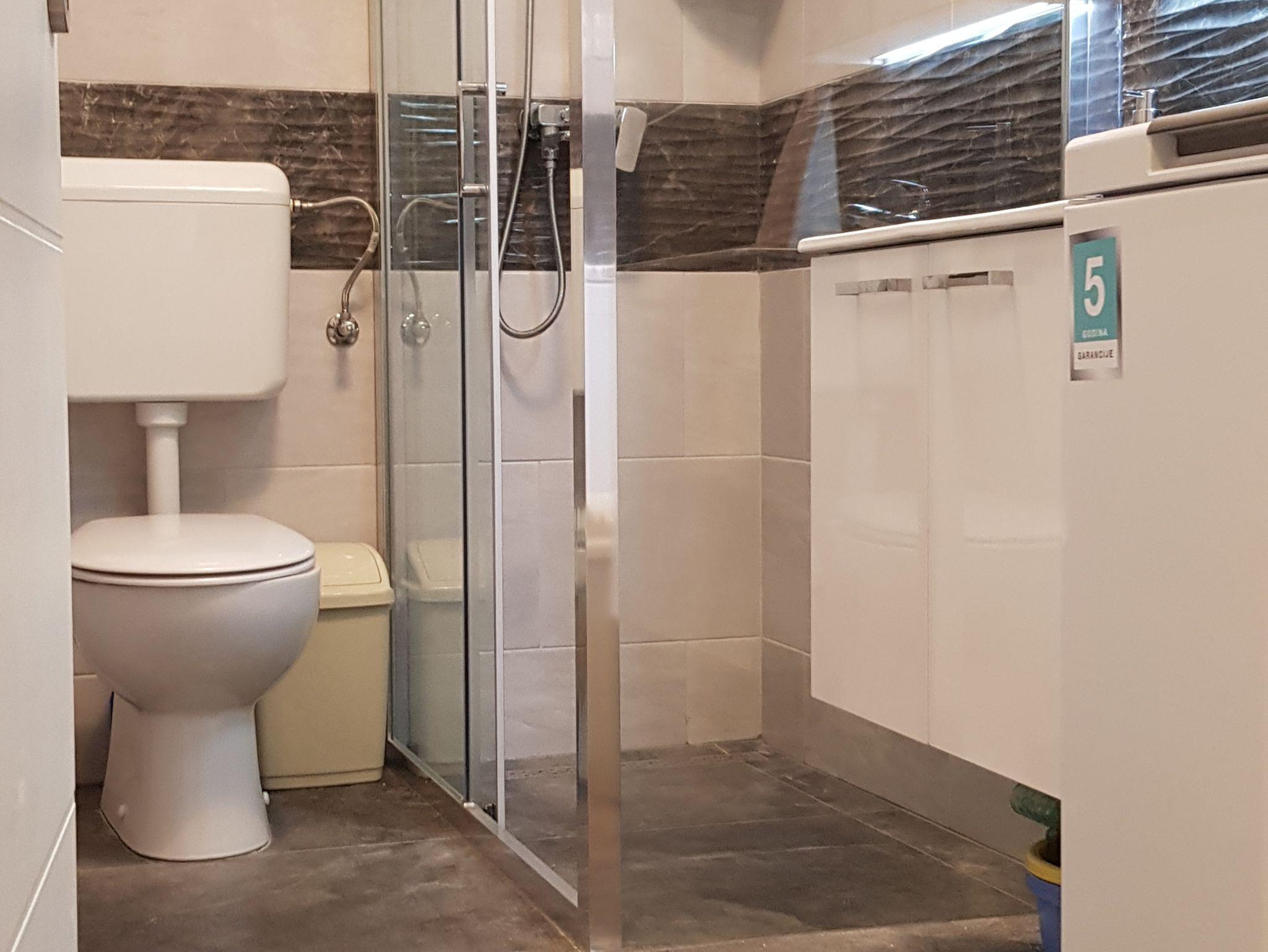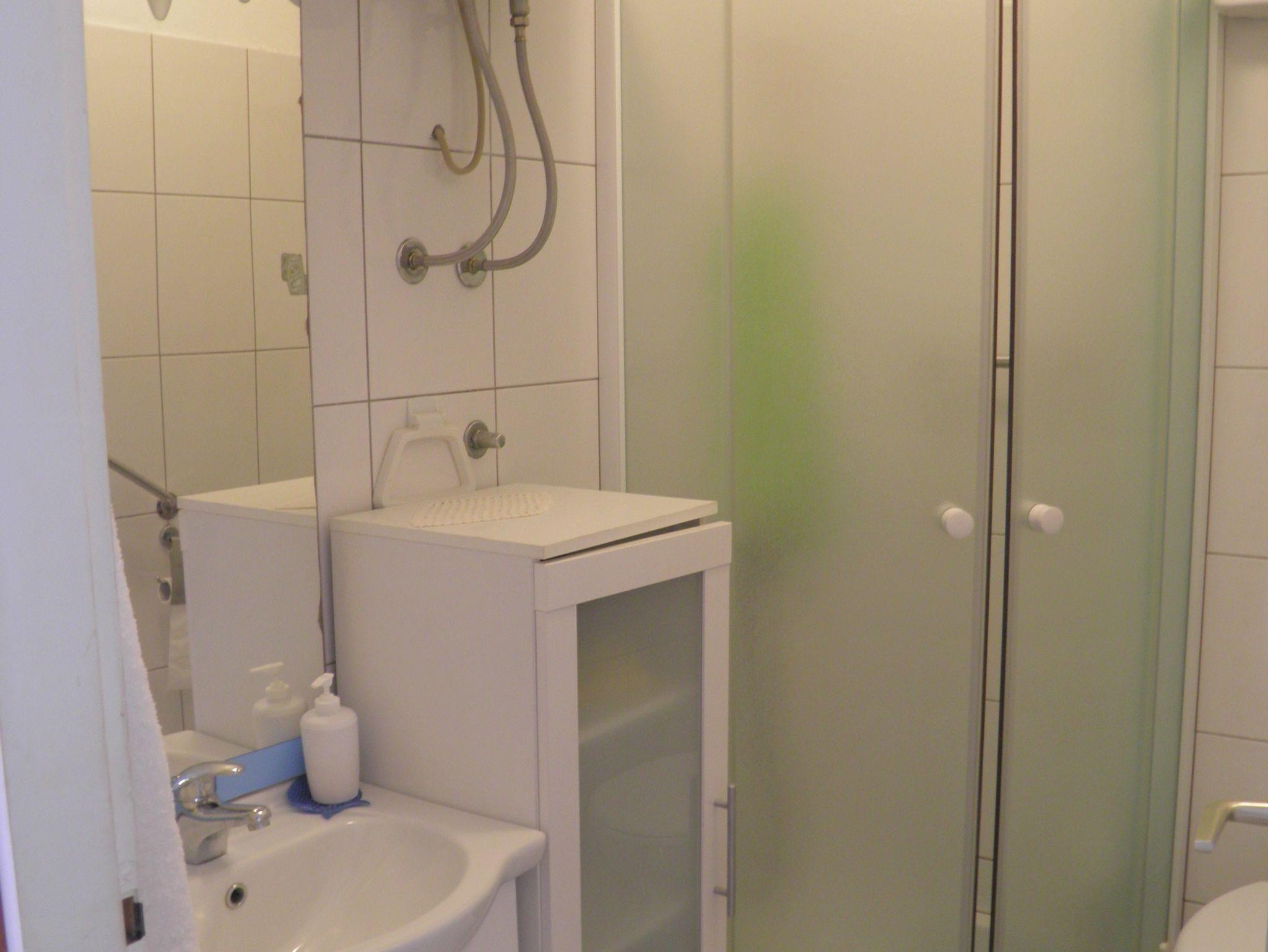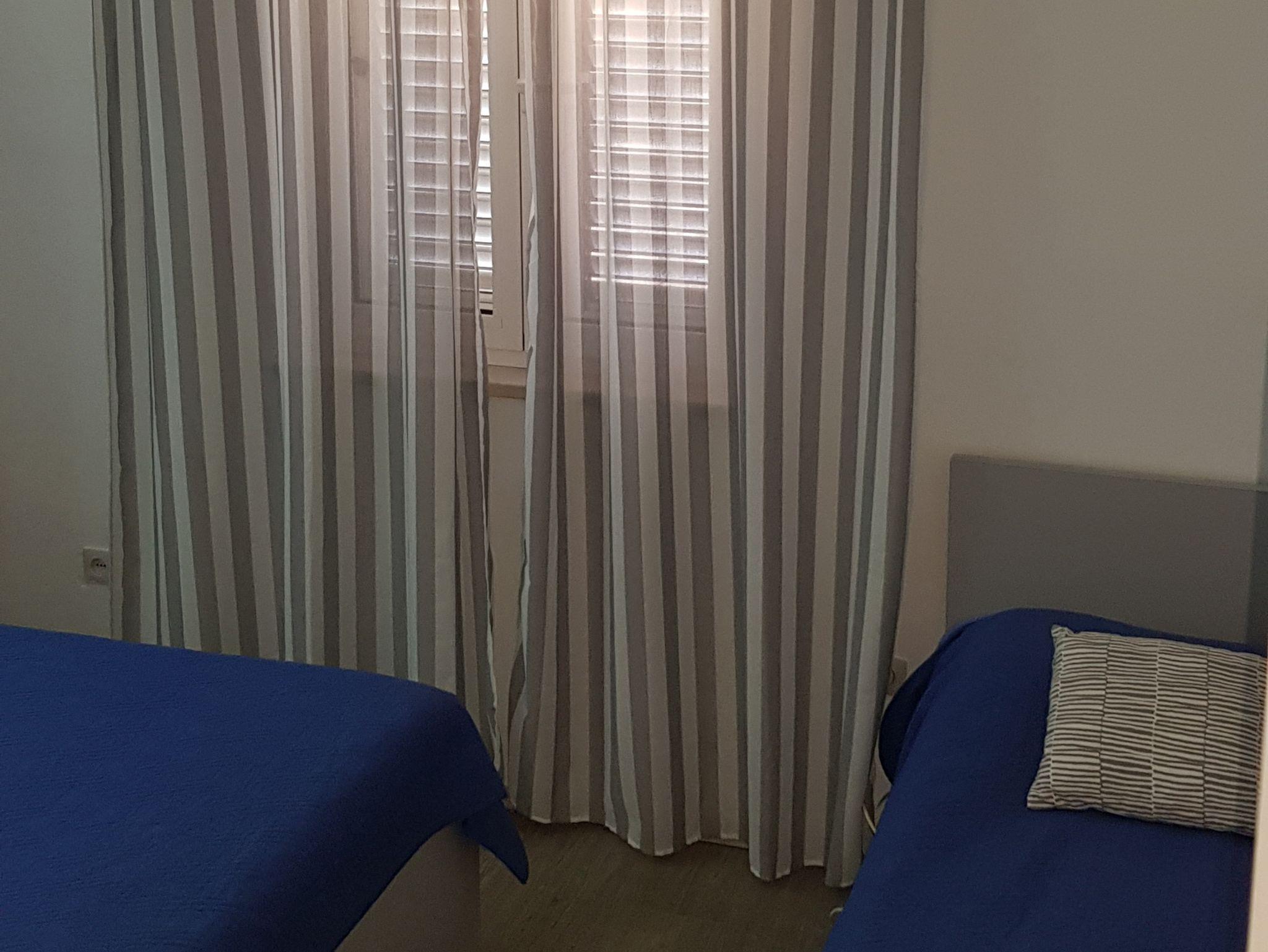 Ferienwohnung bietet Platz für 5 Gäste. Die Betten sind in Schlafzimmern, die es 2 gibt, innerhalb einer Gesamtfläche von 55m2, angeordnet. Die Gäste haben eine eigene Terrasse zur Verfügung, auf der sie in warmen Sommernächten genießen können. Es ist erlaubt, Speisen auf dem Gemeinschafts-Grill vorzubereiten. Durch die Terrasse der gebuchten Unterkunftseinheit gehen auch andere Gäste oder Vermieter. IM PREIS INBEGRIFFEN: Kurtaxe, Endreinigung, Klimatisierung, Parkplatz, Internet, Kinderbett, Bügeleisen, Bügelbrett, Föhn, tragbarer Grill. VERBINDLICHE ZUSÄTZLICHE KOSTEN: Aufzahlung für Kurzaufenthalte (prozentualer Zuschlag pro Nächtigungsanzahl: 30% - 1, 20% - 2, 10% - 3). Die Verfügbarkeit zusätzlicher Dienstleistungen in Ihrem reservierten Termin und die Preise derselben (falls nicht aufgeführt) müssen im Voraus überprüft werden. Zusätzliche Dienstleistungen die in der Zahlungsaufforderung nicht aufgeführt sind werden direkt beim Vermieter bezahlt, angenommen der Gast nutzt auch diese. Ermäßigung auf den Grundpreis: Gratistag 14=13 (bei einem Aufenthalt von 14 Tagen oder mehr erhalten Sie einen Gratistag für den Aufenthalt bis 31.12.26).
