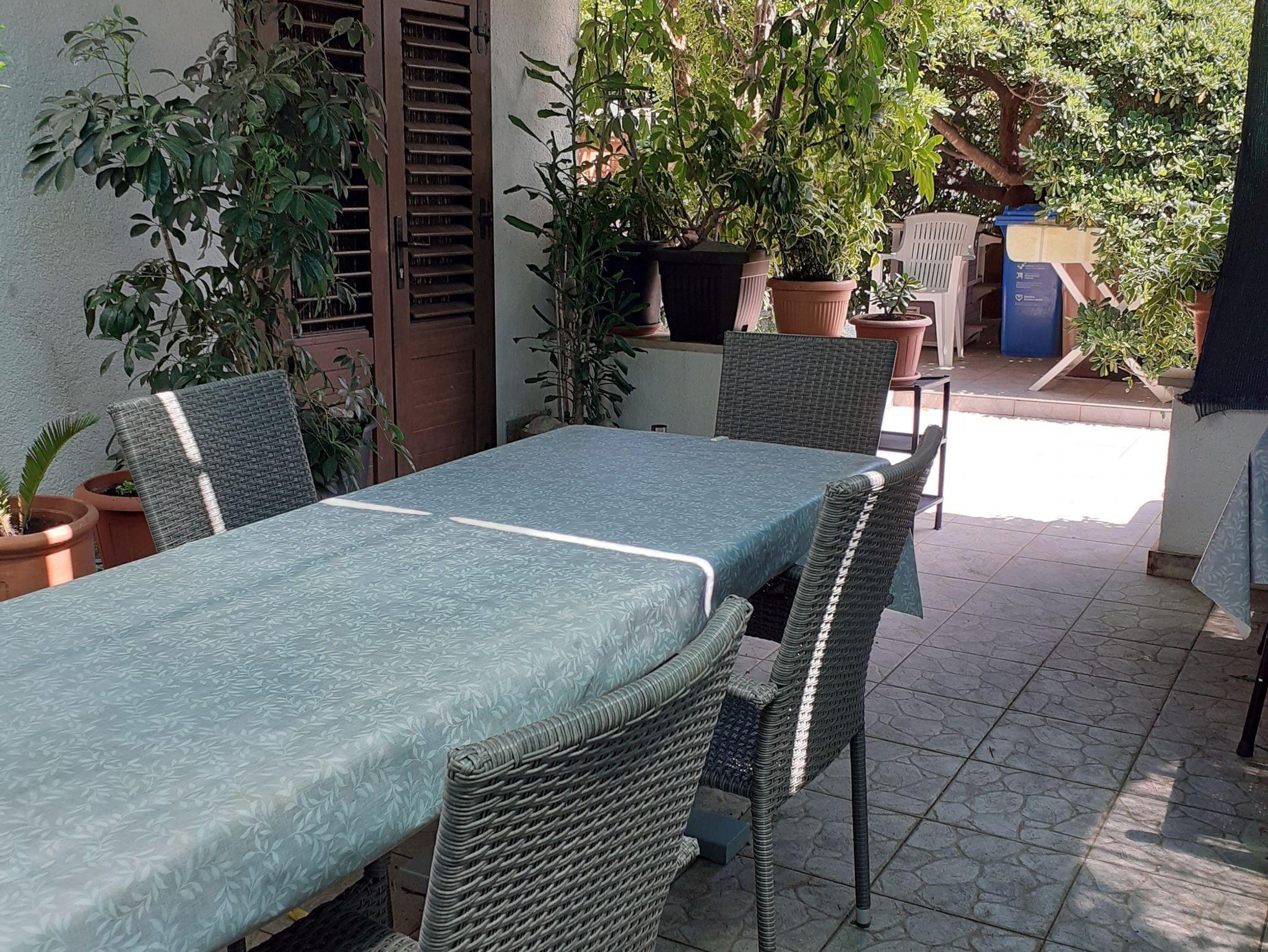 Ferienwohnung bietet Platz für 4 Gäste. Die Betten sind in Schlafzimmern, die es 1 gibt, und in Wohnzimmer, innerhalb einer Gesamtfläche von 39m2, angeordnet. Die Gäste haben eine eigene Terrasse zur Verfügung, auf der sie in warmen Sommernächten genießen können. Es ist erlaubt, Speisen auf dem Gemeinschafts-Grill vorzubereiten. In der Unterkunftseinheit besteht die Möglichkeit des Mitbringens von Haustieren gegen Aufpreis. IM PREIS INBEGRIFFEN: Kurtaxe, Endreinigung, Klimatisierung, Parkplatz, Internet, Wäschewaschen, Bügeleisen, Bügelbrett, Föhn, Sonnenschirm, Liegestühle. VERBINDLICHE ZUSÄTZLICHE KOSTEN: Aufzahlung für Kurzaufenthalte (prozentualer Zuschlag pro Nächtigungsanzahl: 30% - 1, 20% - 2, 10% - 3). UNVERBINDLICHE ZUSÄTZLICHE KOSTEN: Haustiere (5,00 € pro Nacht). Die Verfügbarkeit zusätzlicher Dienstleistungen in Ihrem reservierten Termin und die Preise derselben (falls nicht aufgeführt) müssen im Voraus überprüft werden. Zusätzliche Dienstleistungen die in der Zahlungsaufforderung nicht aufgeführt sind werden direkt beim Vermieter bezahlt, angenommen der Gast nutzt auch diese.