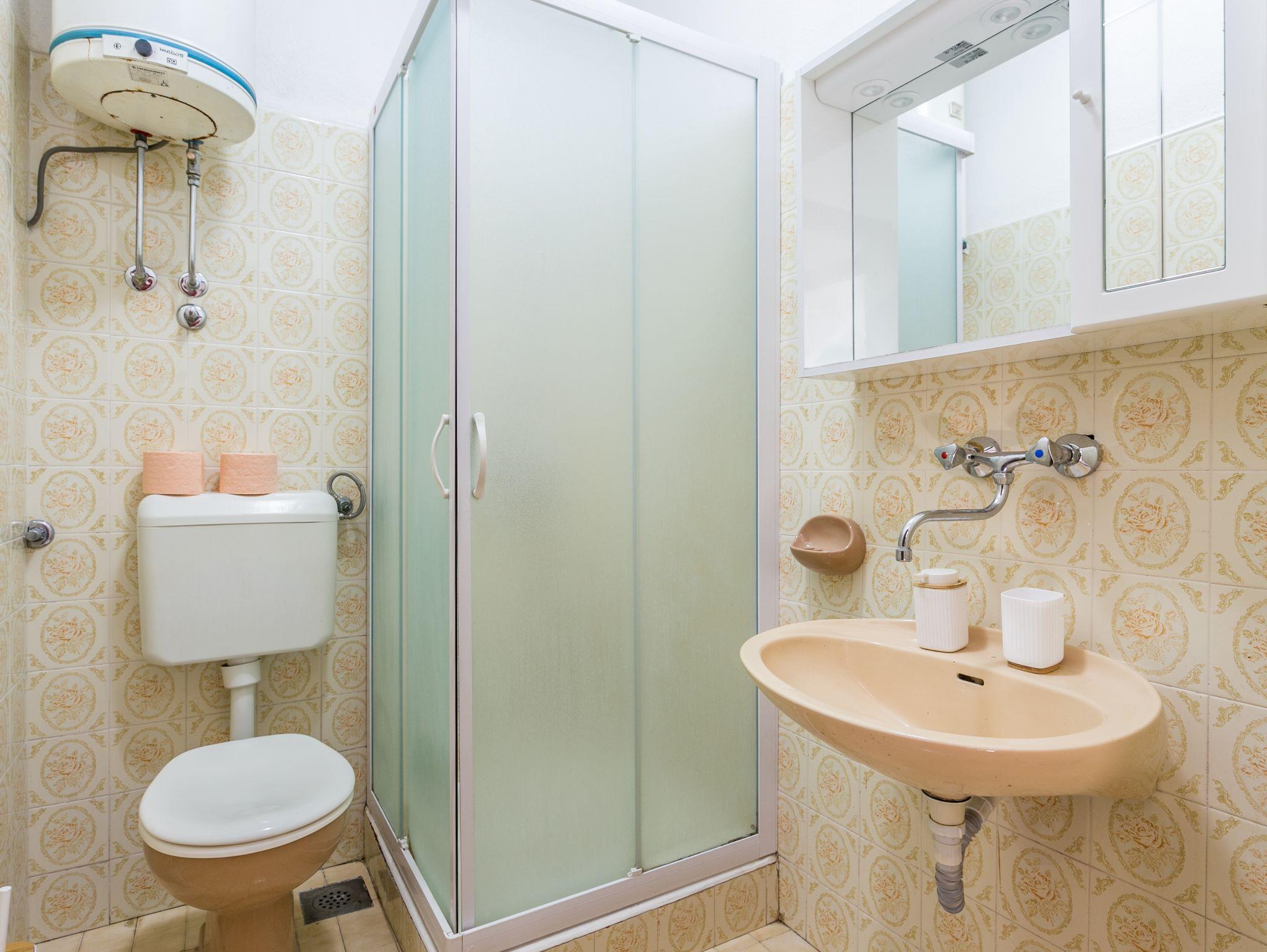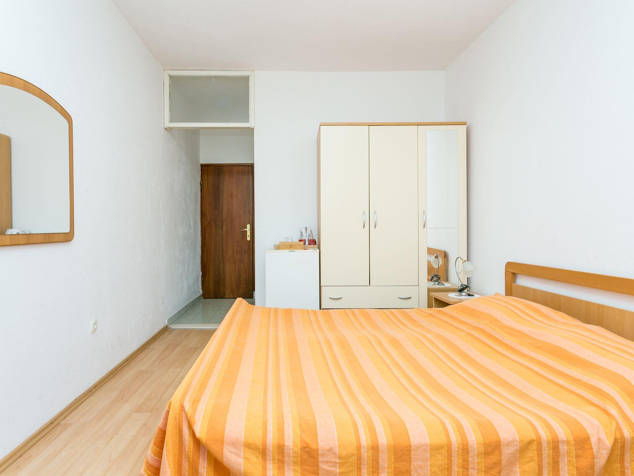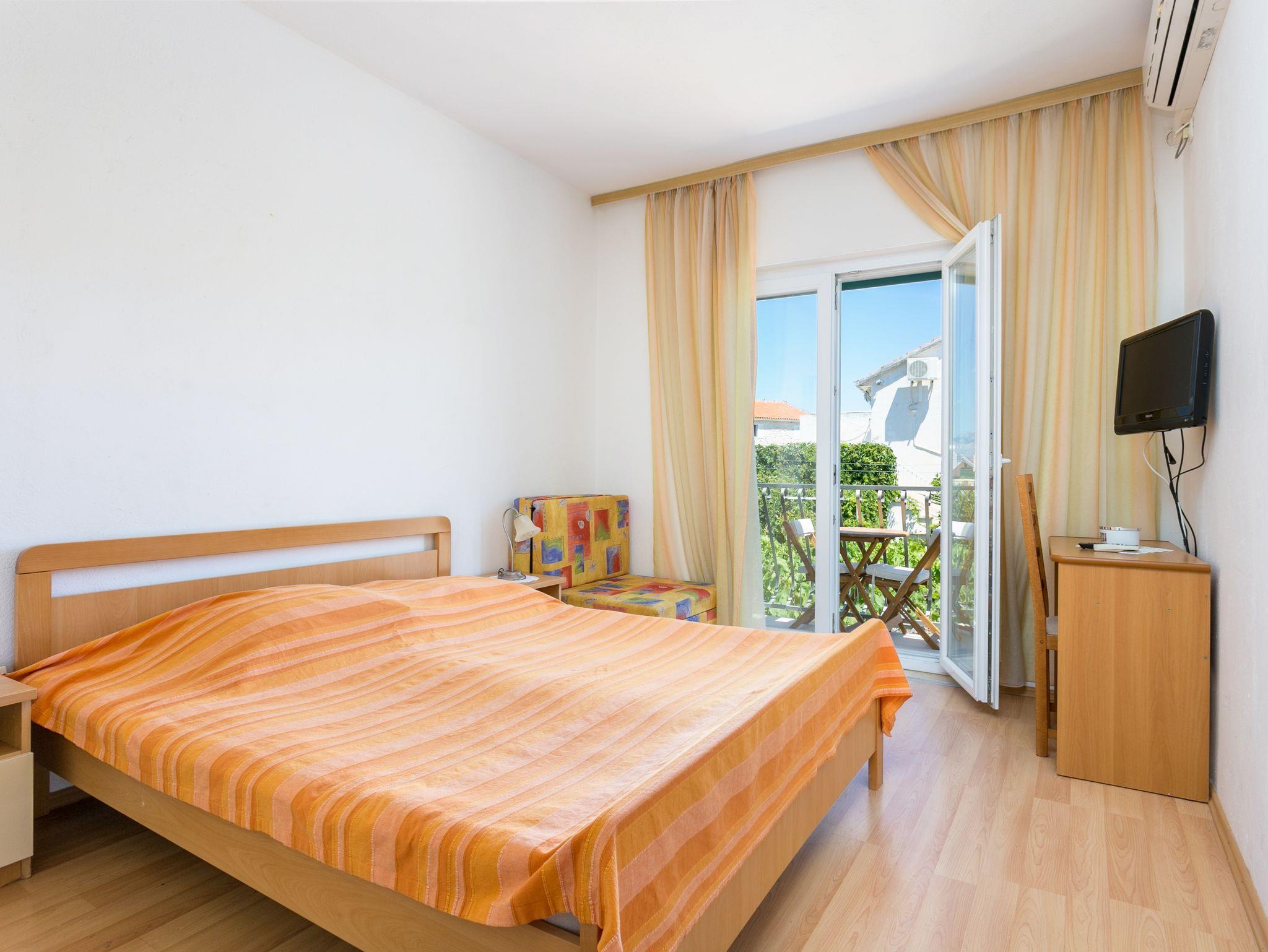 Zimmer bietet Platz für 3 Gäste. Die Betten sind in Schlafzimmern, die es 1 gibt, innerhalb einer Gesamtfläche von 15m2, angeordnet. Die Gäste haben einen eigenen Balkon zur Verfügung, auf der sie in warmen Sommernächten genießen können. Das Zimmer bietet Meerblick. Es ist erlaubt, Speisen auf dem Gemeinschafts-Grill vorzubereiten. Die reservierte Unterkunftseinheit ist ein Zimmer mit eigenem Badezimmer ohne die Möglichkeit der Nutzung einer Küche. IM PREIS INBEGRIFFEN: Kurtaxe, Endreinigung, Klimatisierung, Parkplatz, Internet, Bügeleisen, Bügelbrett, Föhn. VERBINDLICHE ZUSÄTZLICHE KOSTEN: Aufzahlung für Kurzaufenthalte (prozentualer Zuschlag pro Nächtigungsanzahl: 30% - 1, 20% - 2, 10% - 3). UNVERBINDLICHE ZUSÄTZLICHE KOSTEN: Wäschewaschen (3,00 € Waschen). Die Verfügbarkeit zusätzlicher Dienstleistungen in Ihrem reservierten Termin und die Preise derselben (falls nicht aufgeführt) müssen im Voraus überprüft werden. Zusätzliche Dienstleistungen die in der Zahlungsaufforderung nicht aufgeführt sind werden direkt beim Vermieter bezahlt, angenommen der Gast nutzt auch diese. Ermäßigung auf den Grundpreis: Gratistag 14=13 (bei einem Aufenthalt von 14 Tagen oder mehr erhalten Sie einen Gratistag für den Aufenthalt bis 31.12.26).