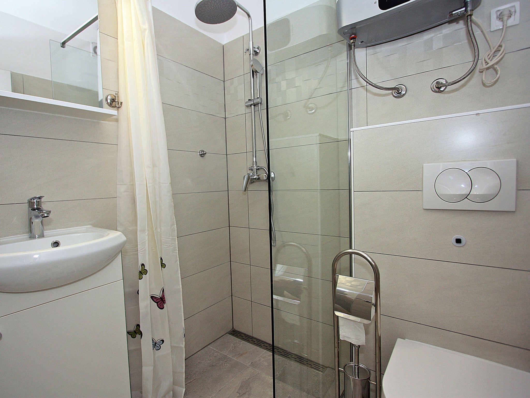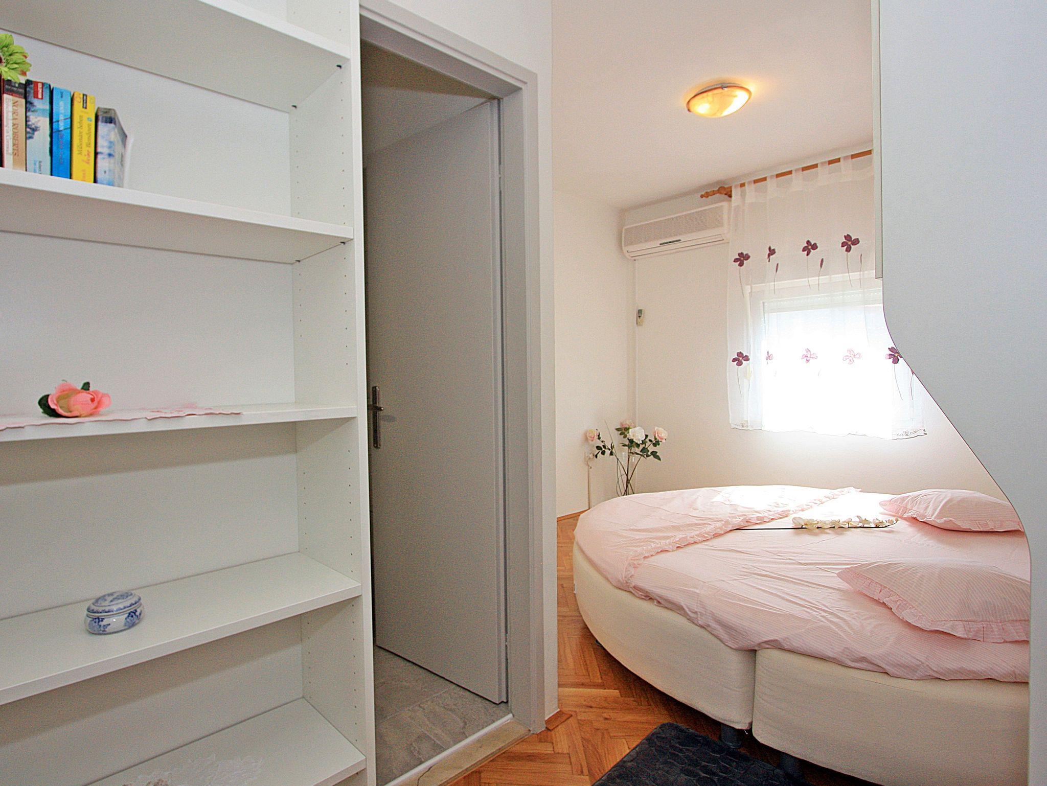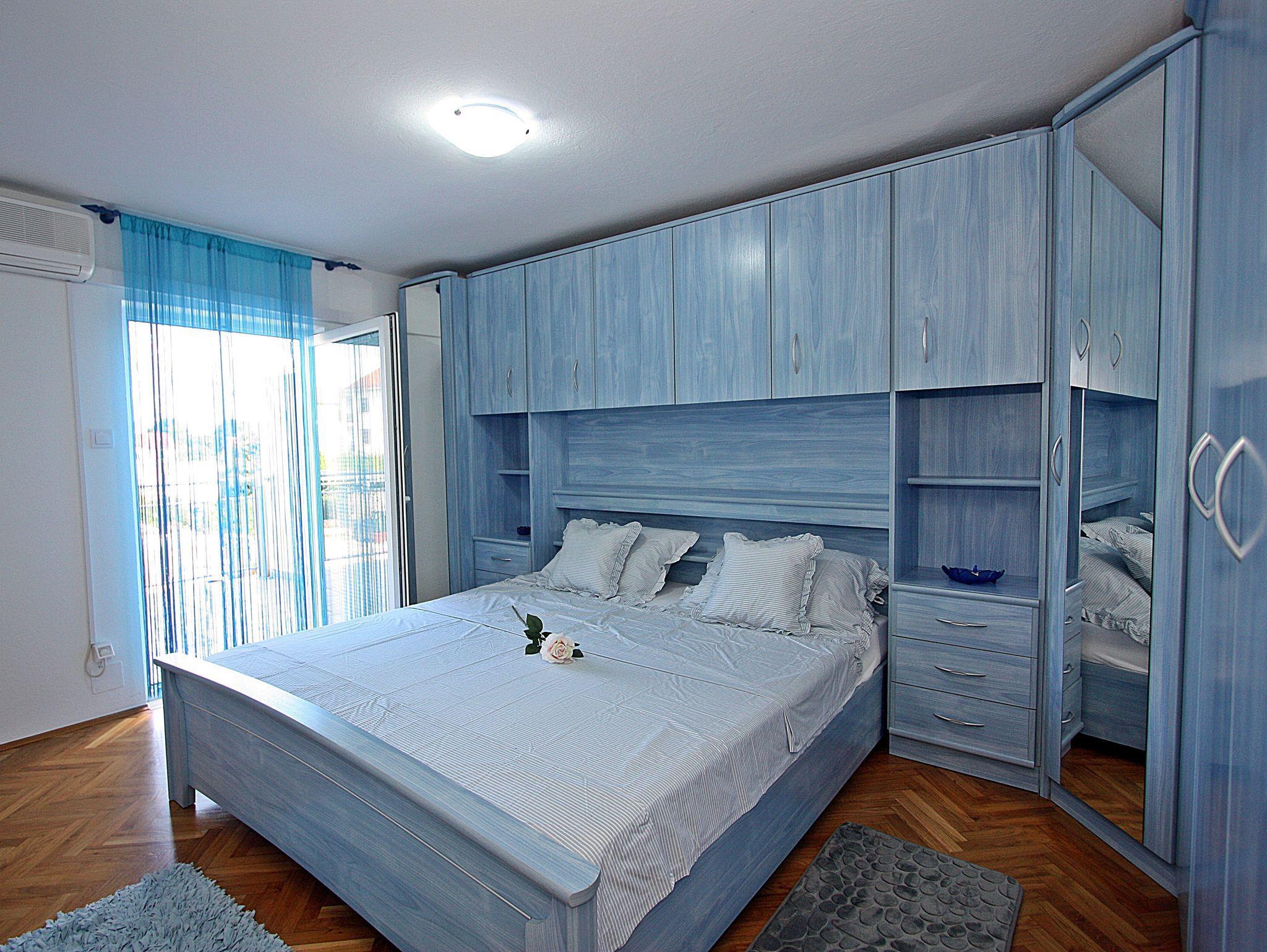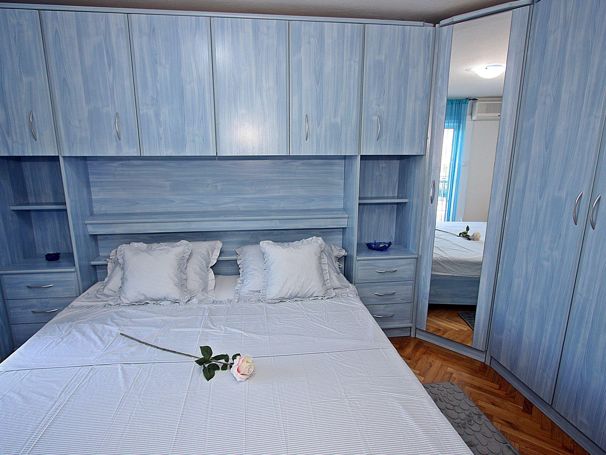 Ferienwohnung bietet Platz für 6 Gäste. Die Betten sind in Schlafzimmern, die es 3 gibt, innerhalb einer Gesamtfläche von 65m2, angeordnet. Die Gäste haben eine eigene Terrasse zur Verfügung, auf der sie in warmen Sommernächten genießen können. Das Apartment bietet Meerblick. Es ist erlaubt, Speisen auf dem Gemeinschafts-Grill vorzubereiten. IM PREIS INBEGRIFFEN: Kurtaxe, Endreinigung, Klimatisierung, Internet, Bügeleisen, Bügelbrett, Föhn, tragbarer Grill. VERBINDLICHE ZUSÄTZLICHE KOSTEN: Aufzahlung für Kurzaufenthalte (prozentualer Zuschlag pro Nächtigungsanzahl: 30% - 1, 20% - 2, 10% - 3). UNVERBINDLICHE ZUSÄTZLICHE KOSTEN: Wäschewaschen (5,00 € Waschen). Die Verfügbarkeit zusätzlicher Dienstleistungen in Ihrem reservierten Termin und die Preise derselben (falls nicht aufgeführt) müssen im Voraus überprüft werden. Zusätzliche Dienstleistungen die in der Zahlungsaufforderung nicht aufgeführt sind werden direkt beim Vermieter bezahlt, angenommen der Gast nutzt auch diese. Ermäßigung auf den Grundpreis: Gratistag 14=13 (bei einem Aufenthalt von 14 Tagen oder mehr erhalten Sie einen Gratistag für den Aufenthalt bis 31.12.26).
