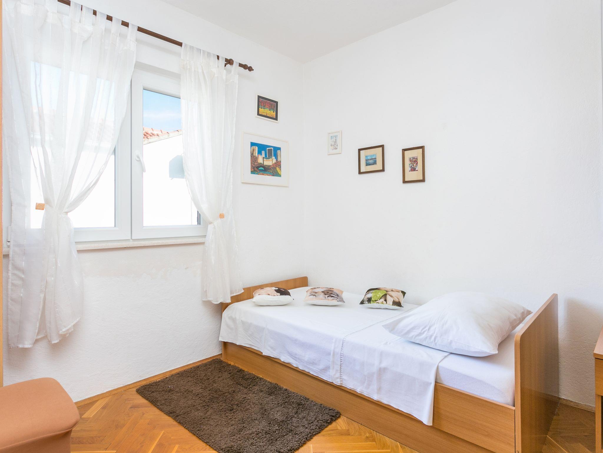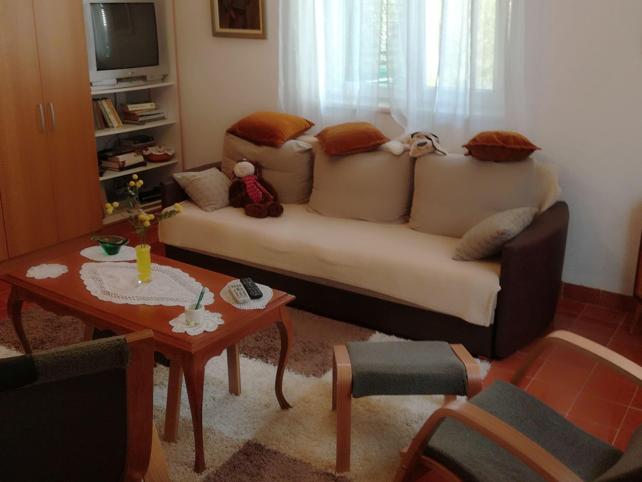 Ferienwohnung bietet Platz für 6 Gäste. Die Betten sind in Schlafzimmern, die es 2 gibt, und in Wohnzimmer, innerhalb einer Gesamtfläche von 76m2, angeordnet. Die Gäste haben eine eigene Terrasse zur Verfügung, auf der sie in warmen Sommernächten genießen können. Das Apartment bietet Meerblick. Es ist erlaubt, Speisen auf dem Gemeinschafts-Grill vorzubereiten. IM PREIS INBEGRIFFEN: Kurtaxe, Endreinigung, Parkplatz, Internet, Bügeleisen, Bügelbrett, Föhn, tragbarer Grill. VERBINDLICHE ZUSÄTZLICHE KOSTEN: Aufzahlung für Kurzaufenthalte (prozentualer Zuschlag pro Nächtigungsanzahl: 30% - 1, 20% - 2, 10% - 3). UNVERBINDLICHE ZUSÄTZLICHE KOSTEN: Klimatisierung (4,00 € pro Nacht). Die Verfügbarkeit zusätzlicher Dienstleistungen in Ihrem reservierten Termin und die Preise derselben (falls nicht aufgeführt) müssen im Voraus überprüft werden. Zusätzliche Dienstleistungen die in der Zahlungsaufforderung nicht aufgeführt sind werden direkt beim Vermieter bezahlt, angenommen der Gast nutzt auch diese. Ermäßigung auf den Grundpreis: Gratistag 28=25 (bei einem Aufenthalt von 28 oder mehr Tagen erhalten Sie 3 kostenlose Tage für den Aufenthalt bis 31.12.26).