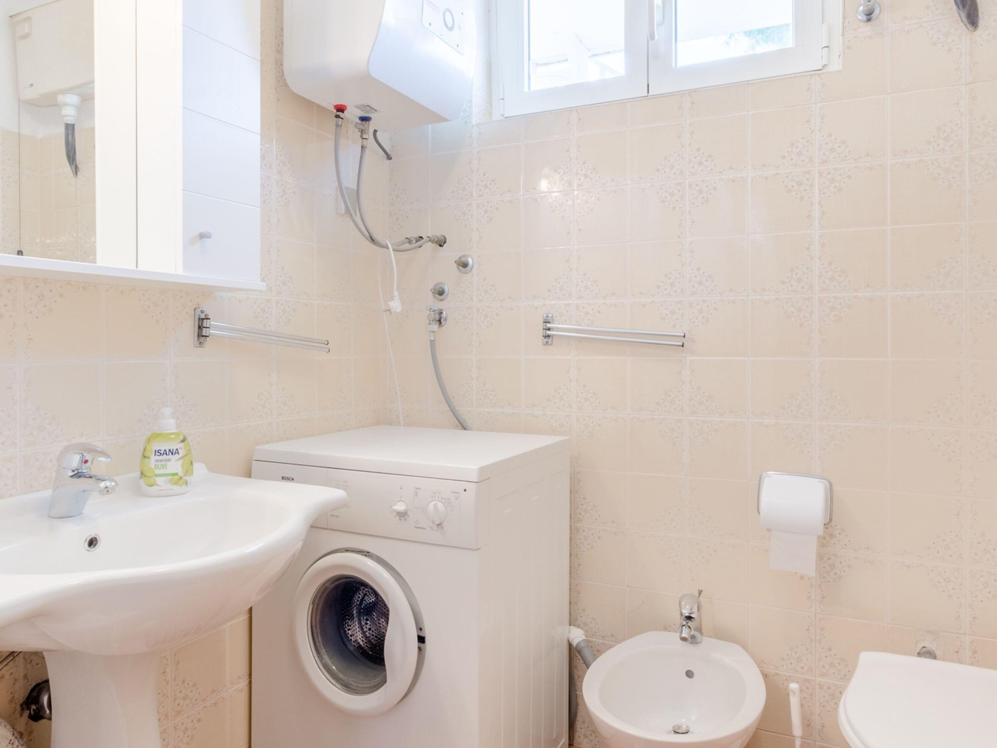 Ferienwohnung bietet Platz für 6 Gäste. Die Betten sind in Schlafzimmern, die es 3 gibt, innerhalb einer Gesamtfläche von 61m2, angeordnet. Die Gäste haben eine eigene Terrasse zur Verfügung, auf der sie in warmen Sommernächten genießen können. Das Apartment bietet Meerblick. Es ist erlaubt, Speisen auf dem Gemeinschafts-Grill vorzubereiten. IM PREIS INBEGRIFFEN: Kurtaxe, Endreinigung, Parkplatz, Internet, Kinderbett, Bügeleisen, Bügelbrett, Föhn. VERBINDLICHE ZUSÄTZLICHE KOSTEN: Aufzahlung für Kurzaufenthalte (prozentualer Zuschlag pro Nächtigungsanzahl: 30% - 1, 20% - 2, 10% - 3). UNVERBINDLICHE ZUSÄTZLICHE KOSTEN: Klimatisierung (6,00 € pro Nacht). Die Verfügbarkeit zusätzlicher Dienstleistungen in Ihrem reservierten Termin und die Preise derselben (falls nicht aufgeführt) müssen im Voraus überprüft werden. Zusätzliche Dienstleistungen die in der Zahlungsaufforderung nicht aufgeführt sind werden direkt beim Vermieter bezahlt, angenommen der Gast nutzt auch diese. Ermäßigung auf den Grundpreis: Gratistag 14=13 (bei einem Aufenthalt von 14 Tagen oder mehr erhalten Sie einen Gratistag für den Aufenthalt bis 31.12.26).