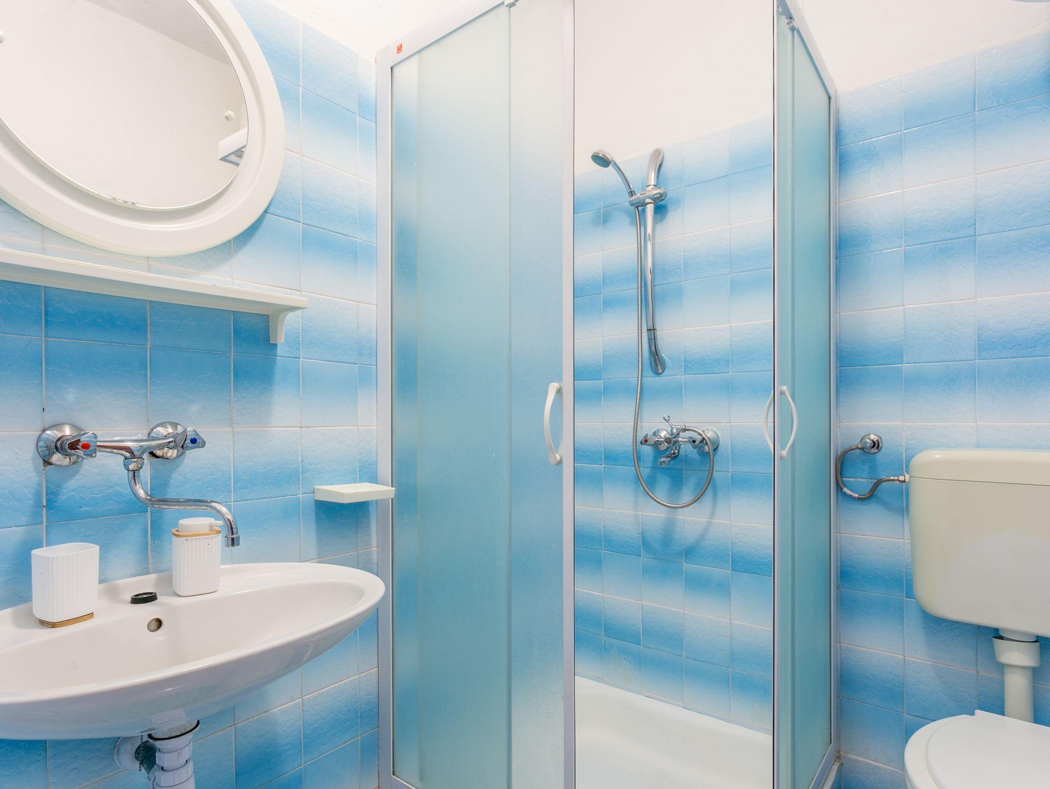 Zimmer bietet Platz für 2 Gäste. Die Betten sind in Schlafzimmern, die es 1 gibt, innerhalb einer Gesamtfläche von 15m2, angeordnet. Die Gäste haben einen eigenen Balkon zur Verfügung, auf der sie in warmen Sommernächten genießen können. Das Zimmer bietet Meerblick. Es ist erlaubt, Speisen auf dem Gemeinschafts-Grill vorzubereiten. Die reservierte Unterkunftseinheit ist ein Zimmer mit eigenem Badezimmer ohne die Möglichkeit der Nutzung einer Küche. IM PREIS INBEGRIFFEN: Kurtaxe, Endreinigung, Klimatisierung, Parkplatz, Internet, Bügeleisen, Bügelbrett, Föhn. VERBINDLICHE ZUSÄTZLICHE KOSTEN: Aufzahlung für Kurzaufenthalte (prozentualer Zuschlag pro Nächtigungsanzahl: 30% - 1, 20% - 2, 10% - 3). UNVERBINDLICHE ZUSÄTZLICHE KOSTEN: Wäschewaschen (3,00 € Waschen). Die Verfügbarkeit zusätzlicher Dienstleistungen in Ihrem reservierten Termin und die Preise derselben (falls nicht aufgeführt) müssen im Voraus überprüft werden. Zusätzliche Dienstleistungen die in der Zahlungsaufforderung nicht aufgeführt sind werden direkt beim Vermieter bezahlt, angenommen der Gast nutzt auch diese. Ermäßigung auf den Grundpreis: Gratistag 14=13 (bei einem Aufenthalt von 14 Tagen oder mehr erhalten Sie einen Gratistag für den Aufenthalt bis 31.12.26).