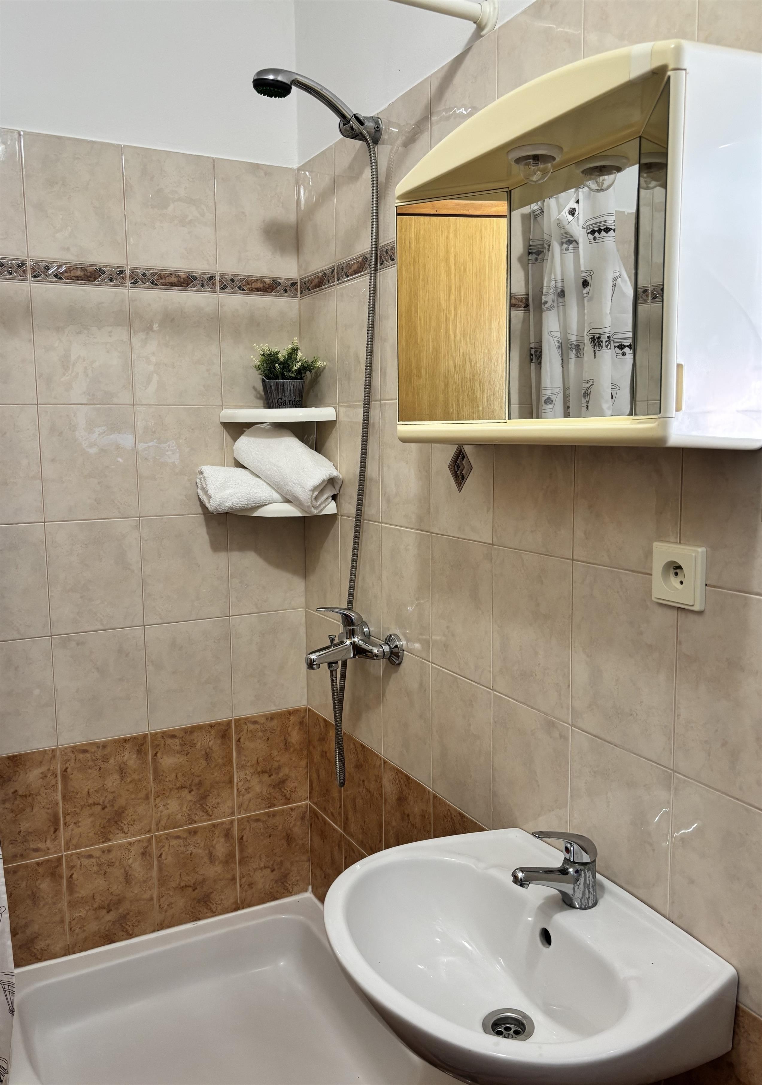 Badezimmer mit Dusche oder Badewanne, Bidet und kostenlosen Pflegeprodukten