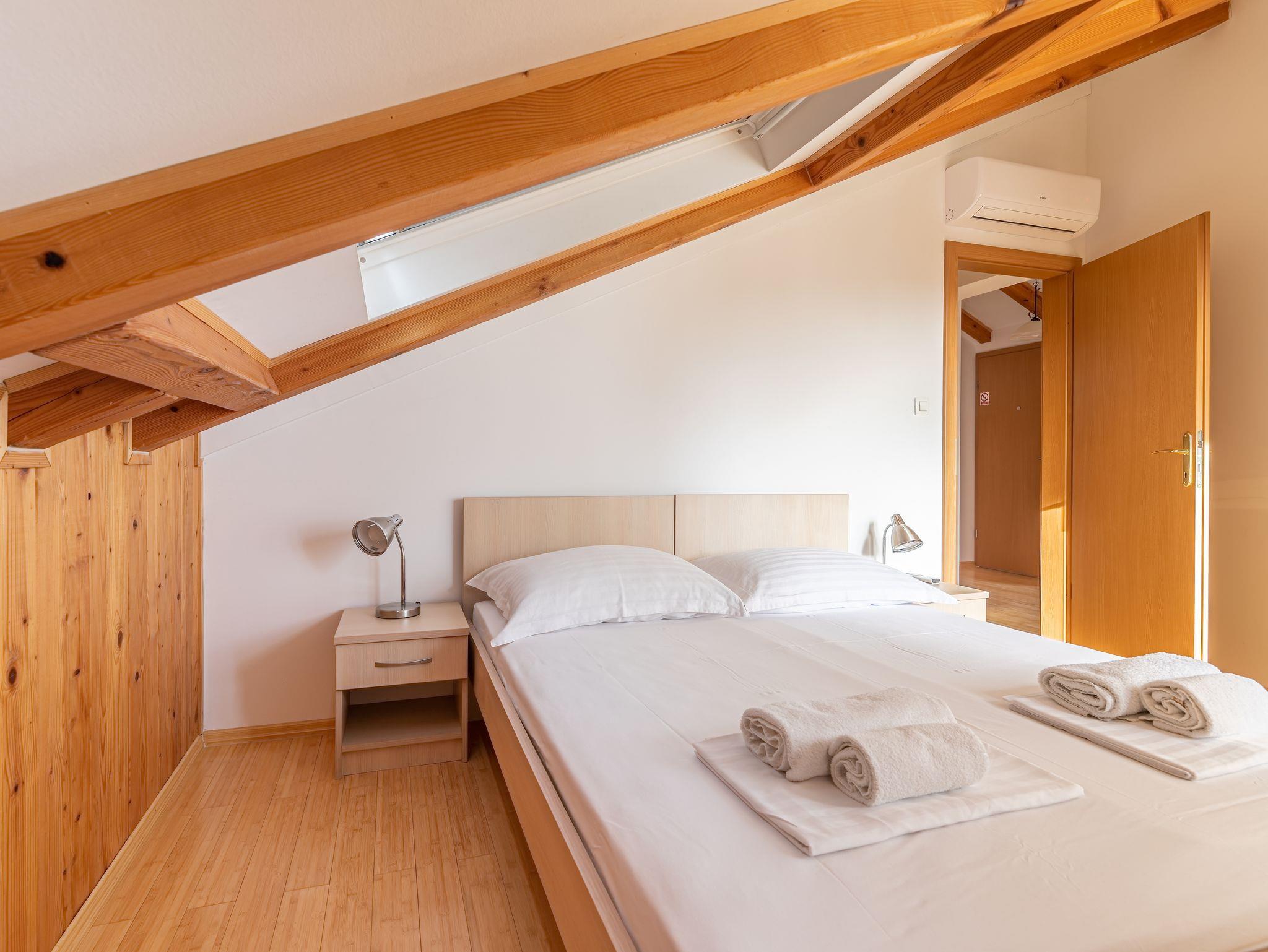 Ferienwohnung bietet Platz für 4 Gäste. Die Betten sind in Schlafzimmern, die es 2 gibt, innerhalb einer Gesamtfläche von 55m2, angeordnet. Es ist erlaubt, Speisen auf dem Gemeinschafts-Grill vorzubereiten. Während ihres Aufenthalts können Gäste das gemeinsam zur Nutzung stehende Schwimmbad benutzen. Die reservierte Unterkunftseinheit hat keinen Balkon und keine Terrasse. IM PREIS INBEGRIFFEN: Kurtaxe, Endreinigung, Klimatisierung, Pool, Parkplatz, Garage, Internet, Wäschewaschen, Zusatzbett, Bügeleisen, Bügelbrett, Sonnenschirm, Liegestühle. VERBINDLICHE ZUSÄTZLICHE KOSTEN: Aufzahlung für Kurzaufenthalte (prozentualer Zuschlag pro Nächtigungsanzahl: 30% - 1, 20% - 2, 10% - 3). Die Verfügbarkeit zusätzlicher Dienstleistungen in Ihrem reservierten Termin und die Preise derselben (falls nicht aufgeführt) müssen im Voraus überprüft werden. Zusätzliche Dienstleistungen die in der Zahlungsaufforderung nicht aufgeführt sind werden direkt beim Vermieter bezahlt, angenommen der Gast nutzt auch diese. Ermäßigung auf den Grundpreis: Gratistag 21=19 (bei einem Aufenthalt von 21 Tagen oder mehr erhalten Sie 2 Gratistage für den Aufenthalt bis 31.12.26).